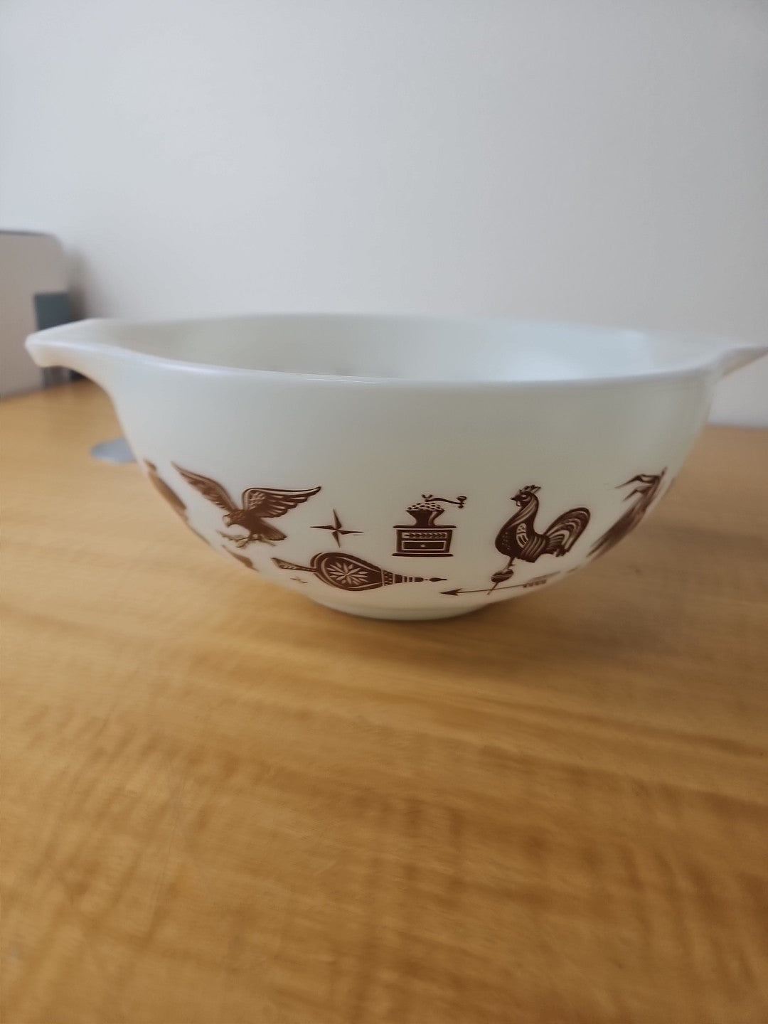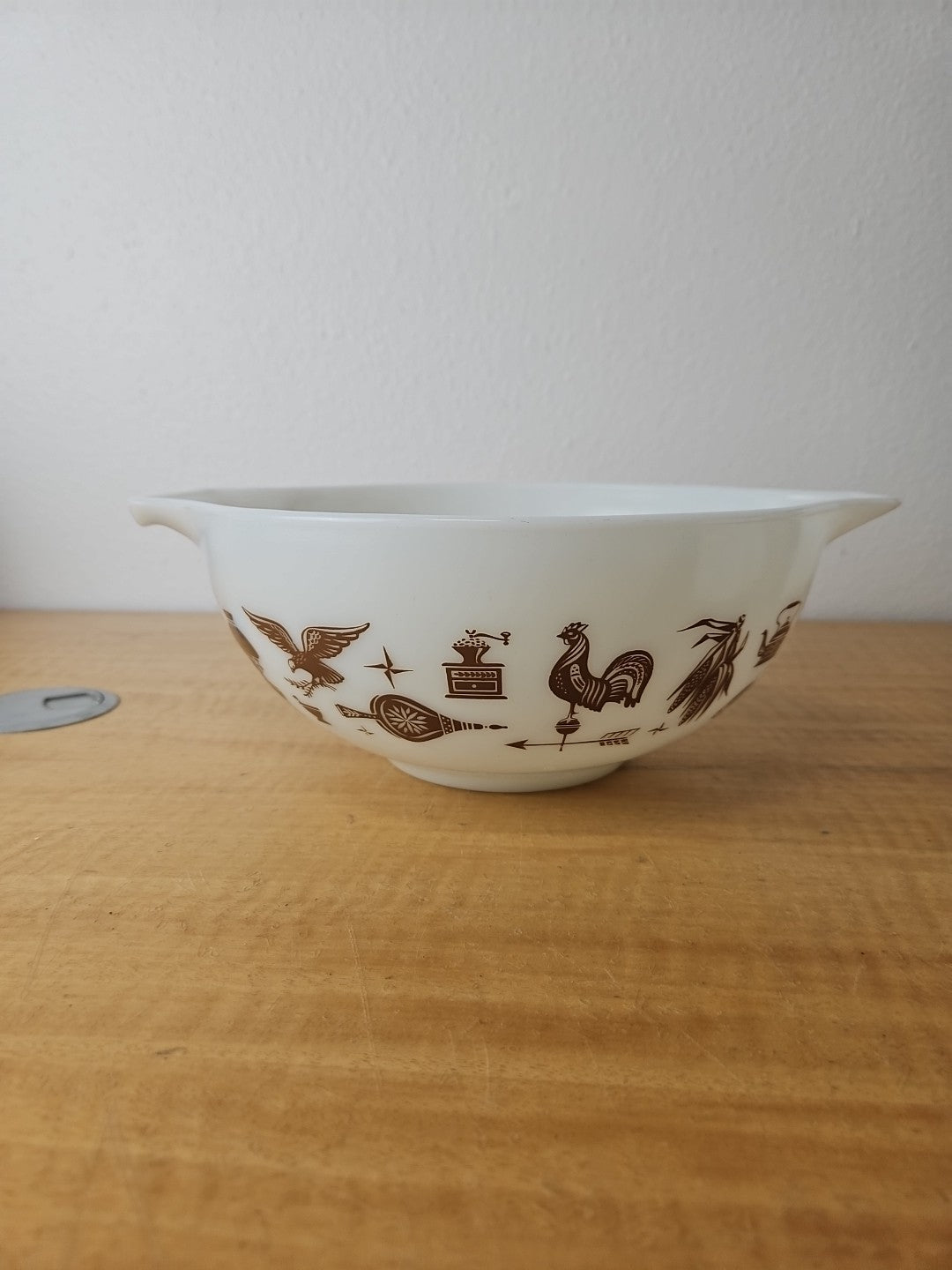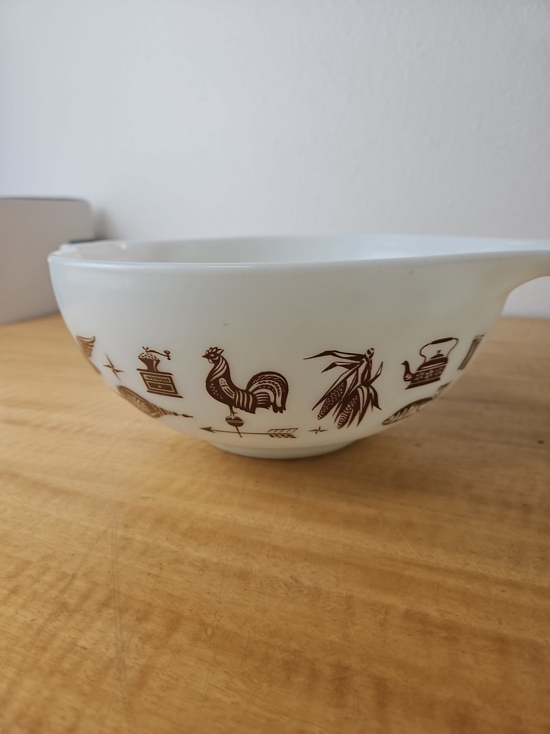 Vintage PYREX "Early American" Cinderella mixing bowl # 443 white 2 1/2 qt