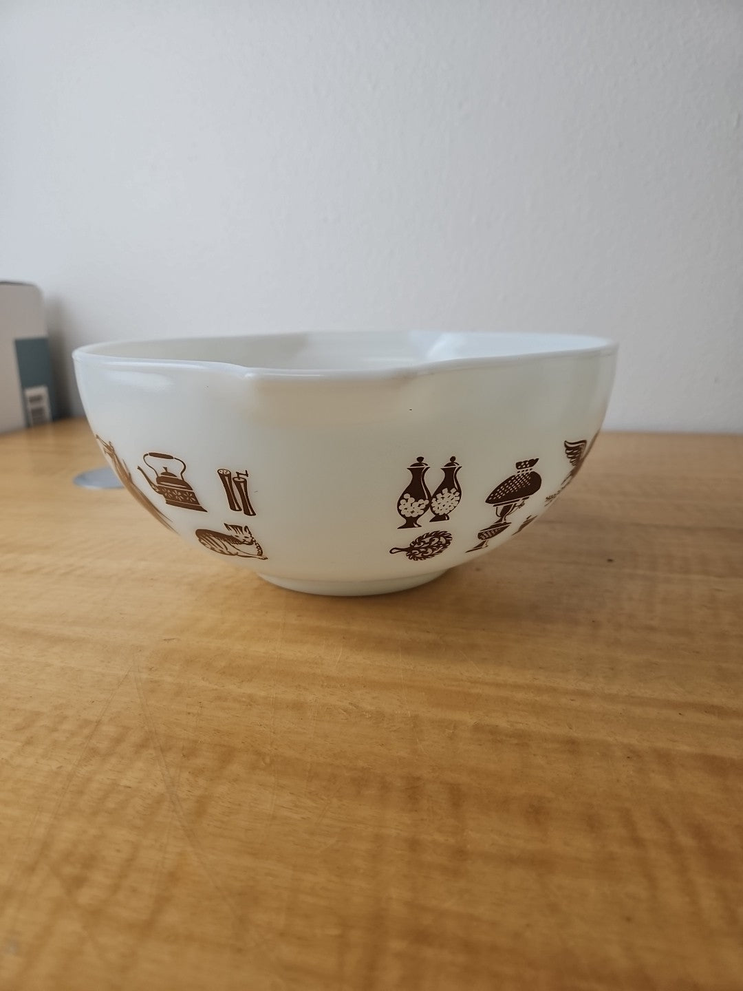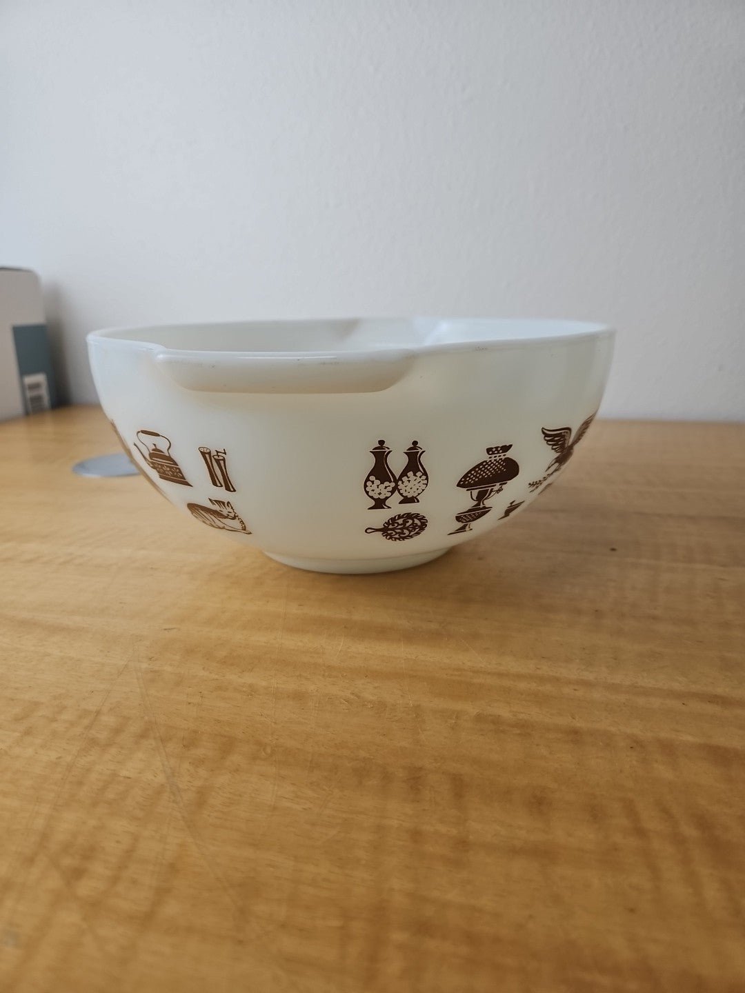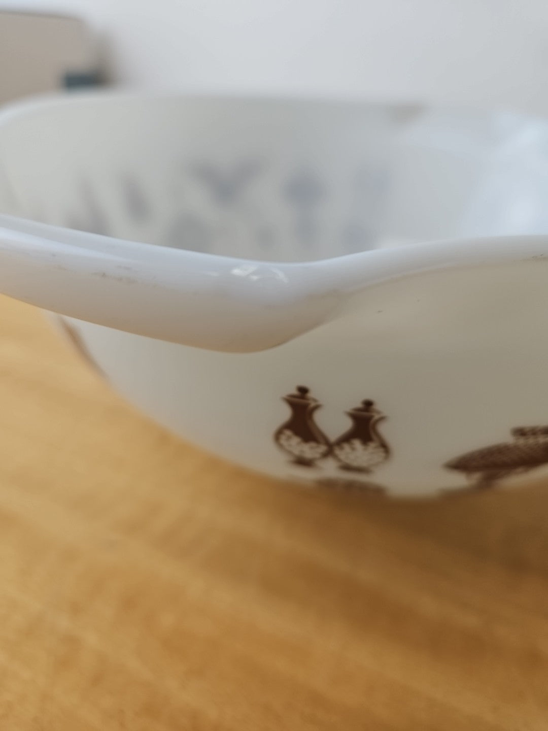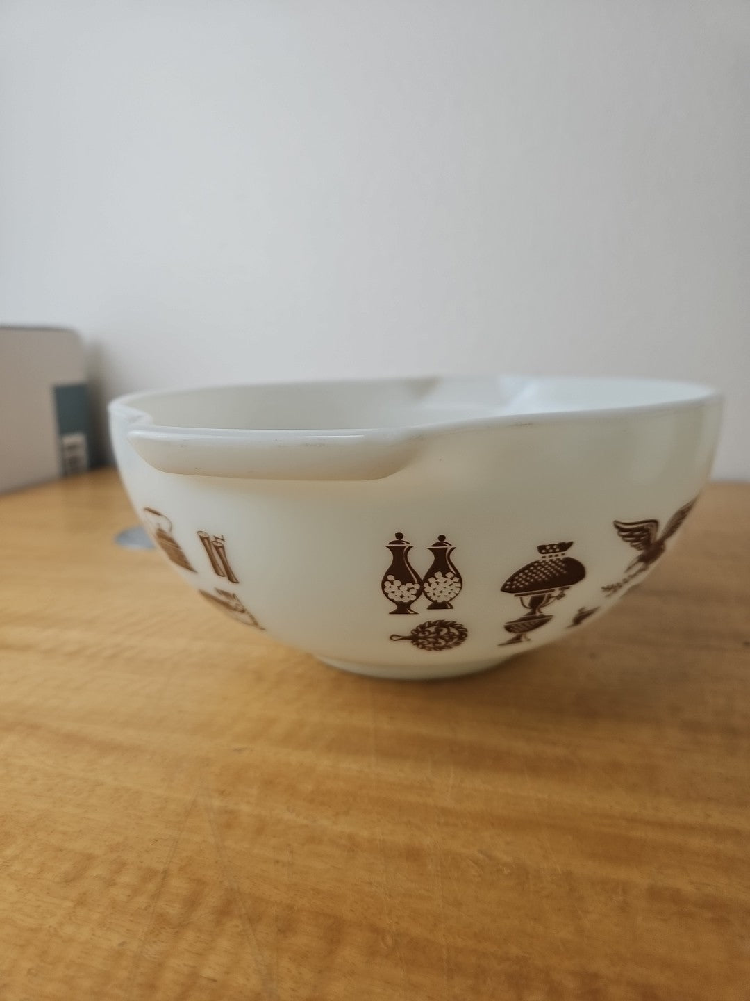 Vintage PYREX "Early American" Cinderella mixing bowl # 443 white 2 1/2 qt