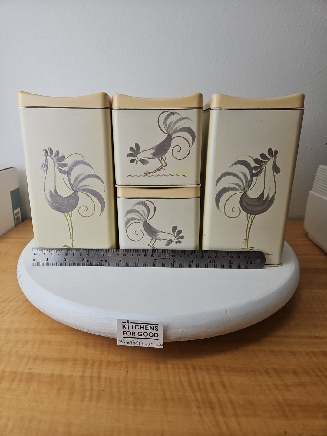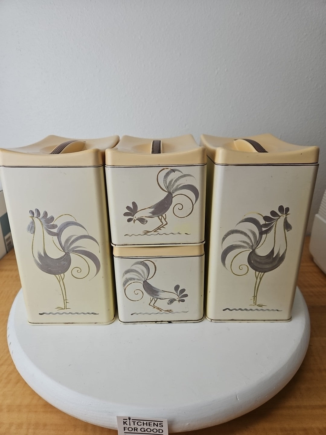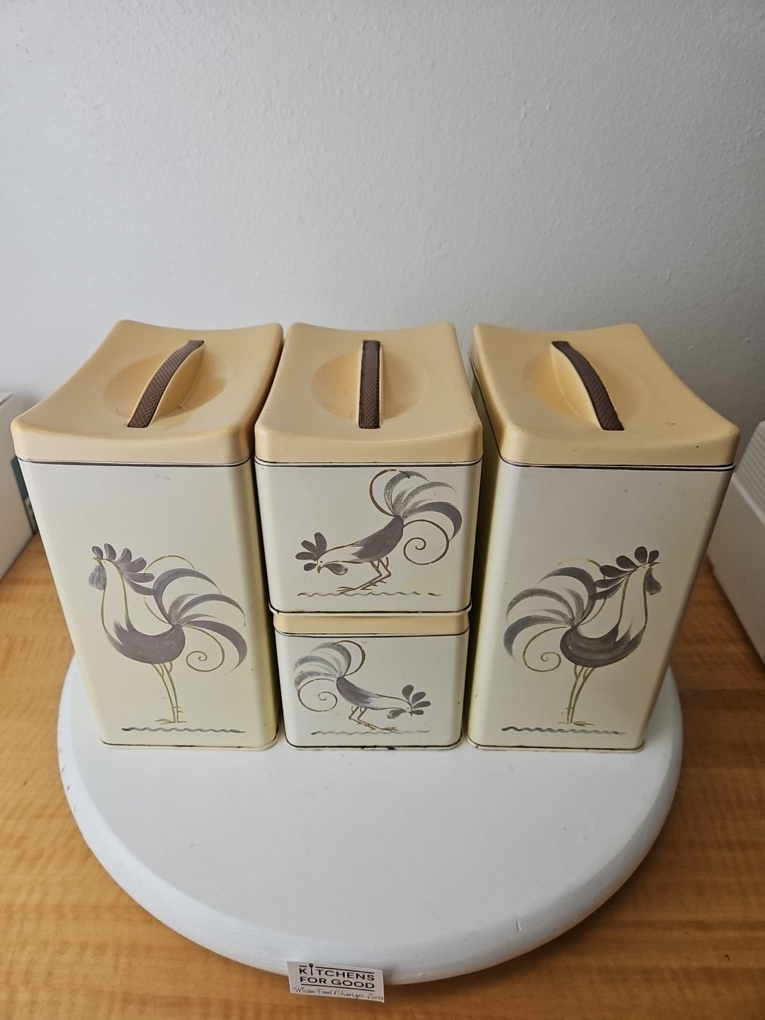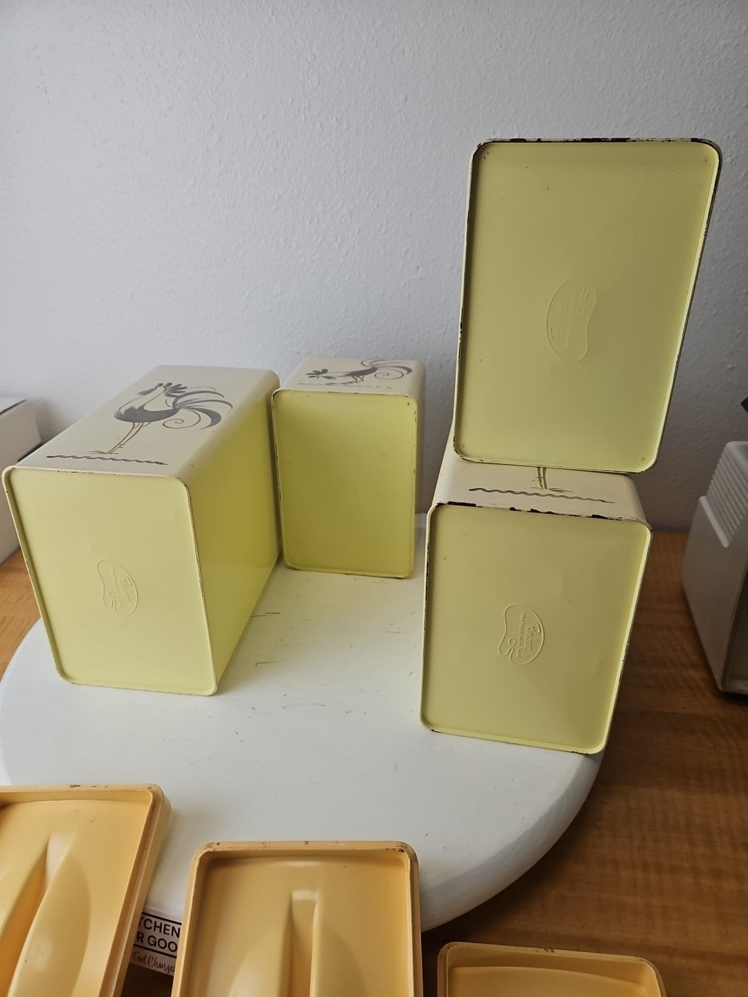 Vintage RANSBURG Rooster yellow square Canister Set, - 4 canisters with lids MCM