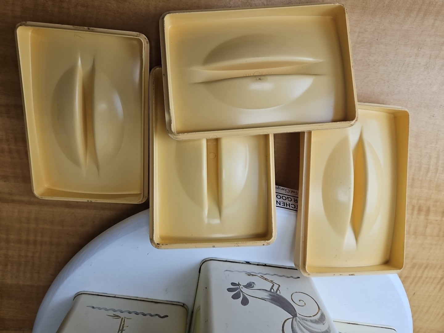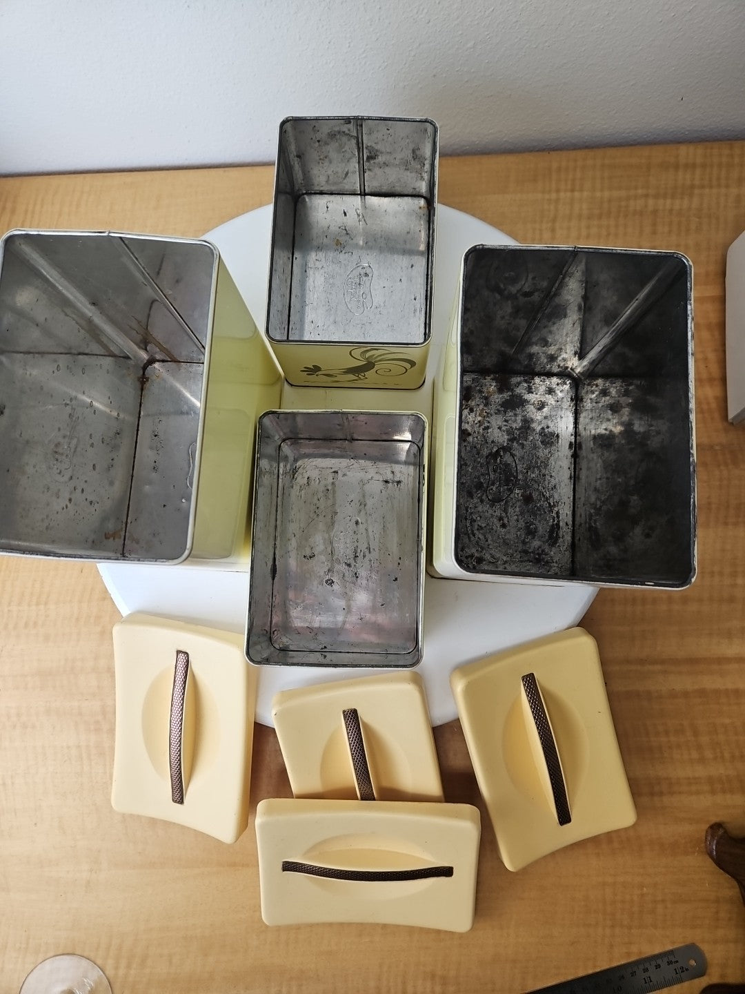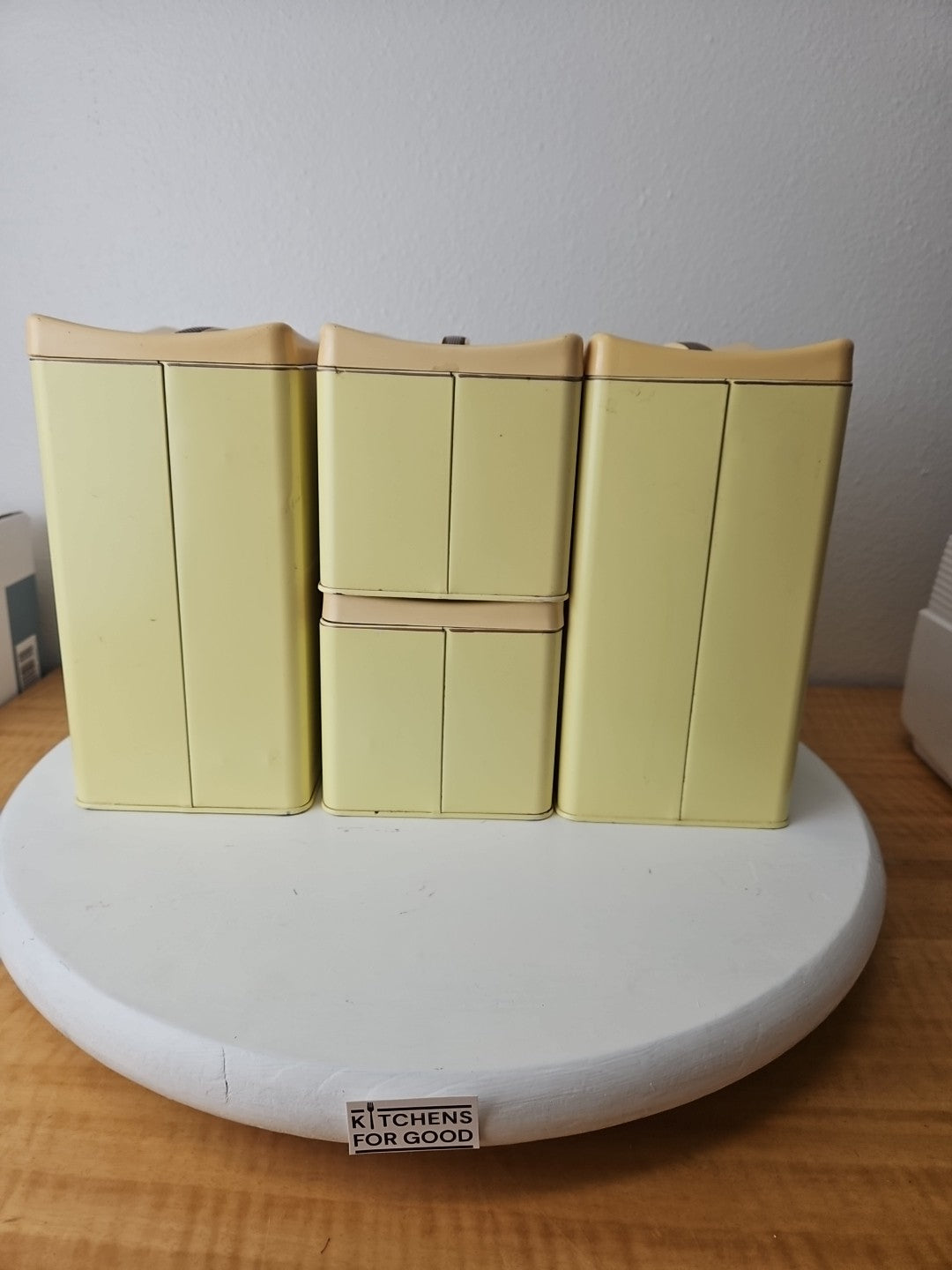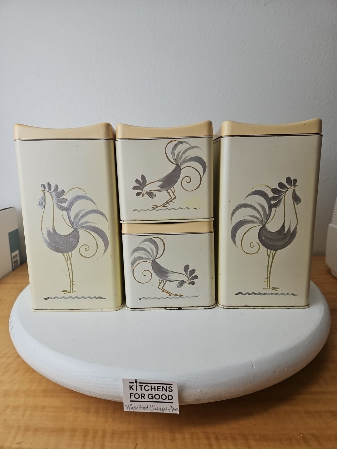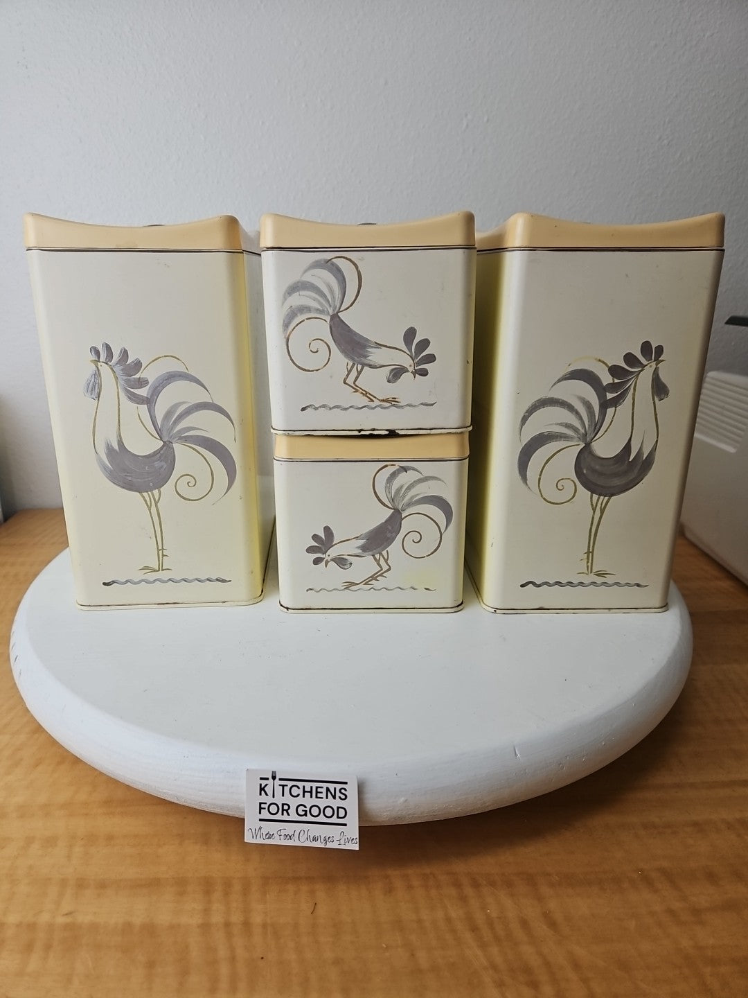 Vintage RANSBURG Rooster yellow square Canister Set, - 4 canisters with lids MCM