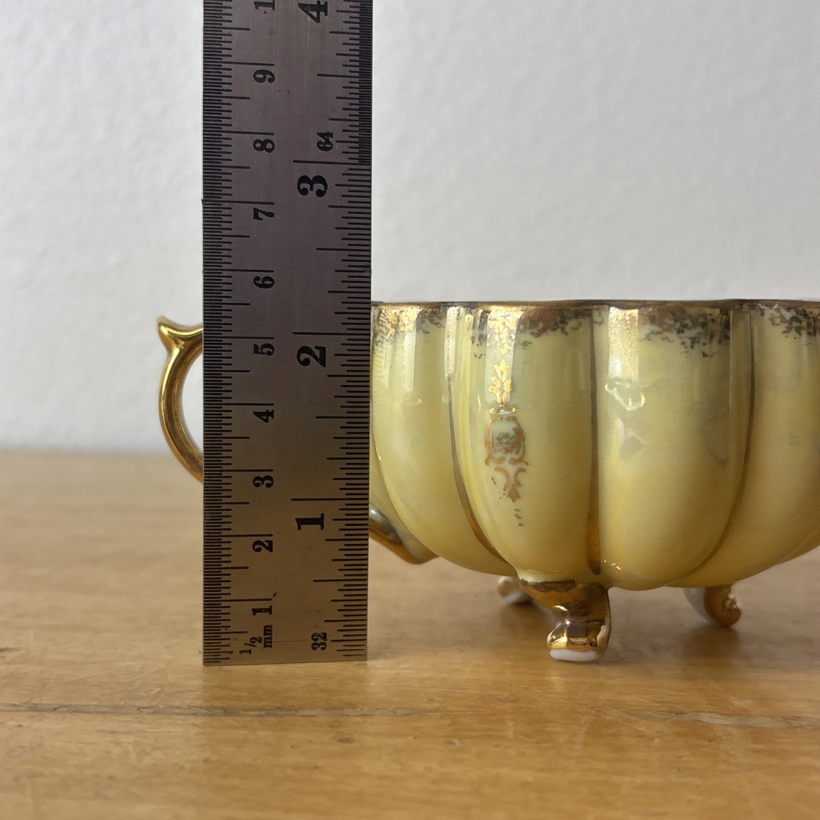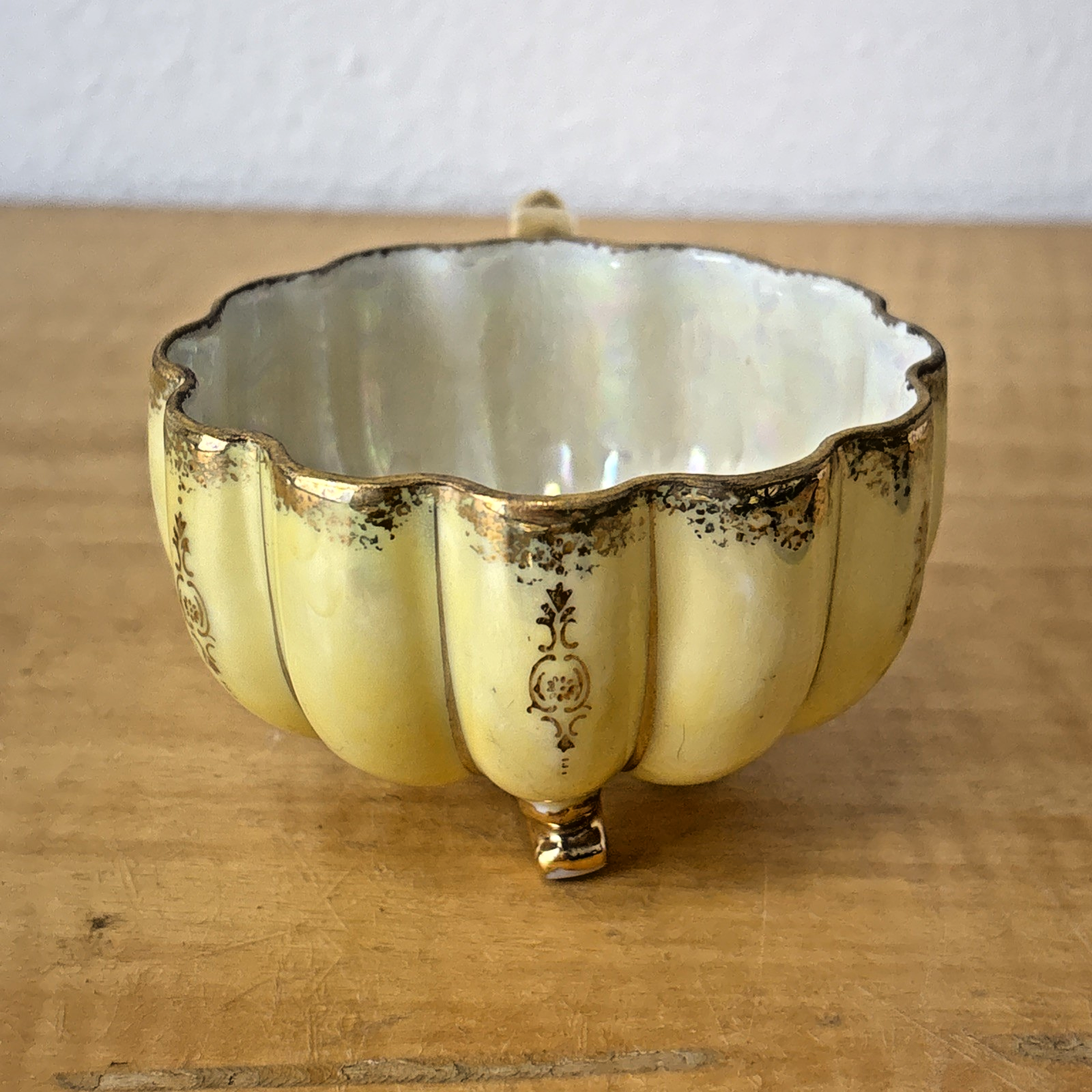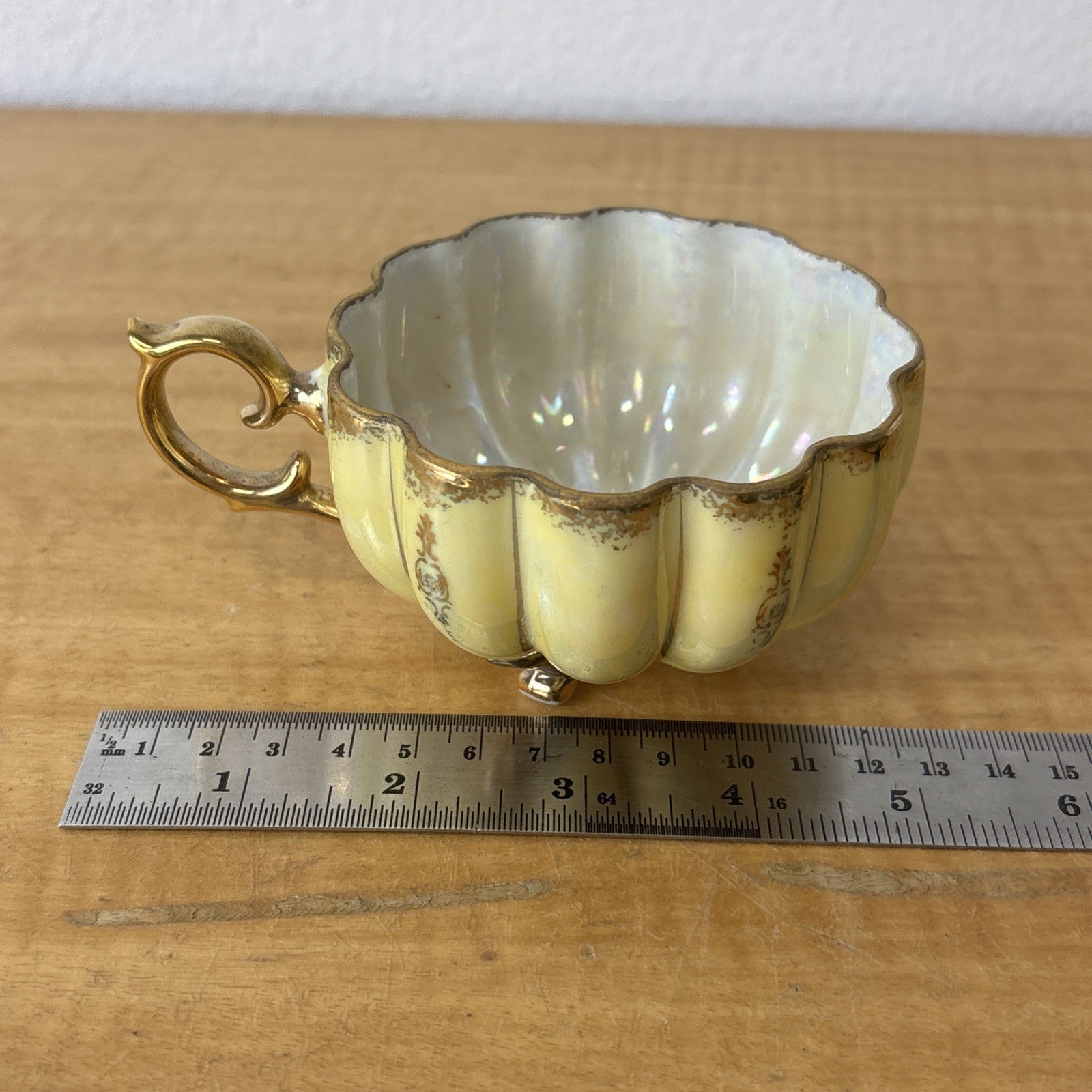 Vintage Royal Sealy China Green & Gold Footed Tea Cup & Saucer Japan Iridescent
