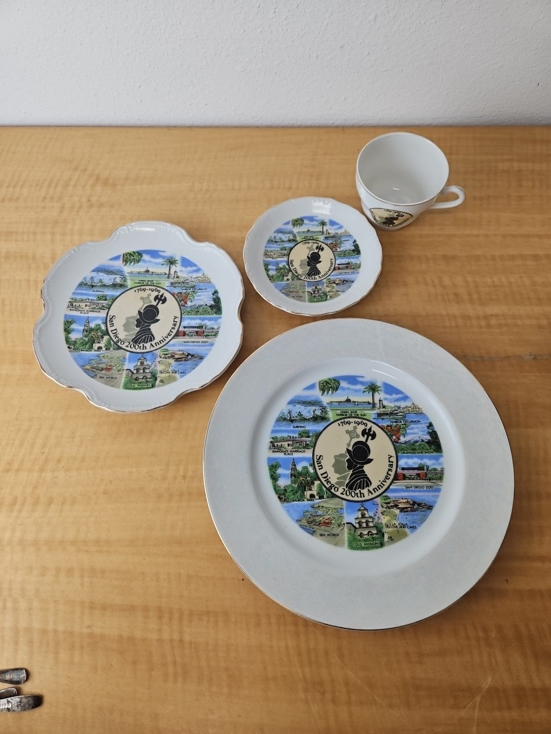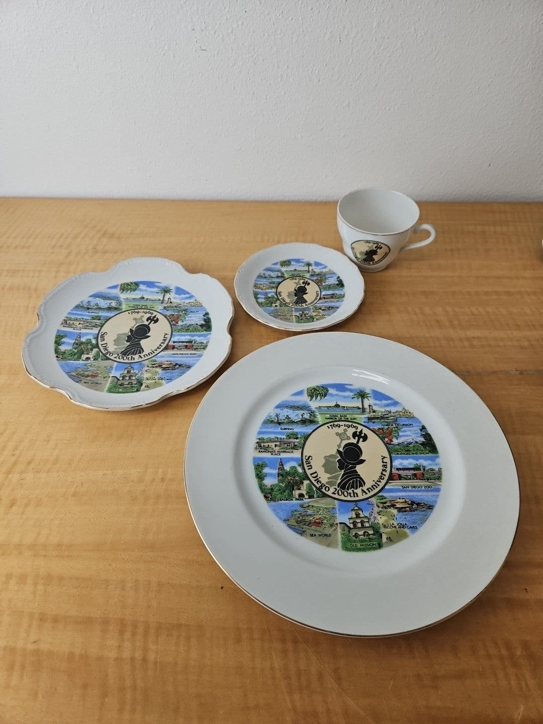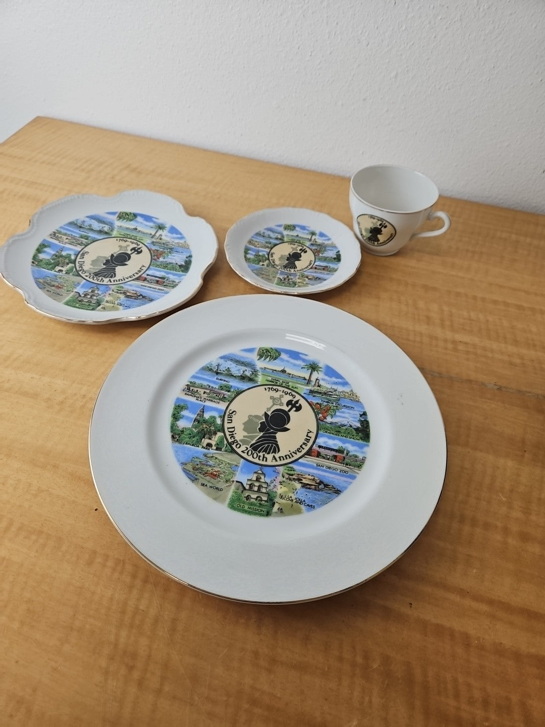 Vintage San Diego 200th anniversary plates, tea / coffee cup and saucer set