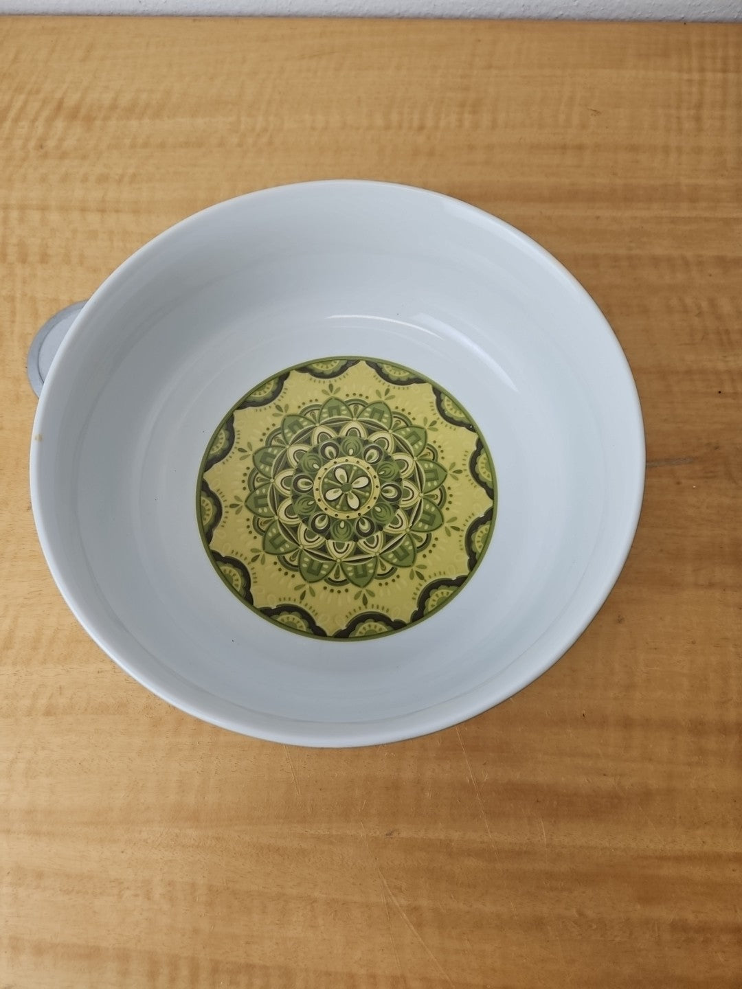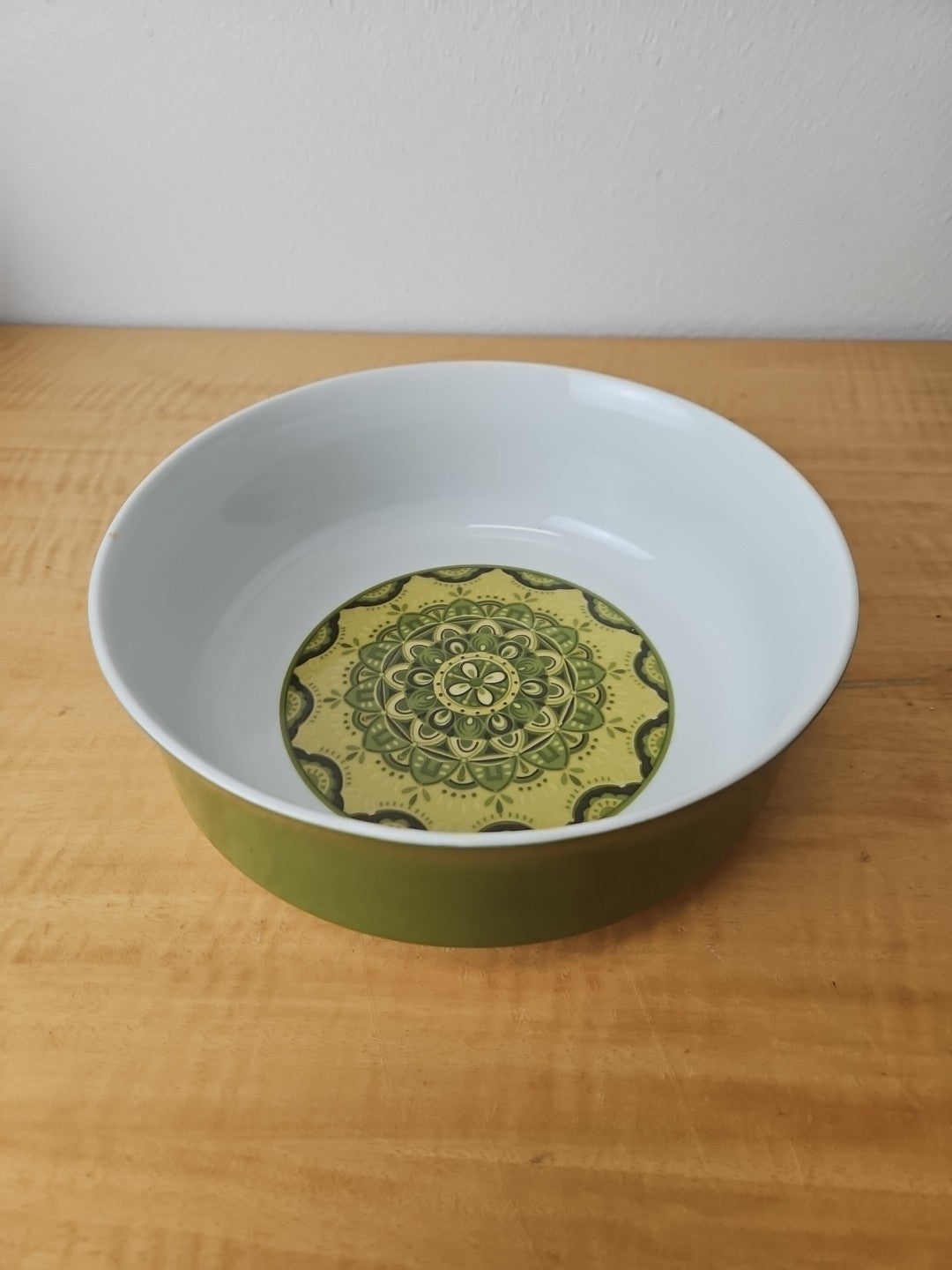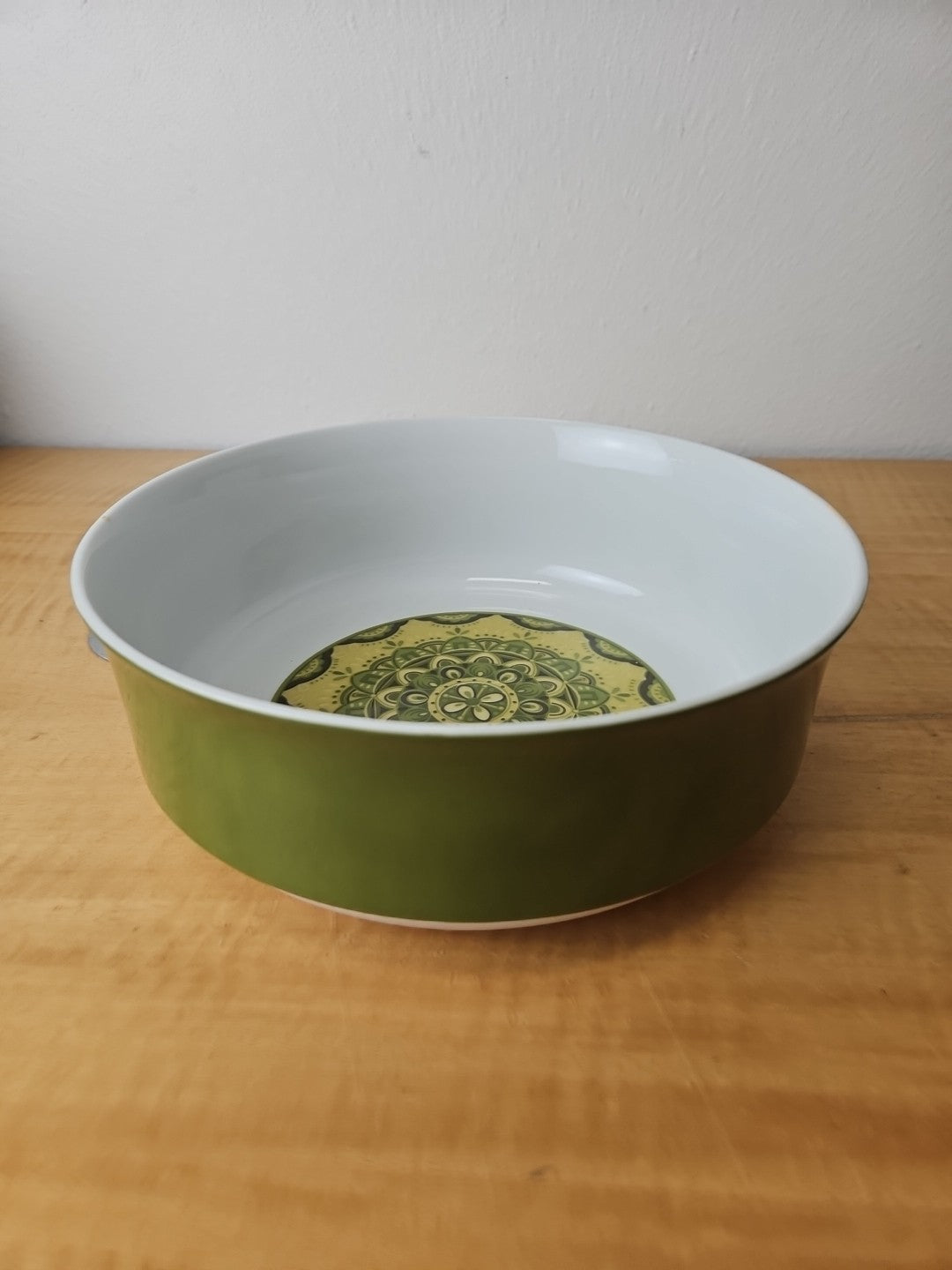 Vintage Sango Aquarius "PICA" green SERVING BOWL 9" • Japan