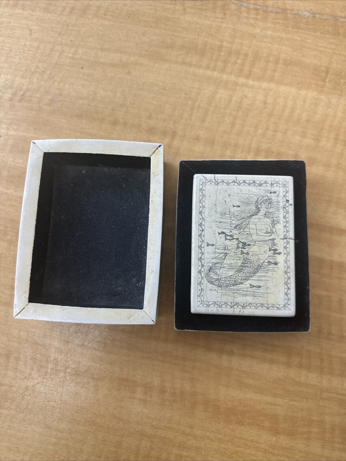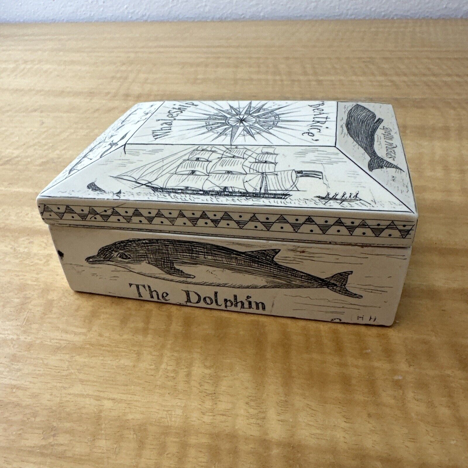Vintage Scrimshaw Beatrice Whaleship Trinket Jewelry Box Made In England
