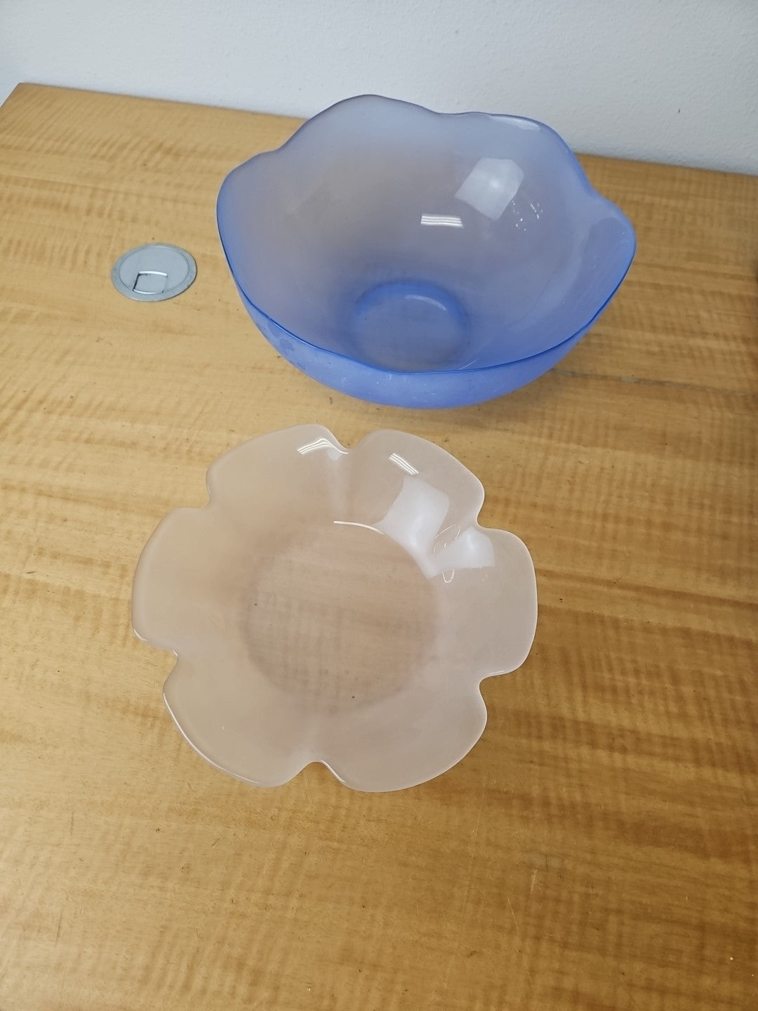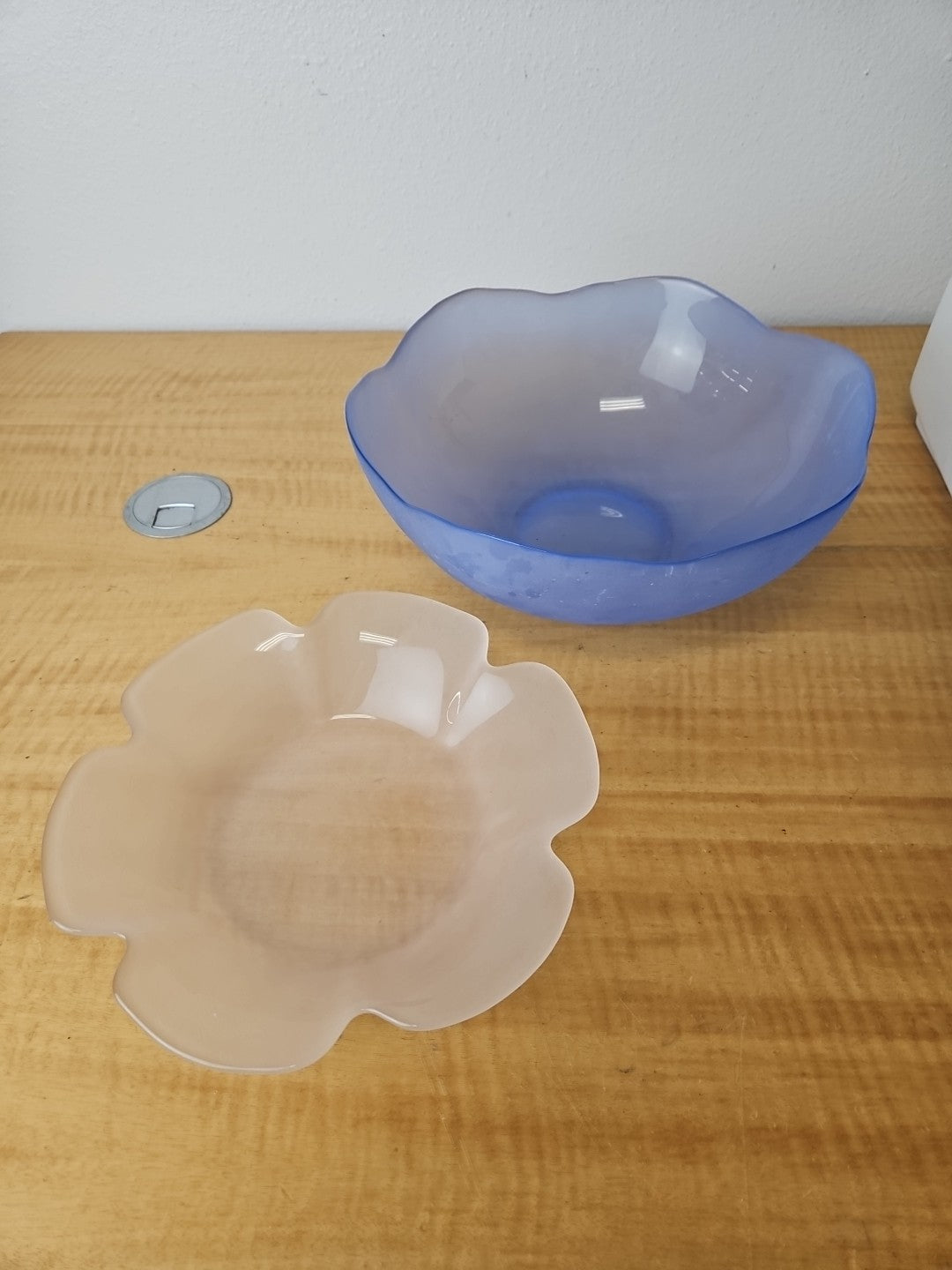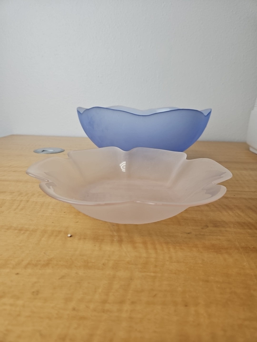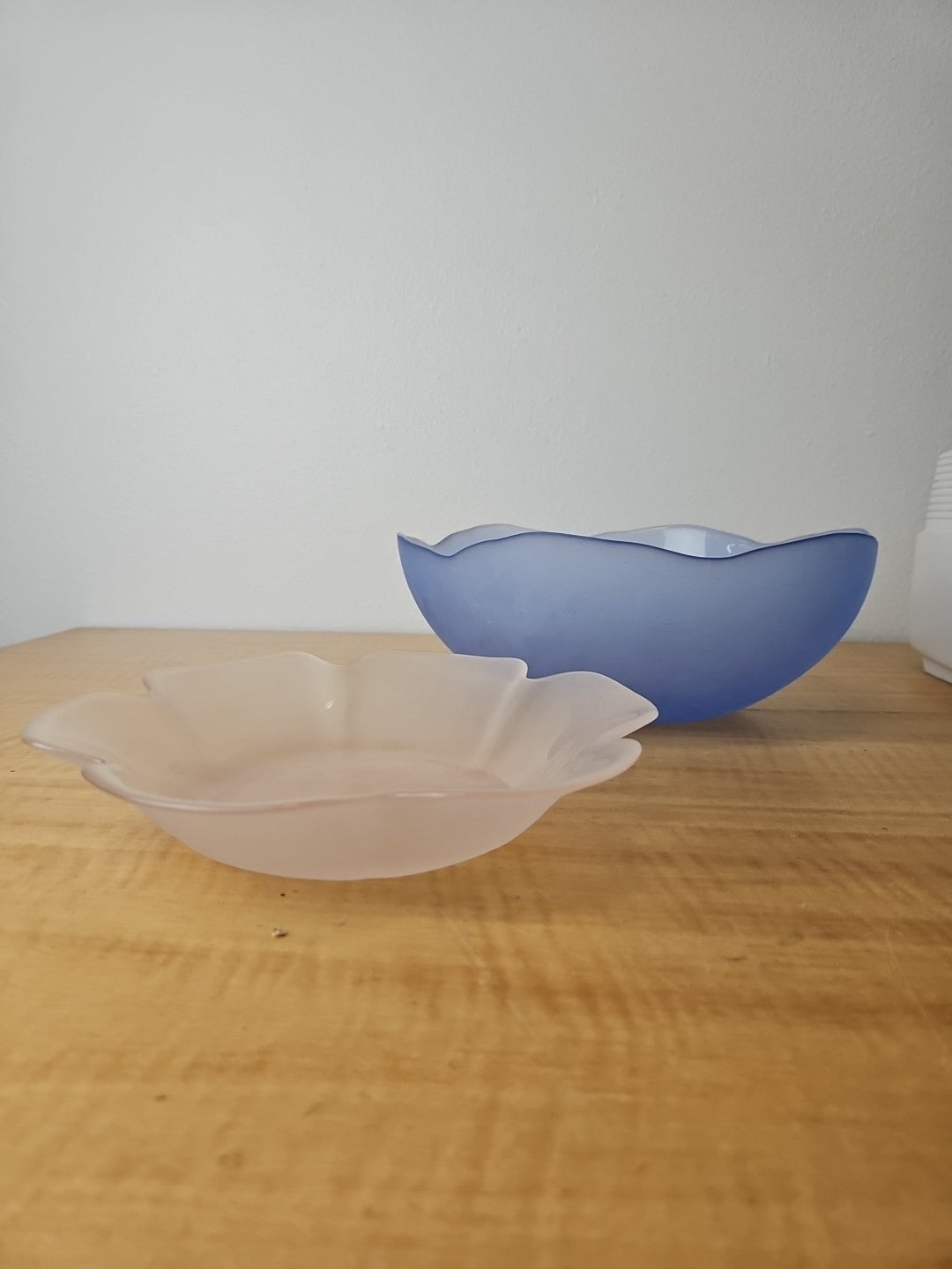 Vintage *Set of 2* Pastel Frosted Glass PINK DISH and PURPLE BOWL