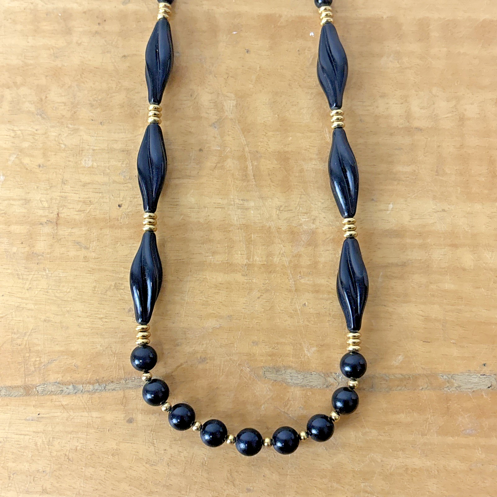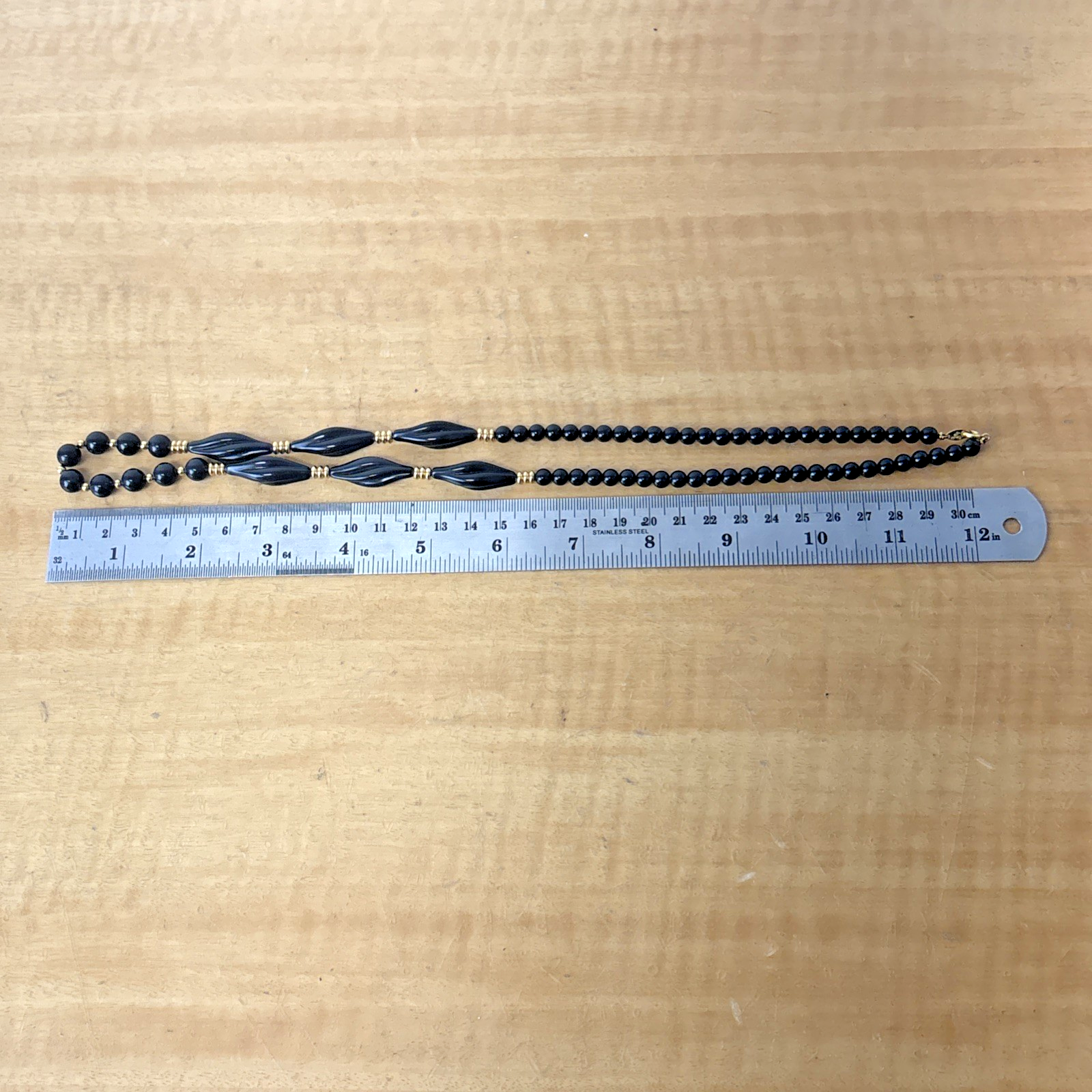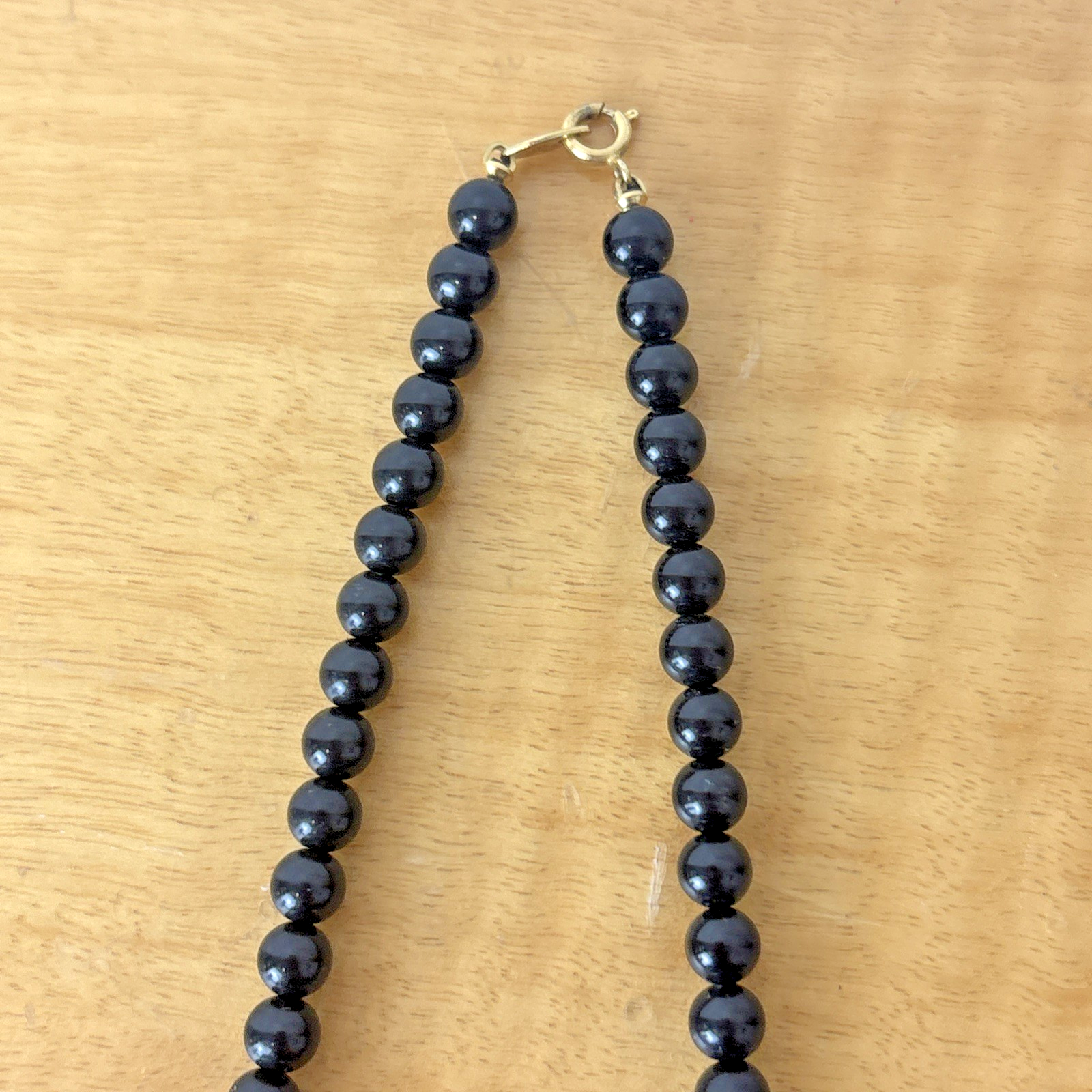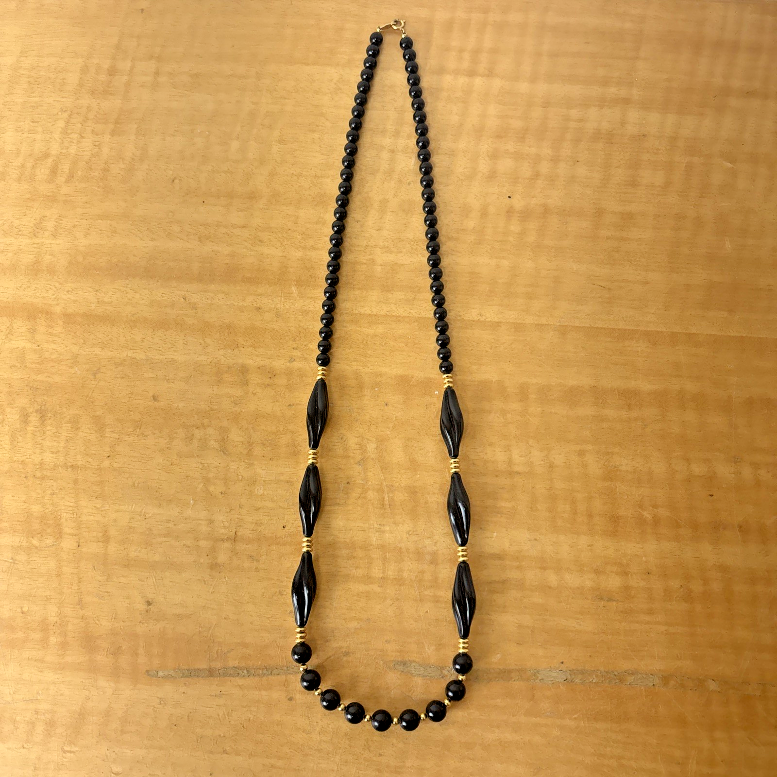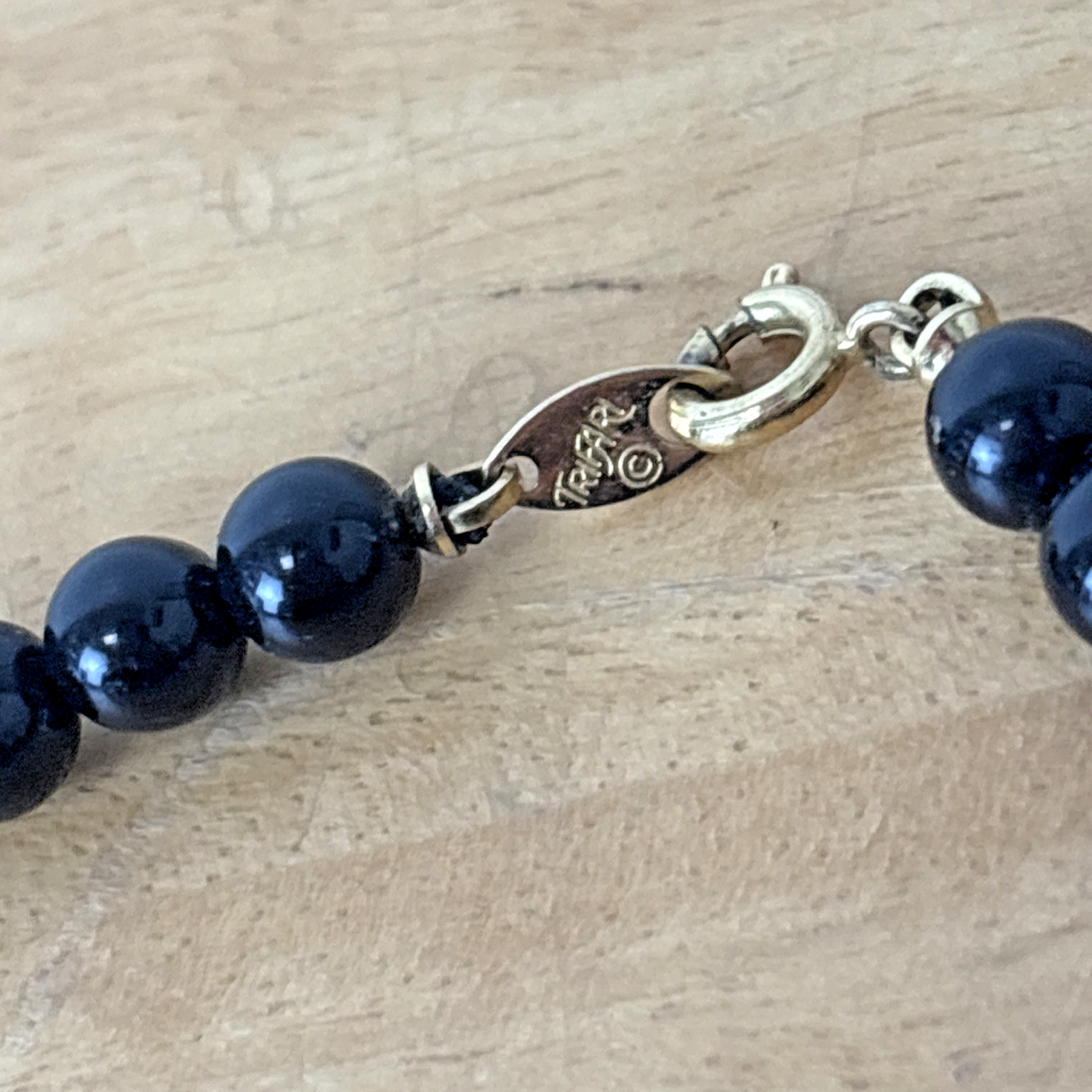 Vintage Signed Trifari Costume Necklace - Black Beaded 25 Inch