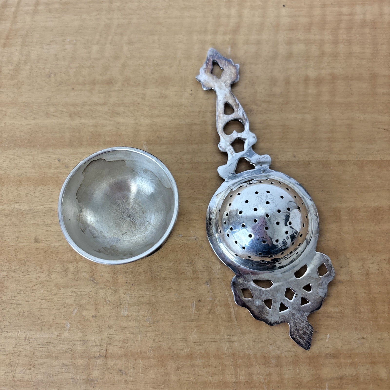 Vintage ! Silverplate Tea Bag Strainer Drip Dish 2-Pc Set