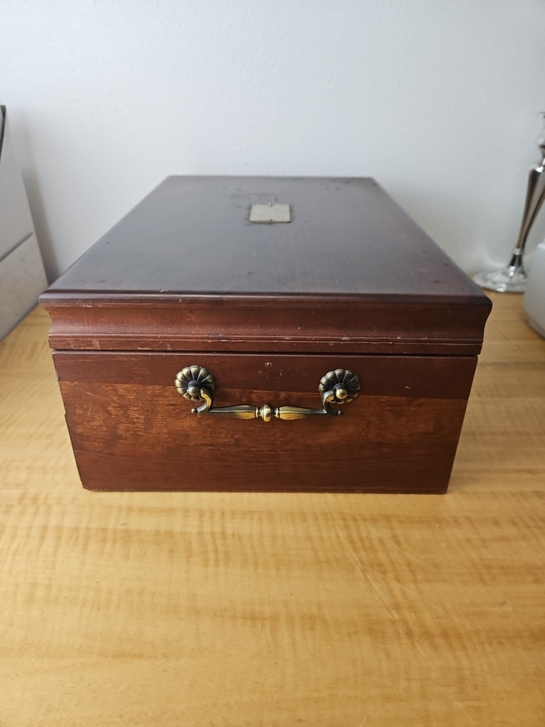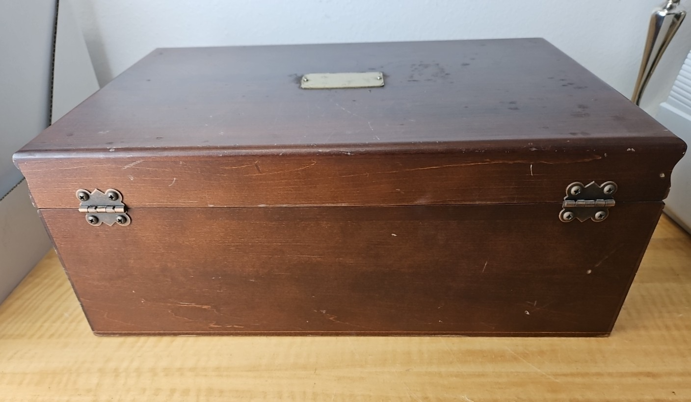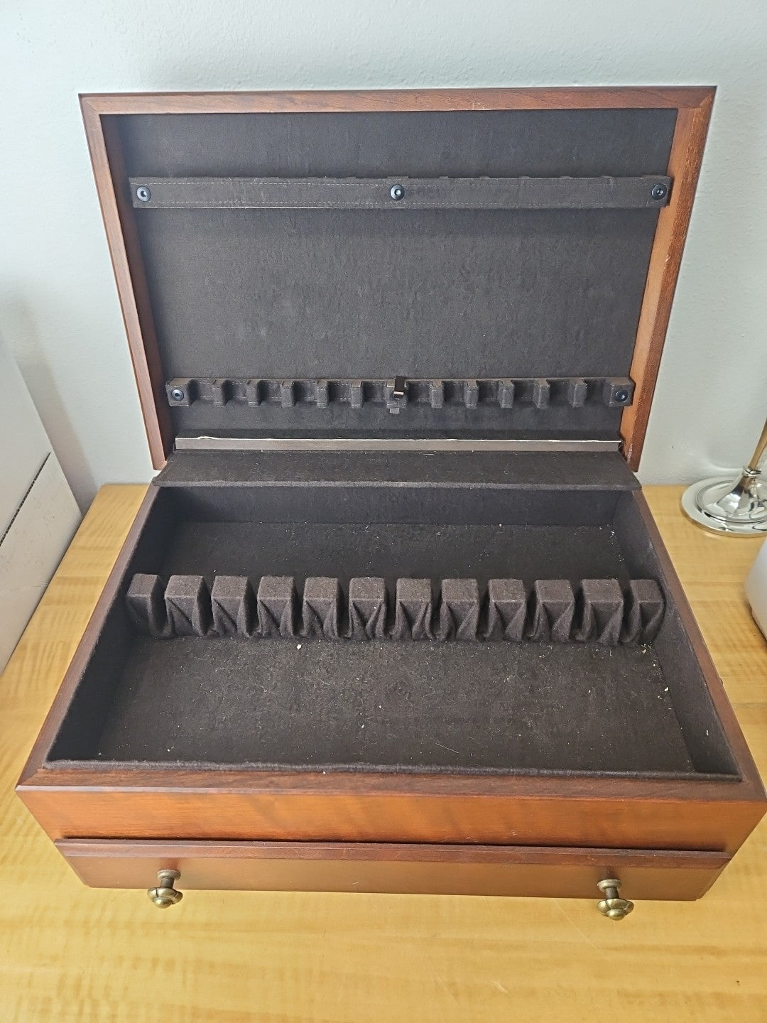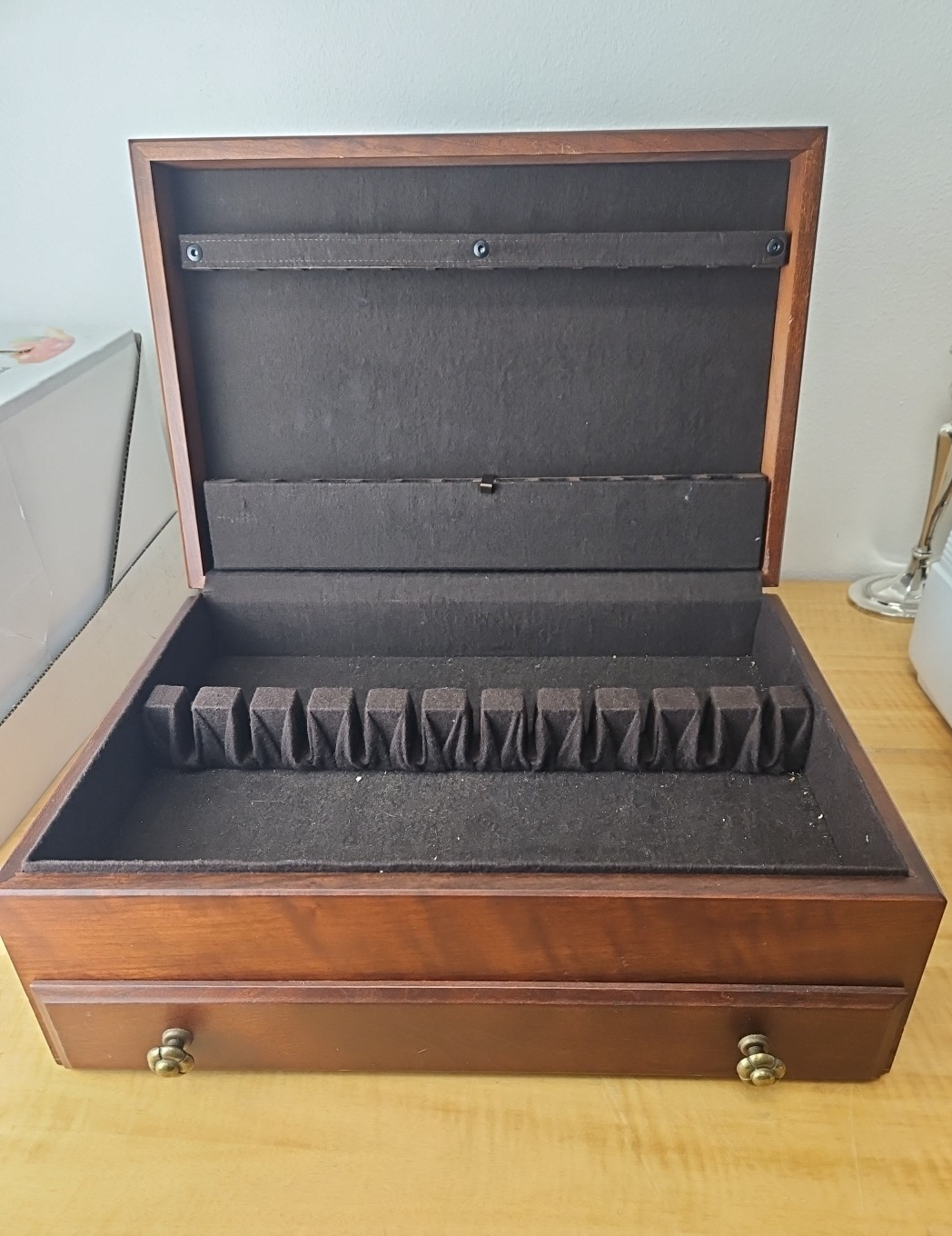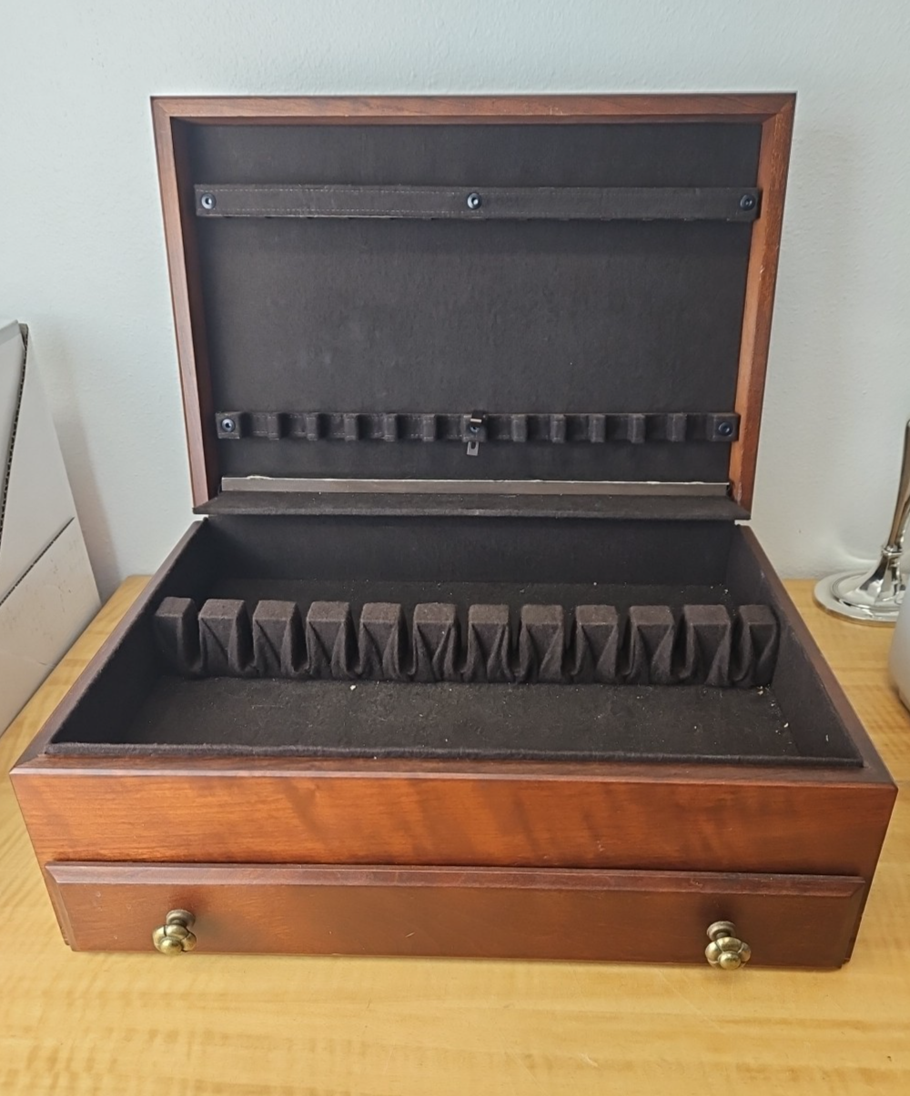 Vintage Solid Wood Flatware Chest with Drawer and side handles