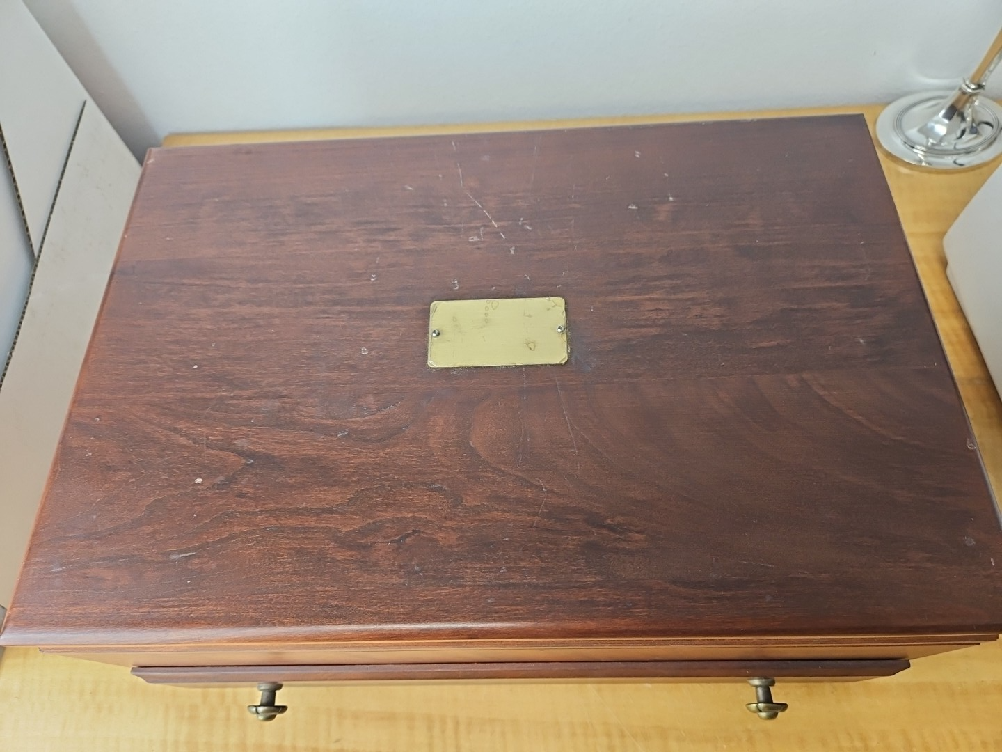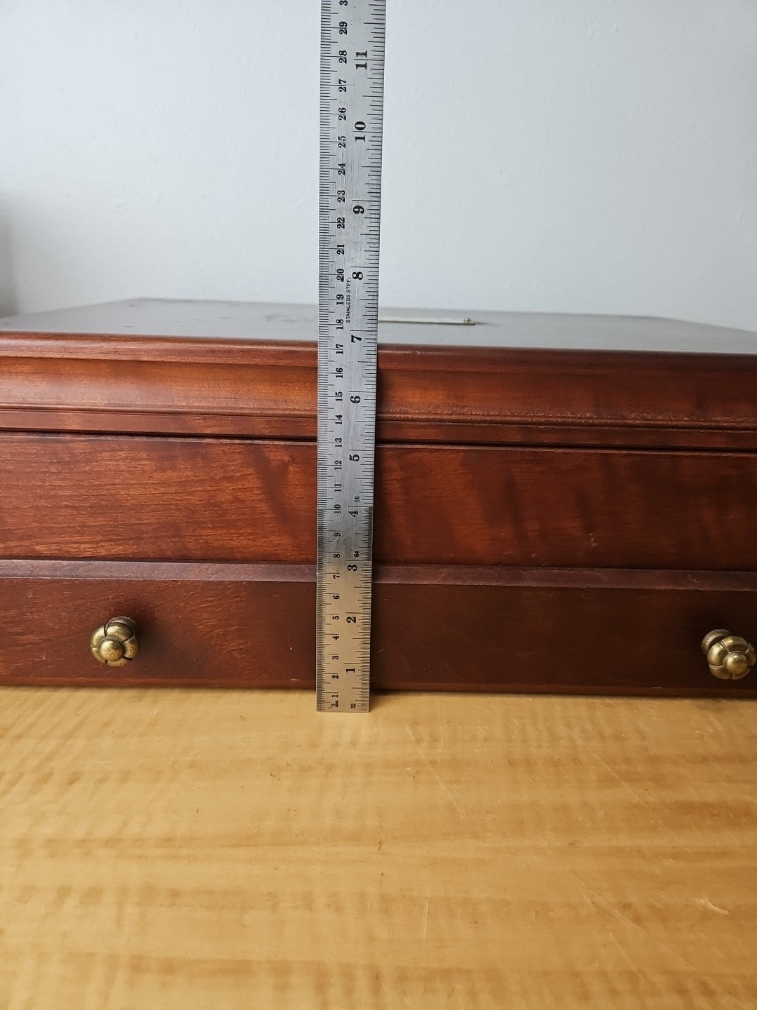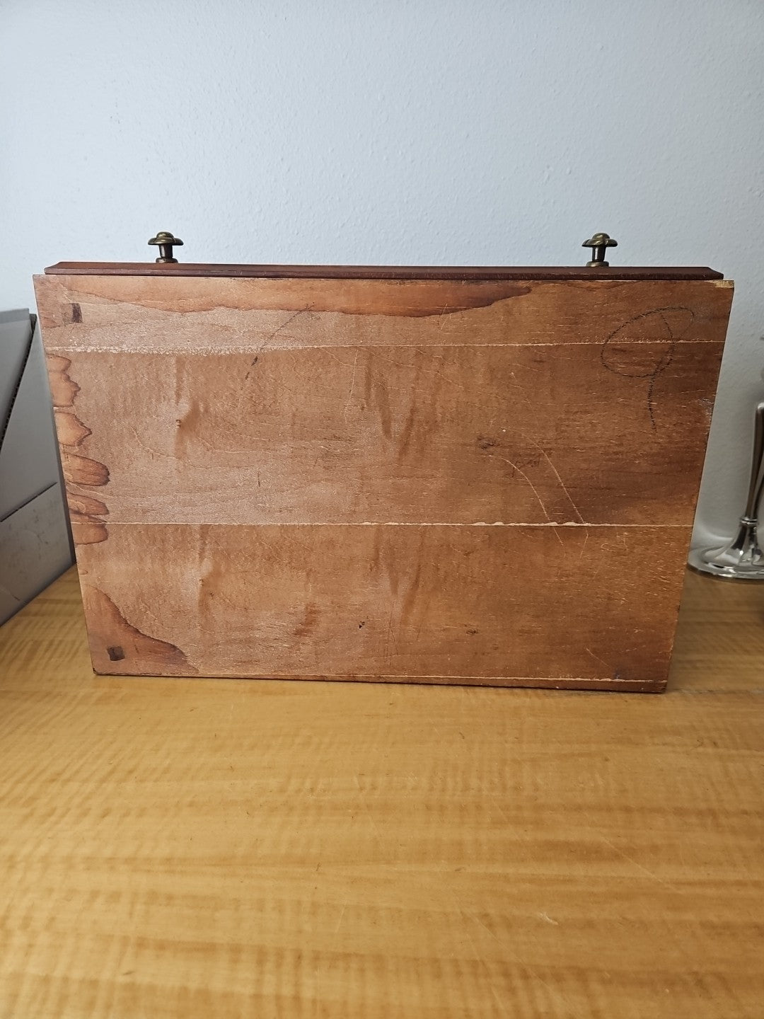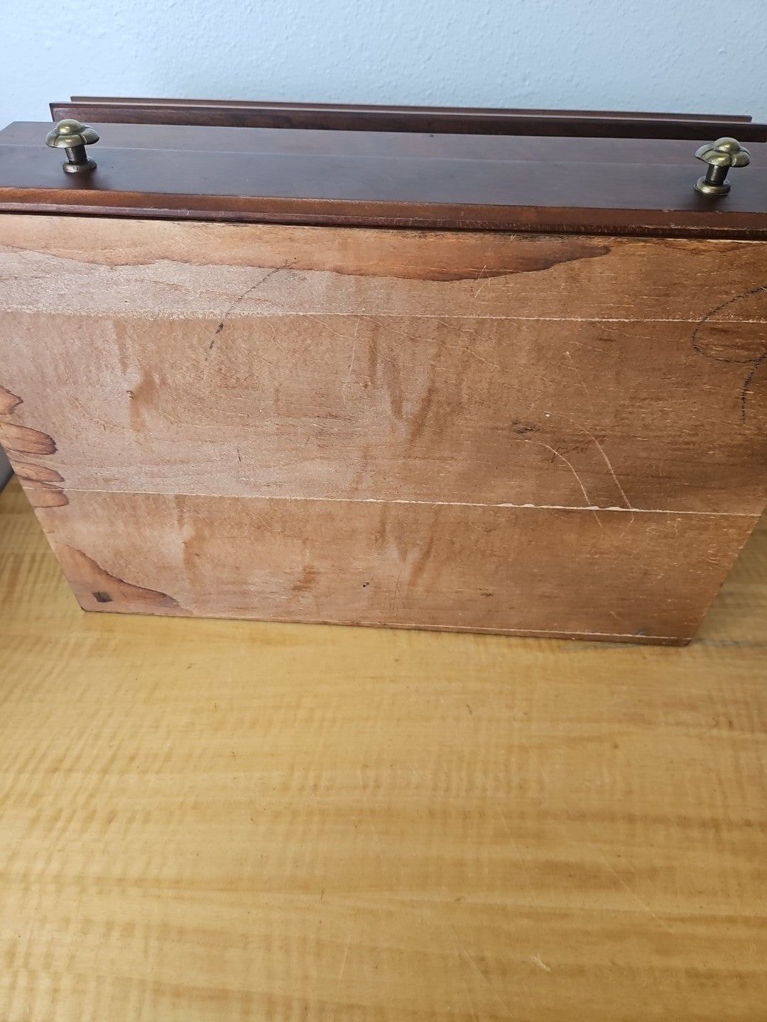 Vintage Solid Wood Flatware Chest with Drawer and side handles
