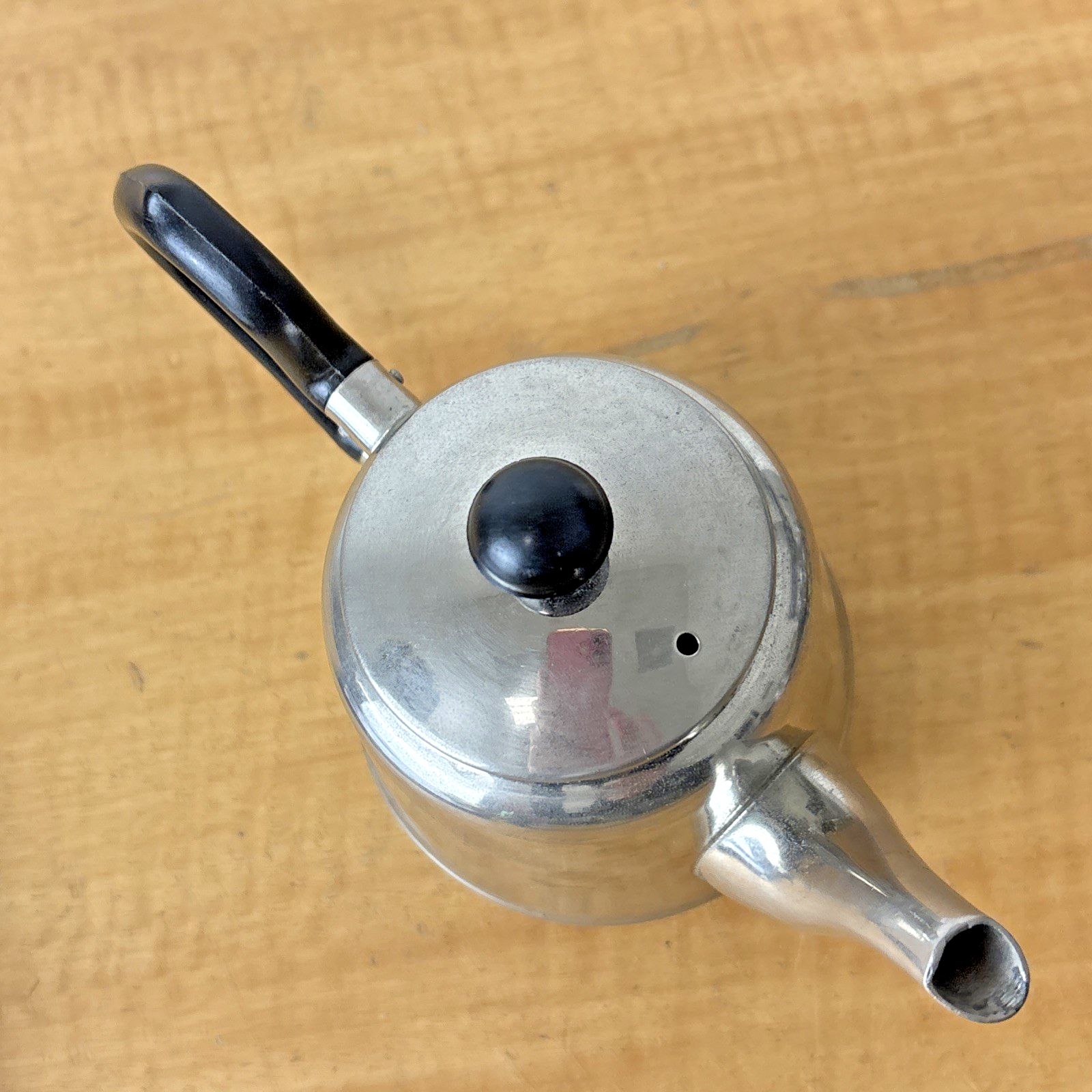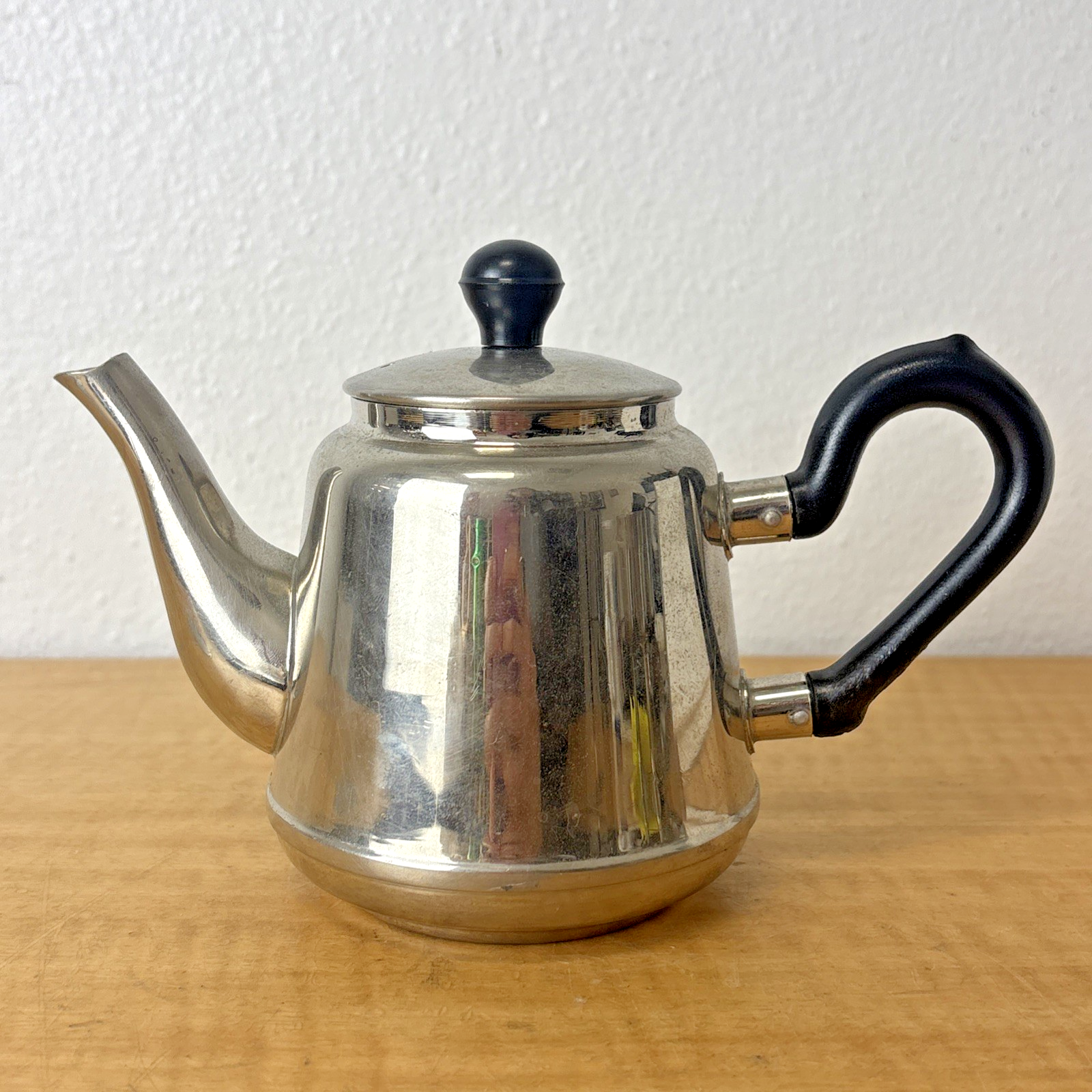 Vintage Soviet Era Metal Lidded Teapot w/ Black Handle Russion USSR
