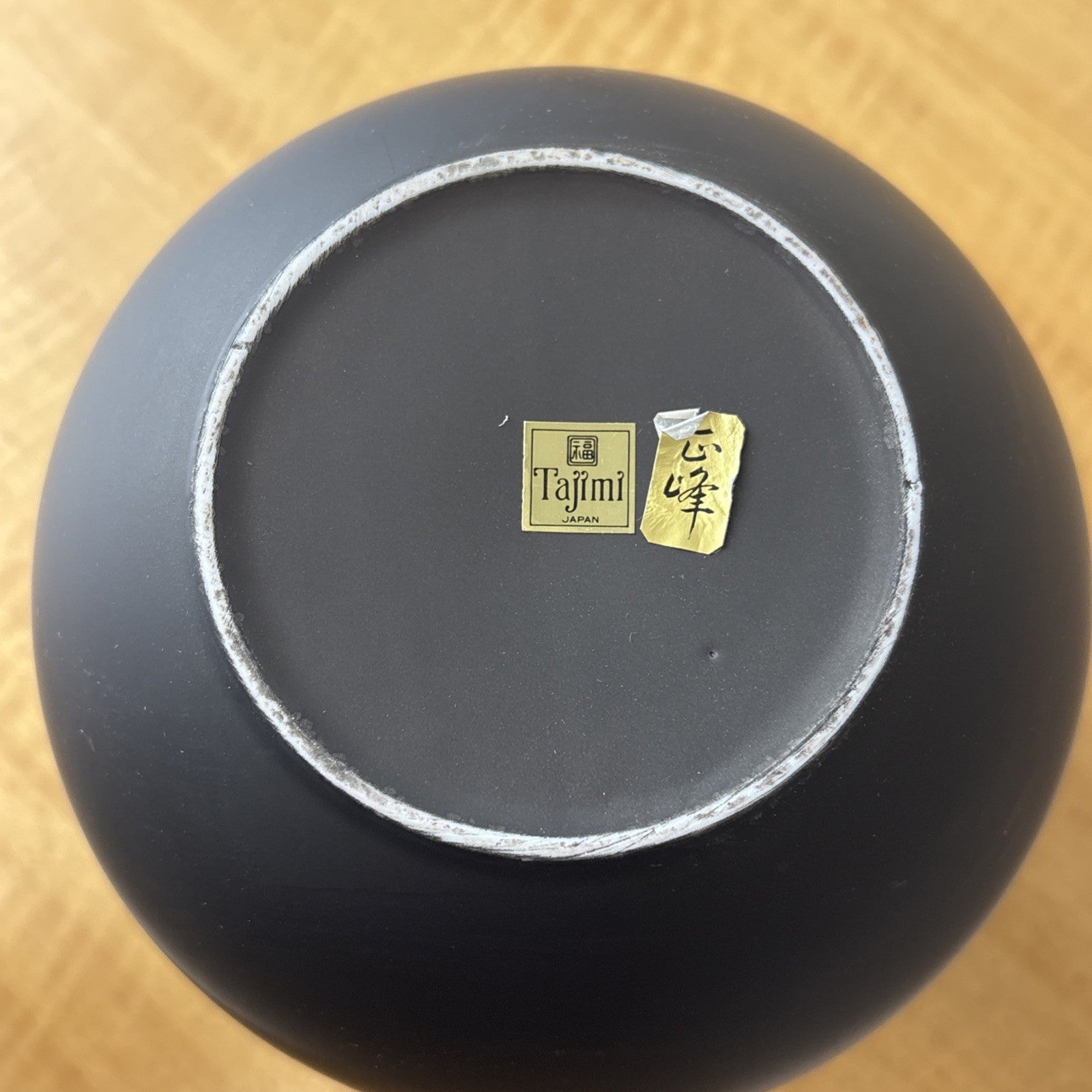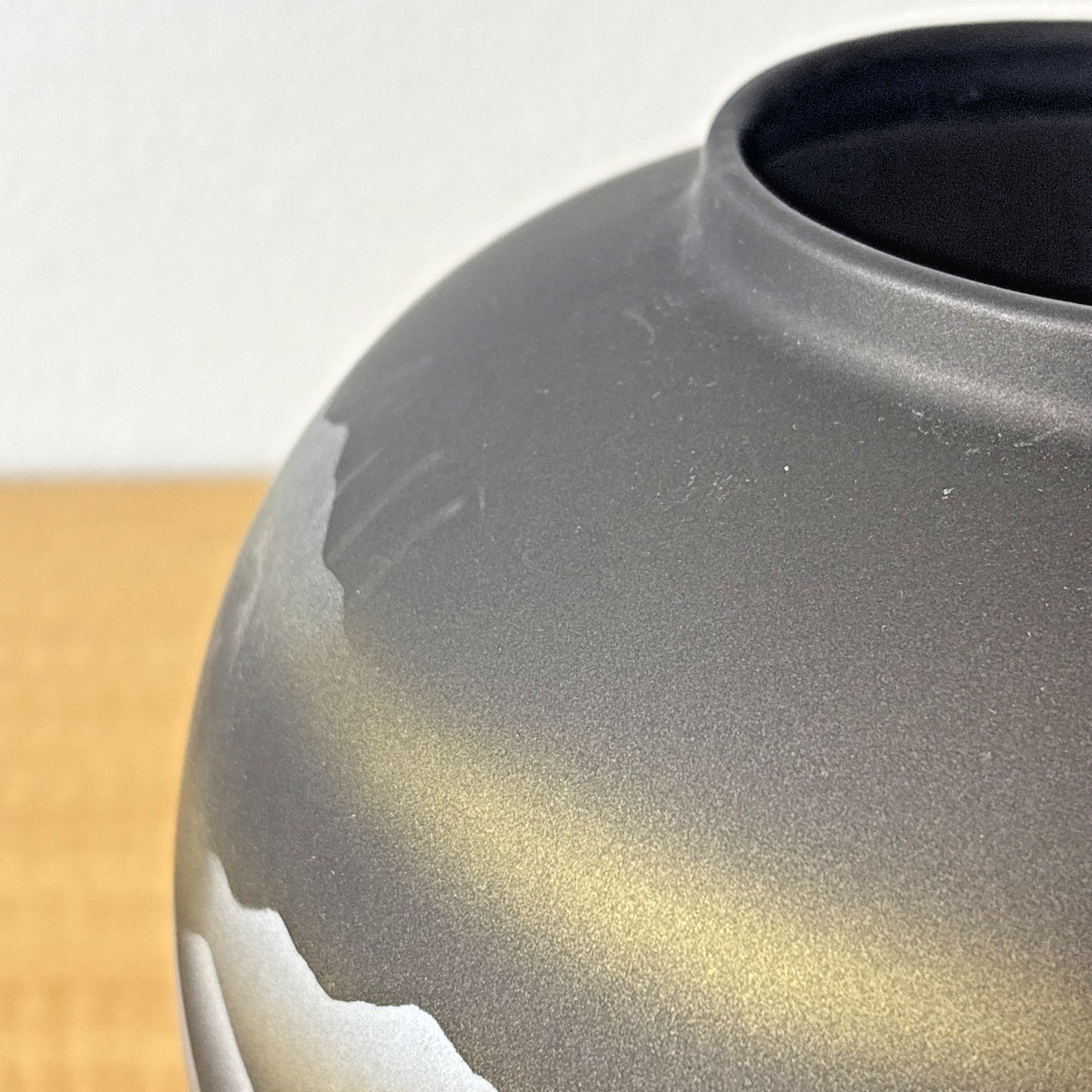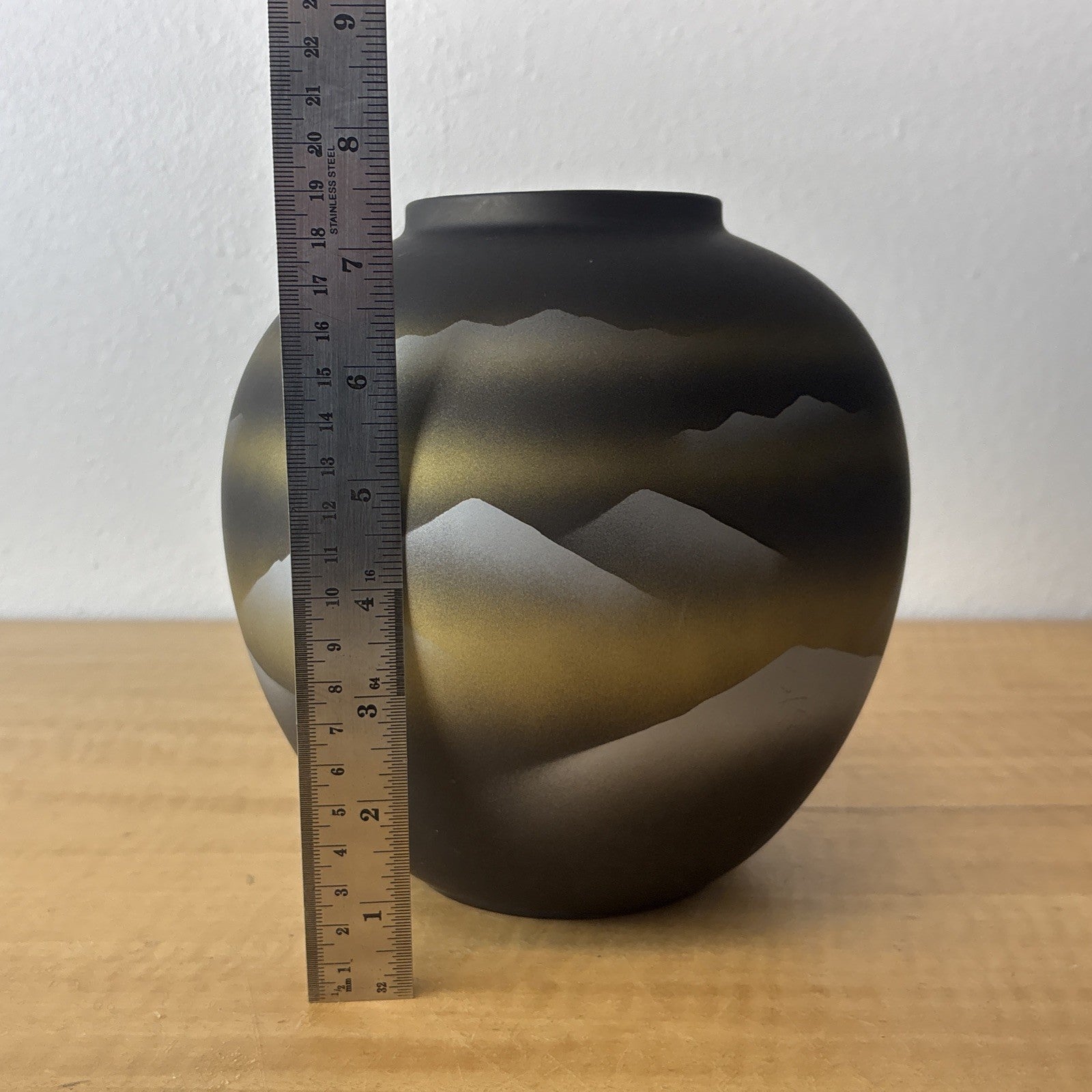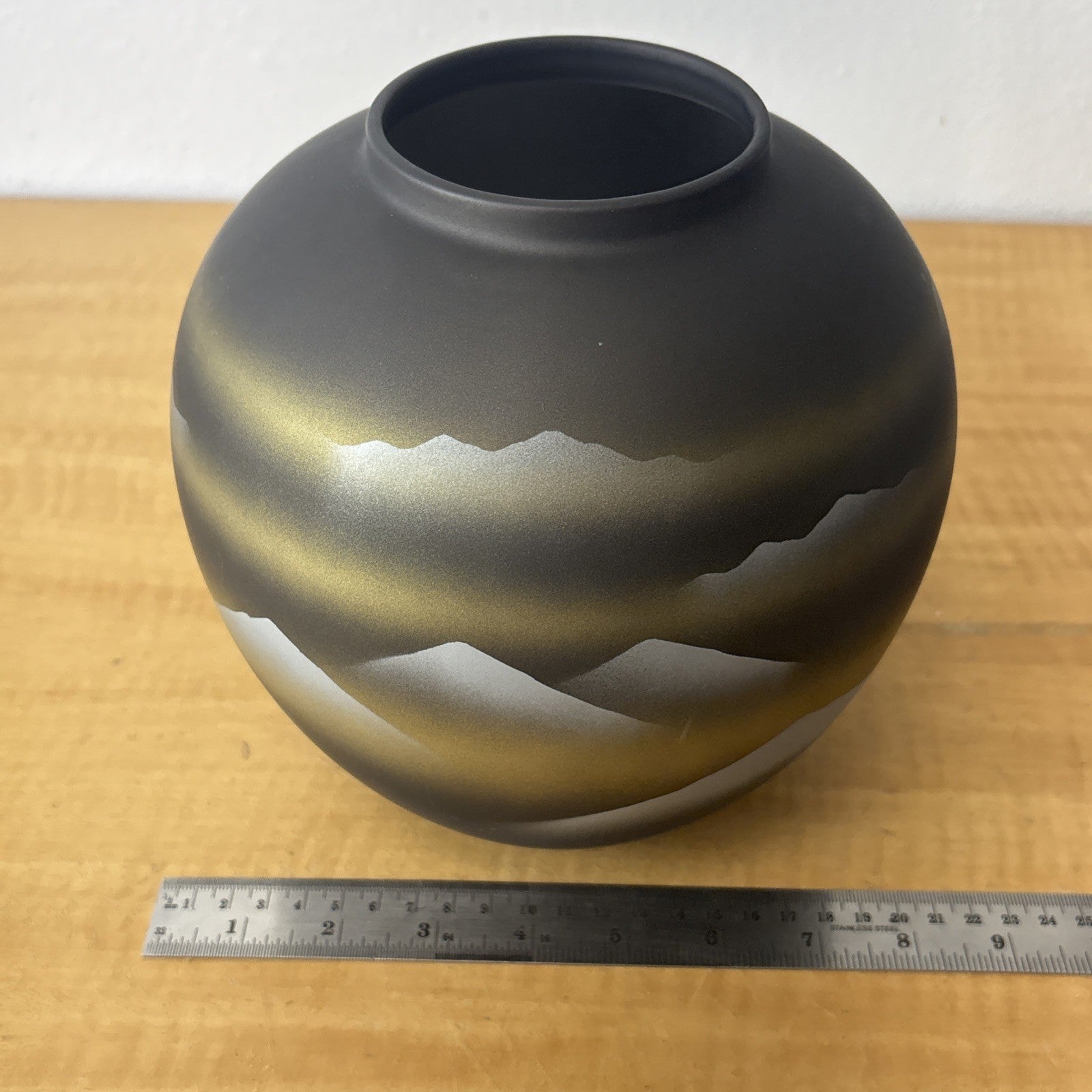 Vintage Tajimi Japanese Ceramic Vase with Stylized Mountain Scene – Gray, Gold