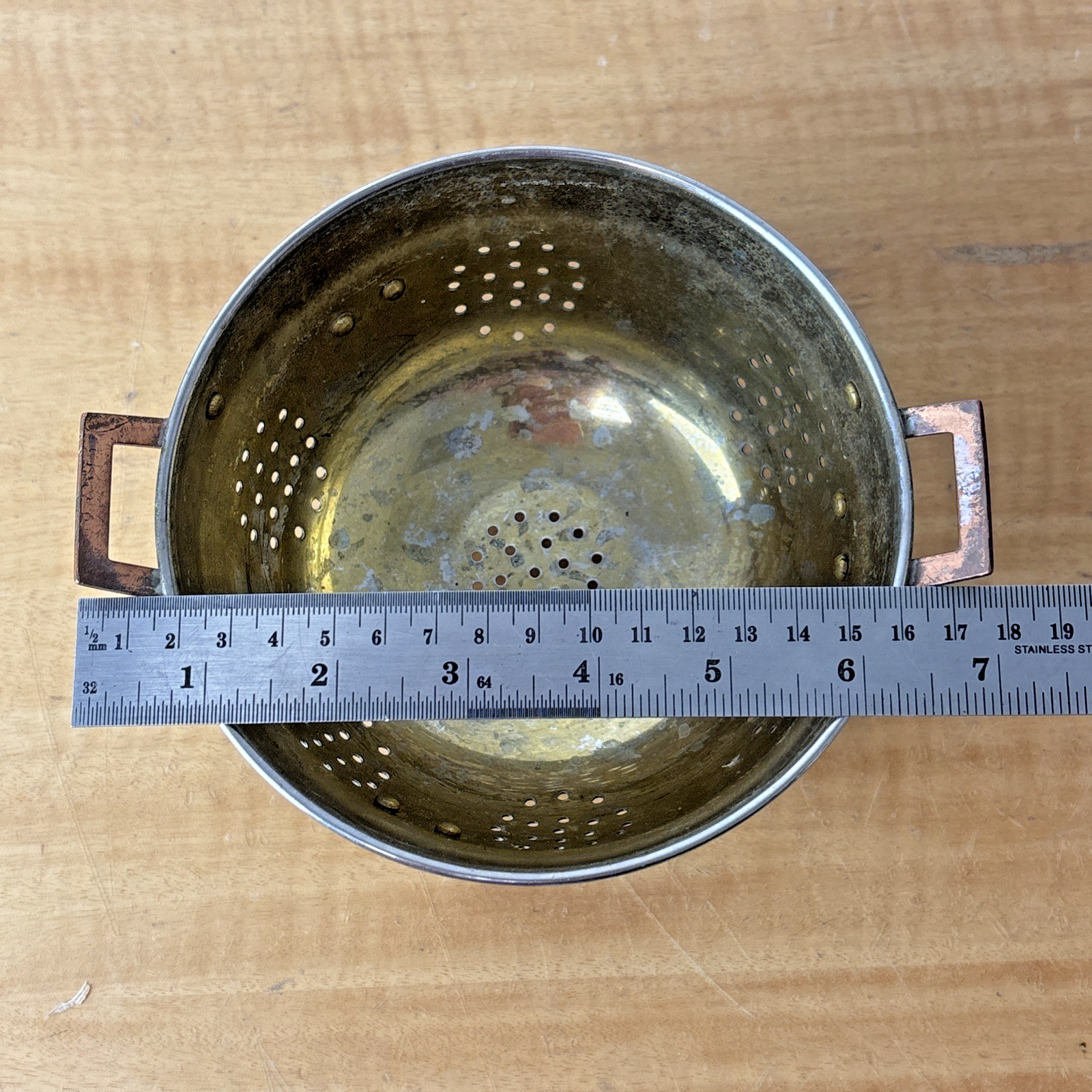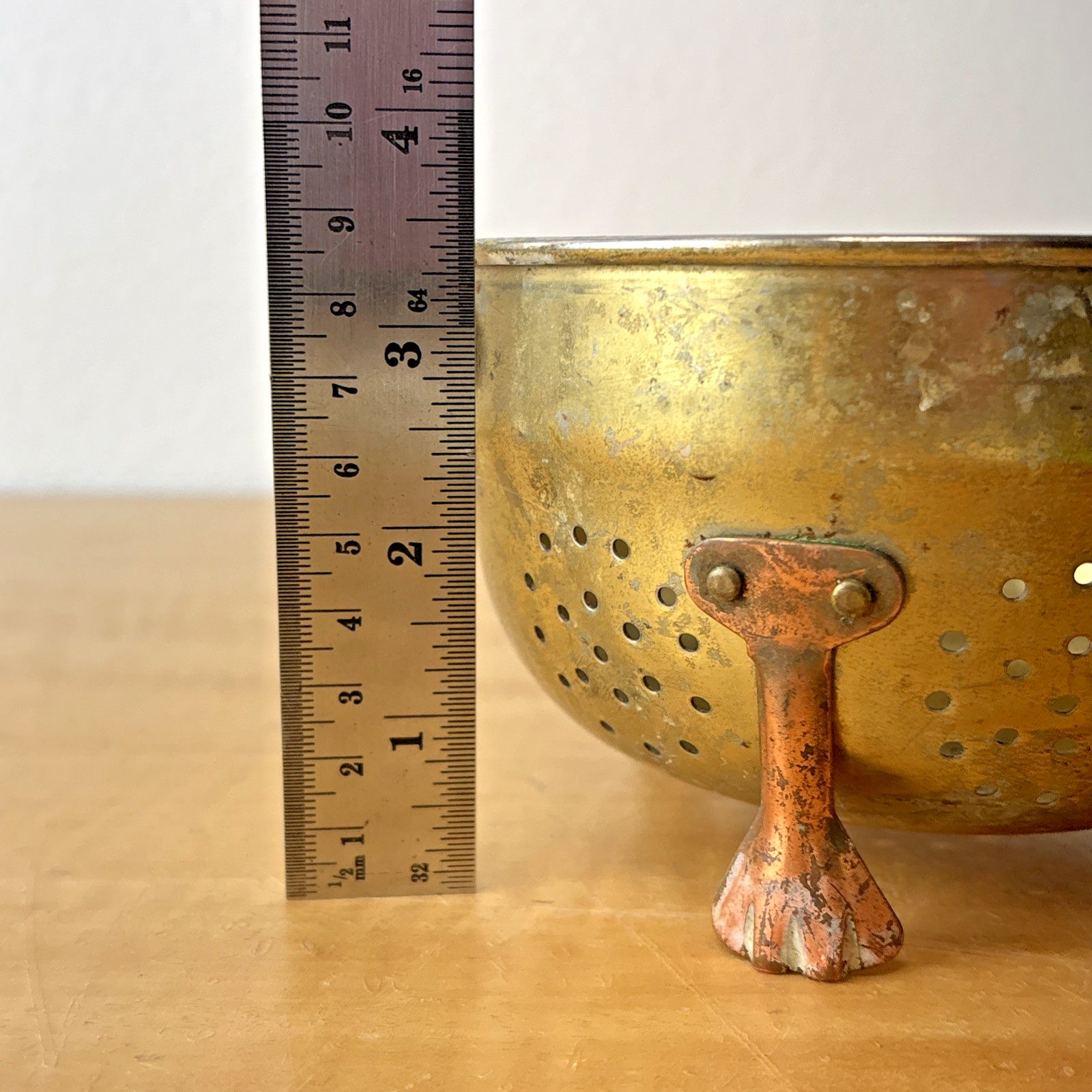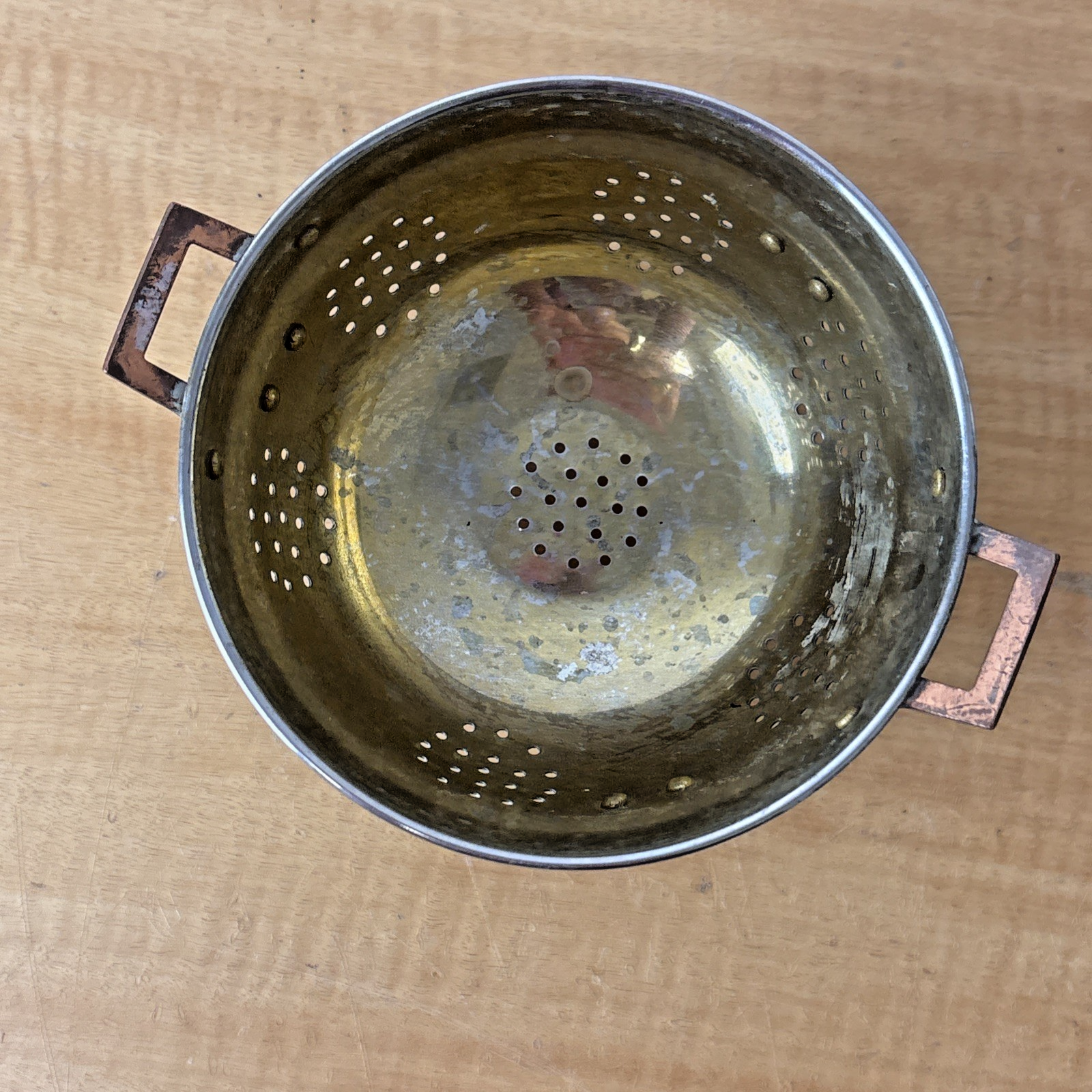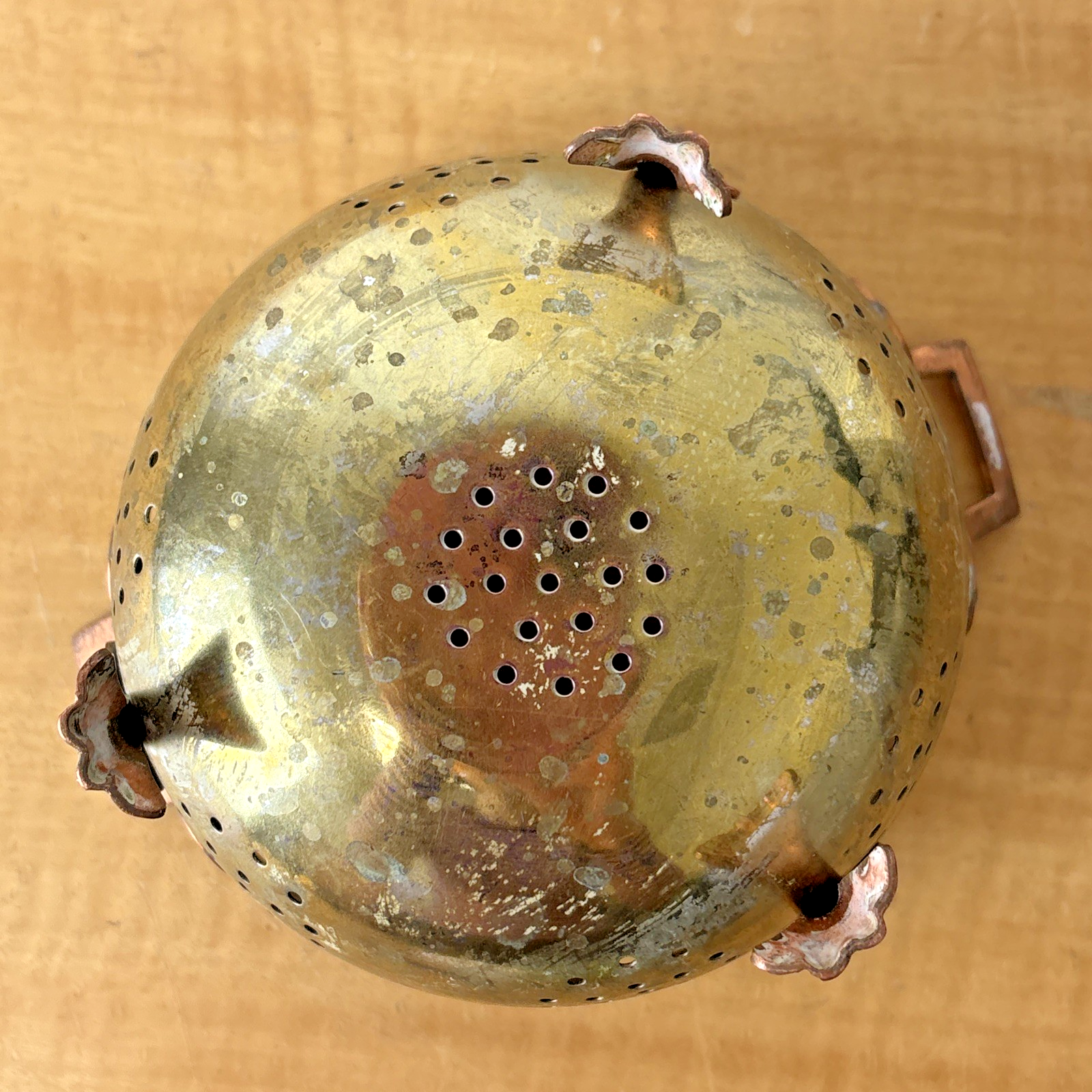 Vintage Three Footed Two Handled Metal ( Copper & Brass ? ) Colander Pot