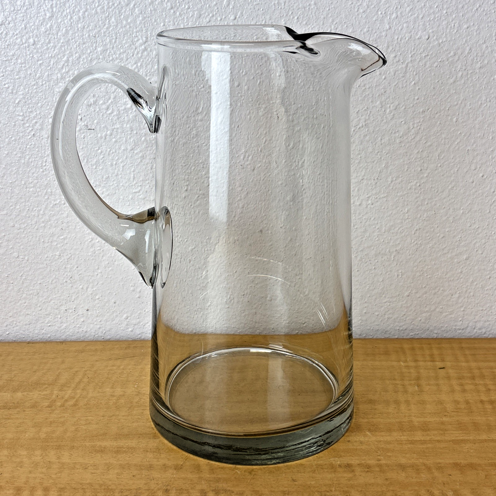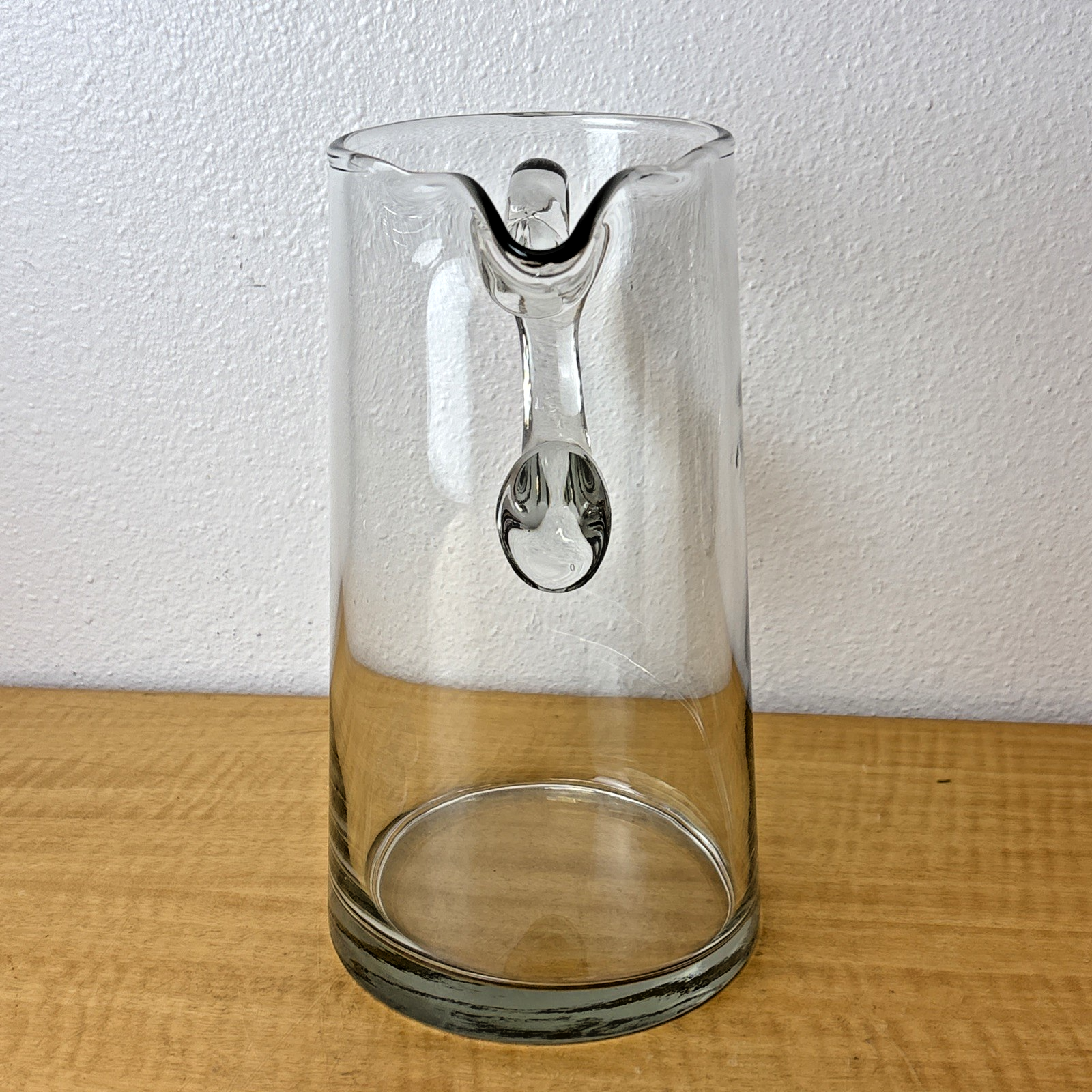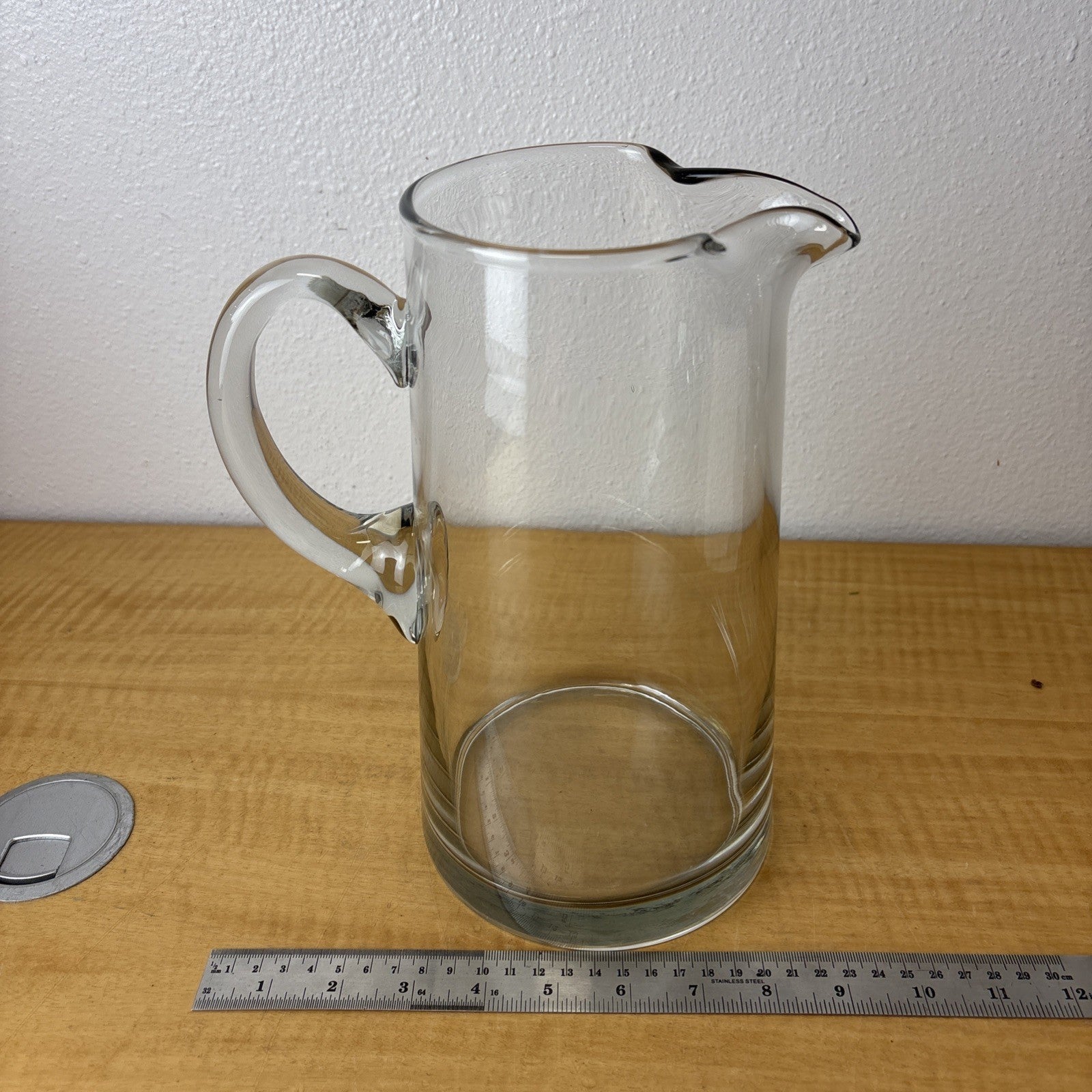 Vintage Thumbprint Wavy Glass Pitcher 10" Clear Glass Heavy