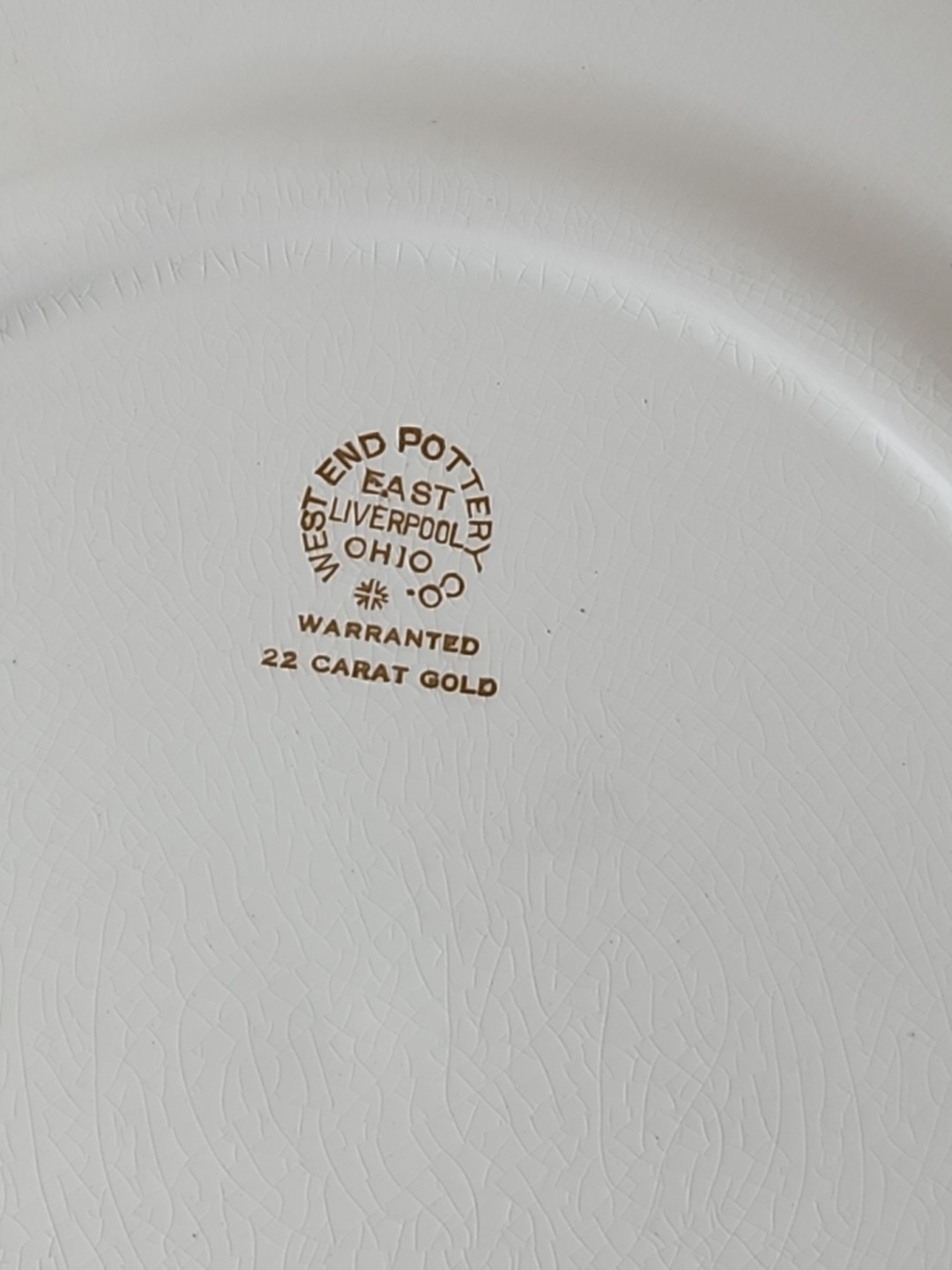 Vintage West End Pottery Co. 22 Carat Gold DINNER PLATE OHIO 10 1/2"