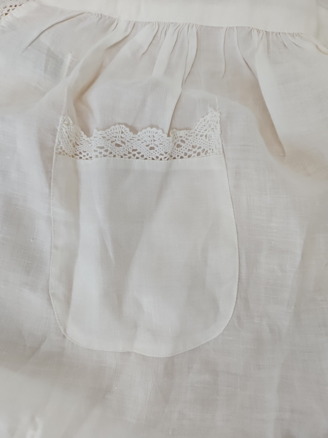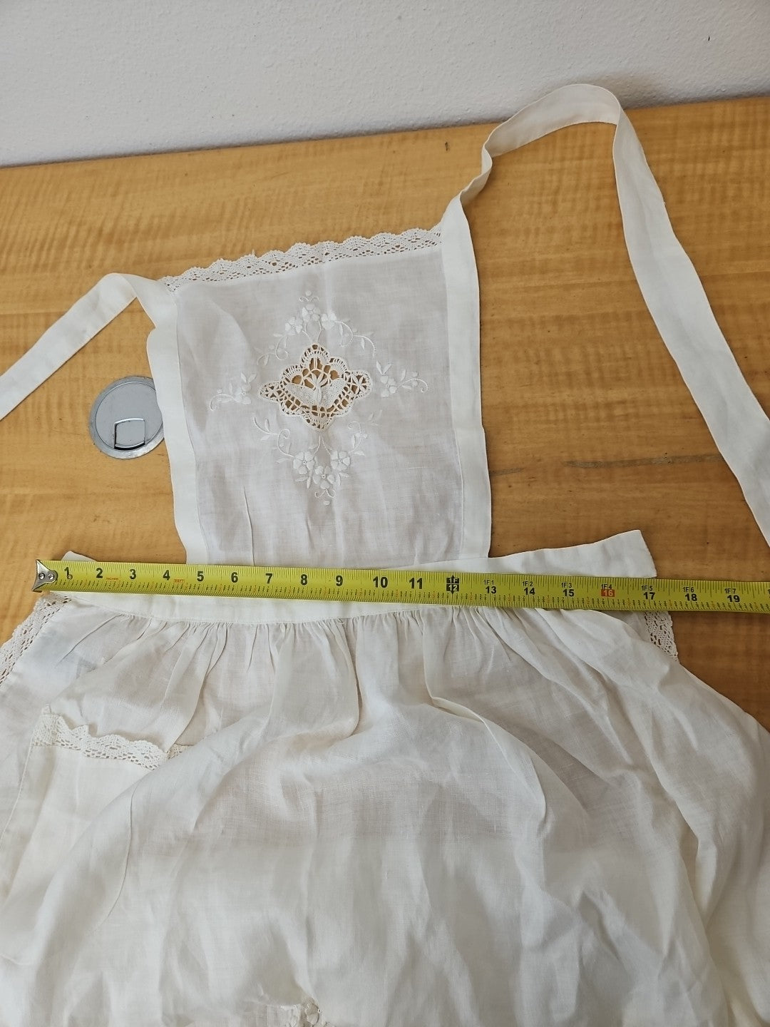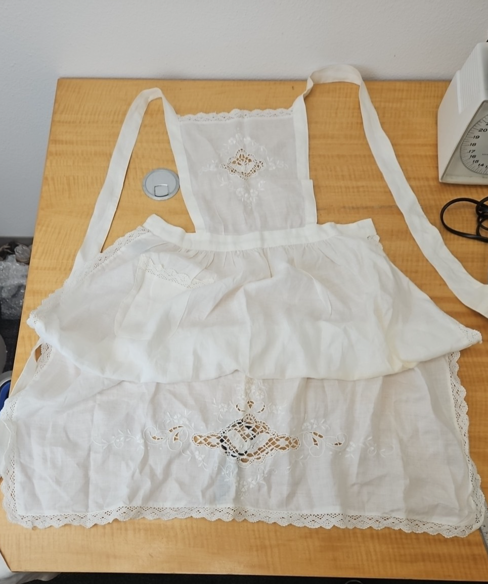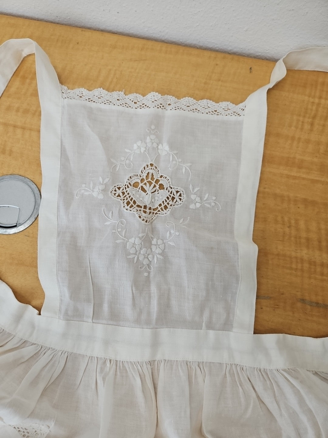 Vogue De Blanc 100% pure linen APRON Keeco. Lace, embroidered, pinafore
