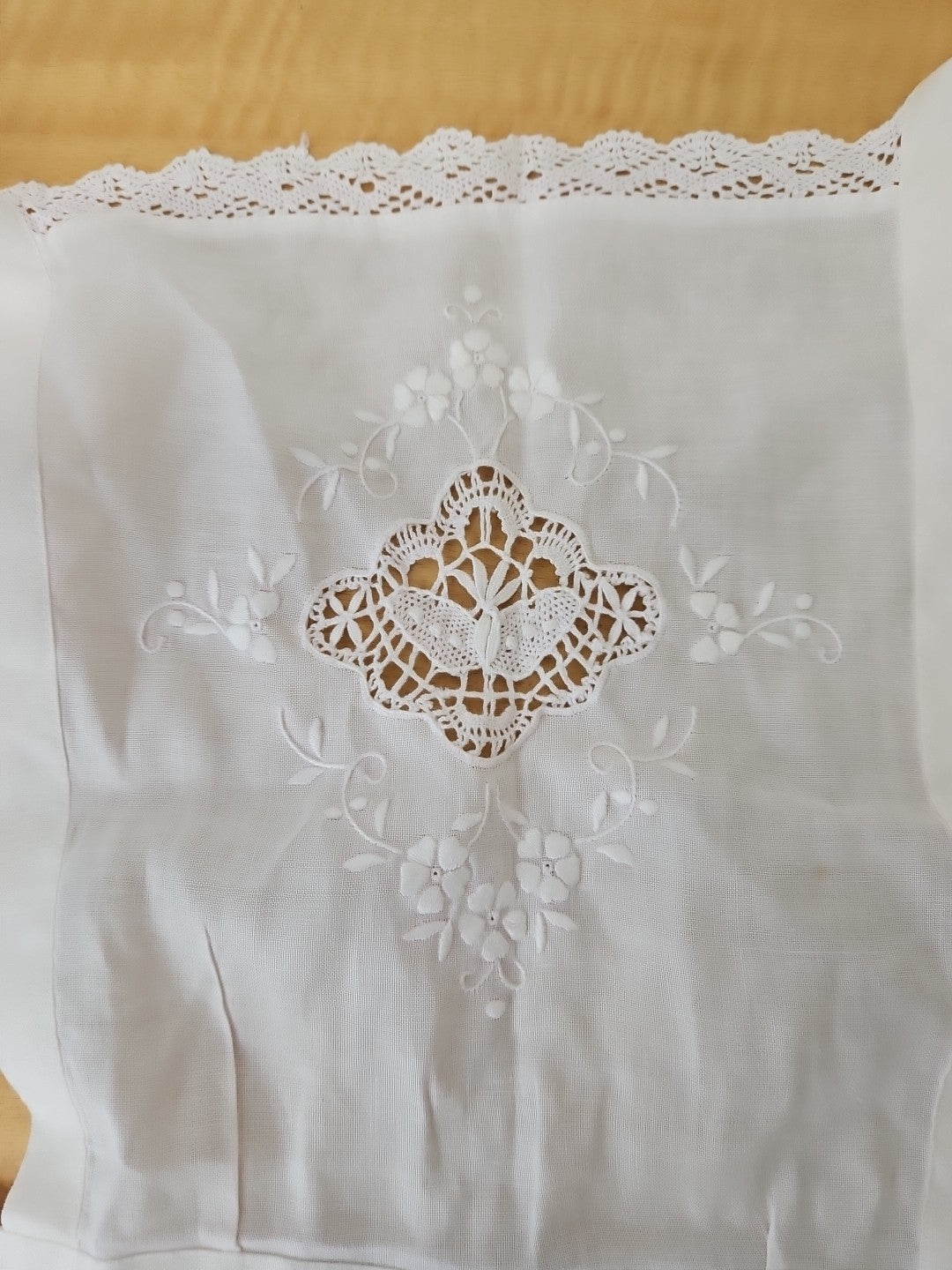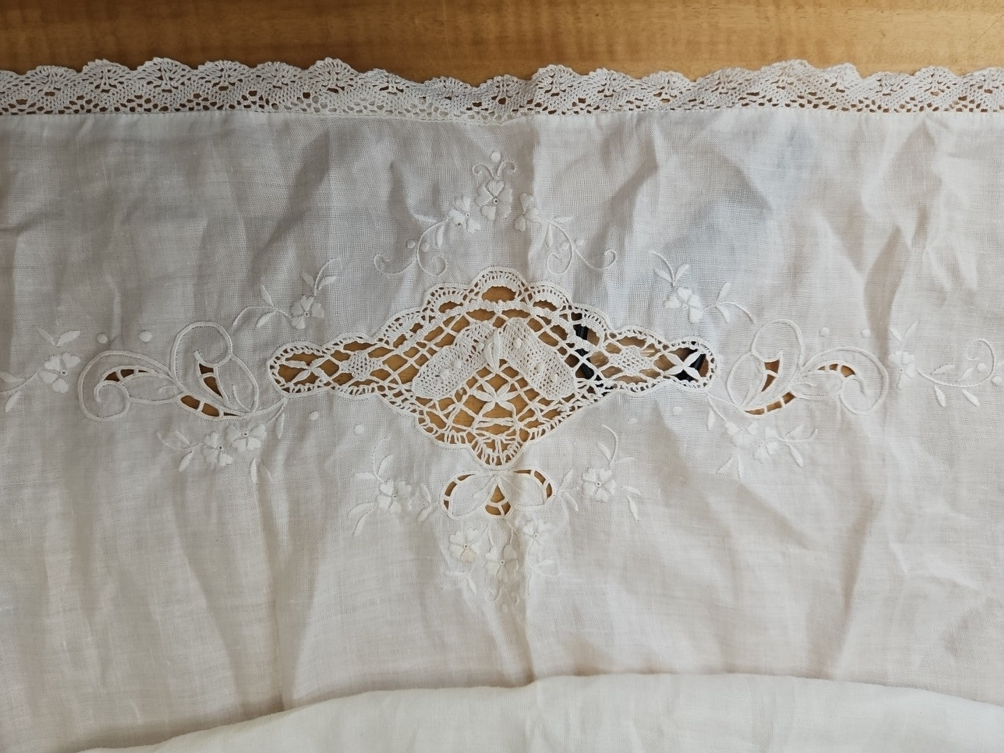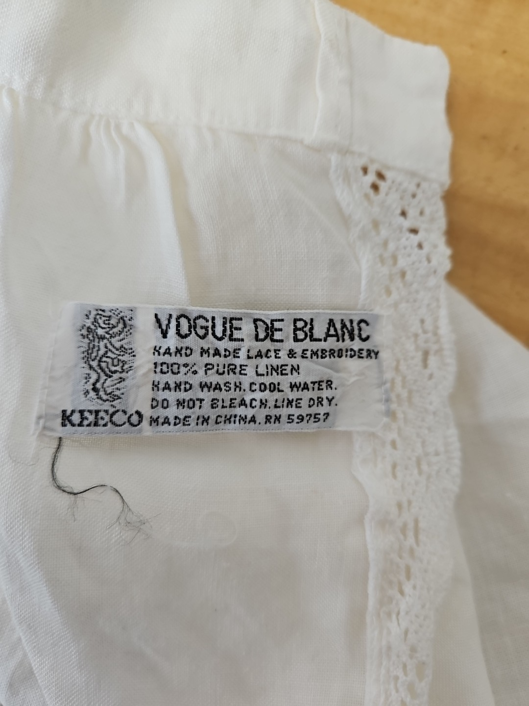 Vogue De Blanc 100% pure linen APRON Keeco. Lace, embroidered, pinafore