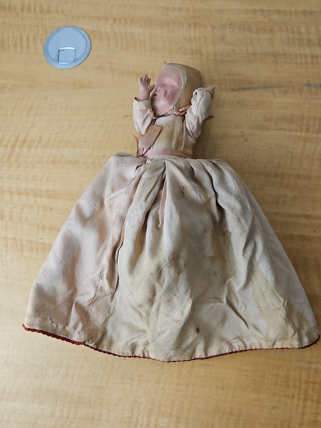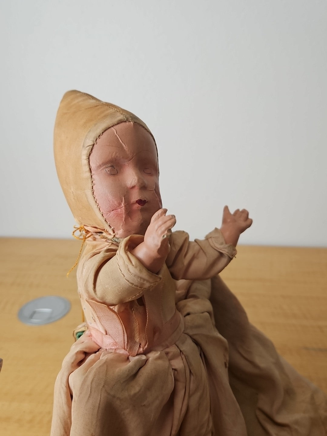 Condition Description: See images, ask questions. Chips and head falling off of underneath doll. Damage on both faces as seen in images.