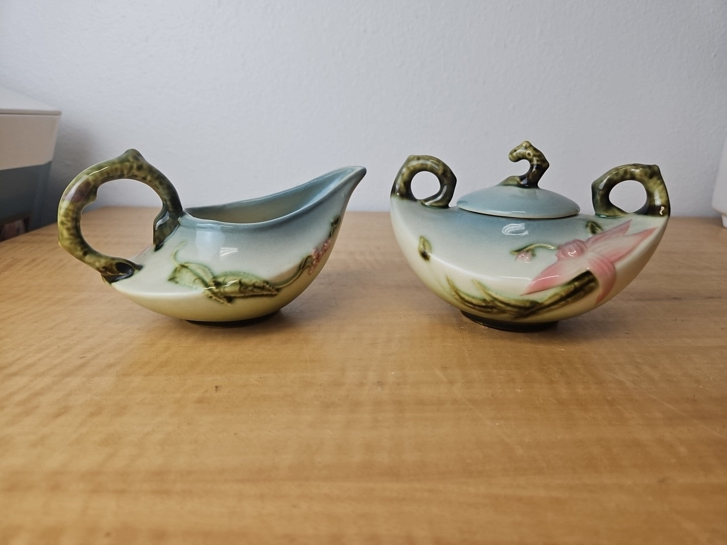 VTG 1950’s set of Hull Art Pottery Woodland- Creamer W27 & Sugar W28