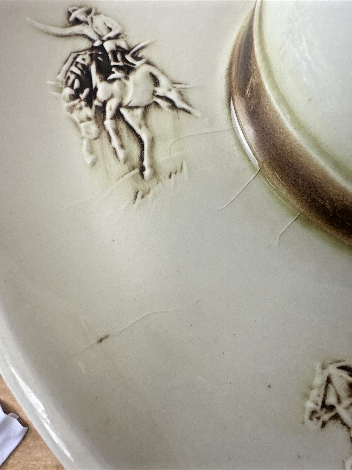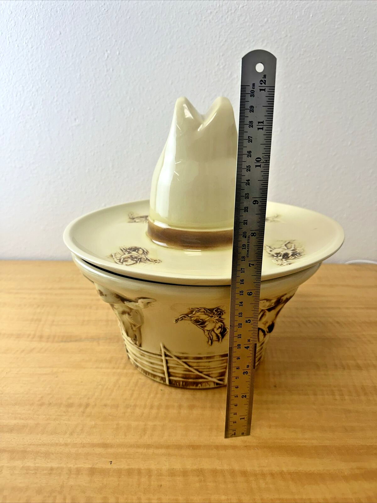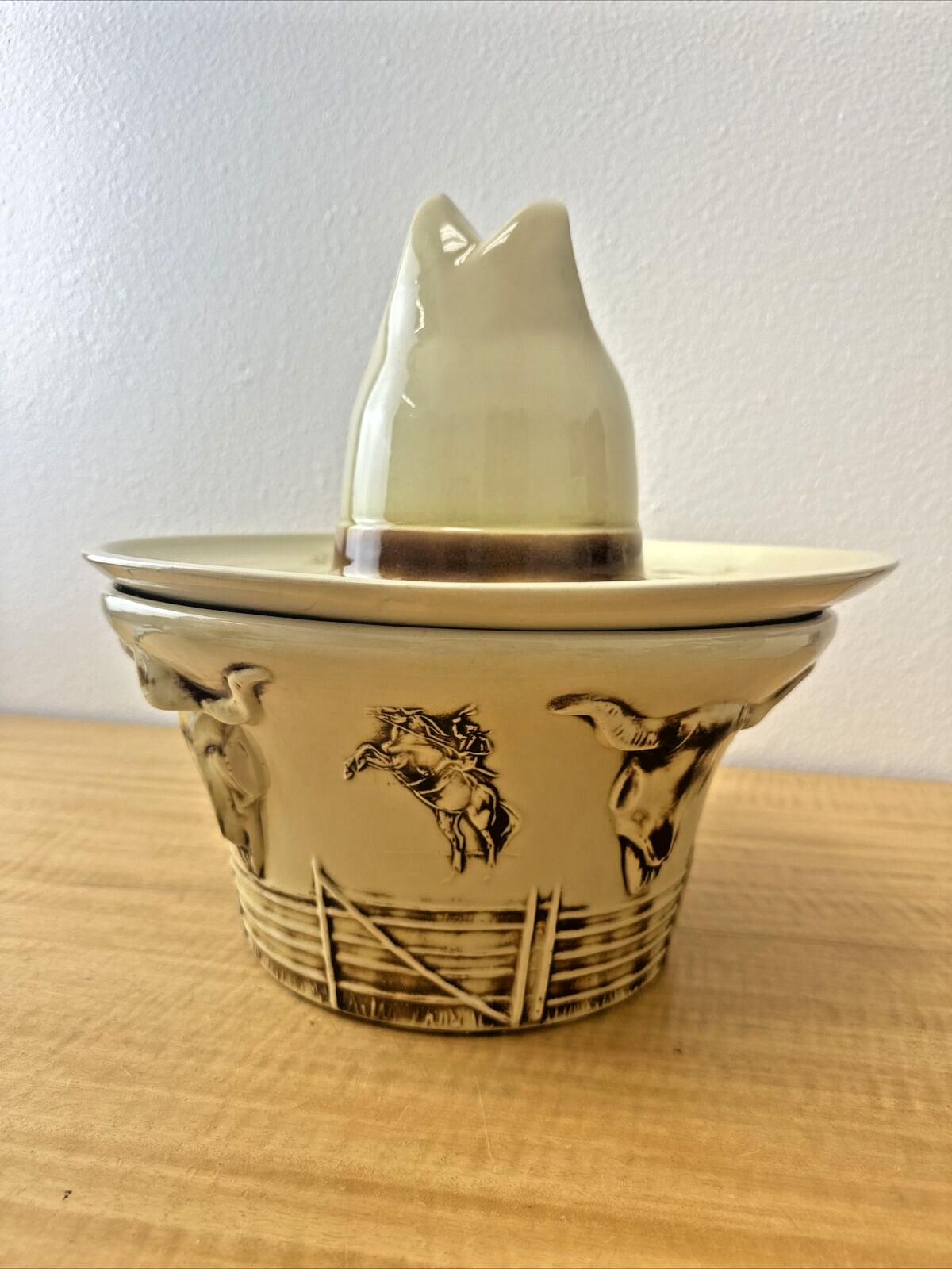 Vtg 1960s McCoy Western Hat BBQ Lidded Chips & Dip Bowl/Cookie Jar