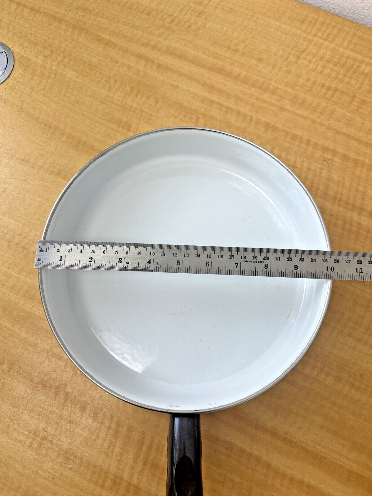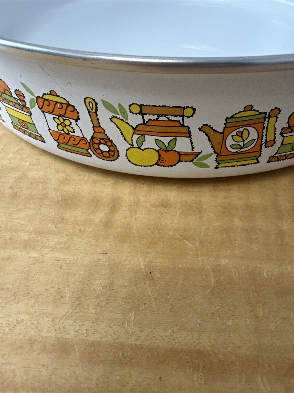 Vtg Enamelware MCM 70’s Skillet Frying Pan With Kitchenware Fruit Flowers 10in