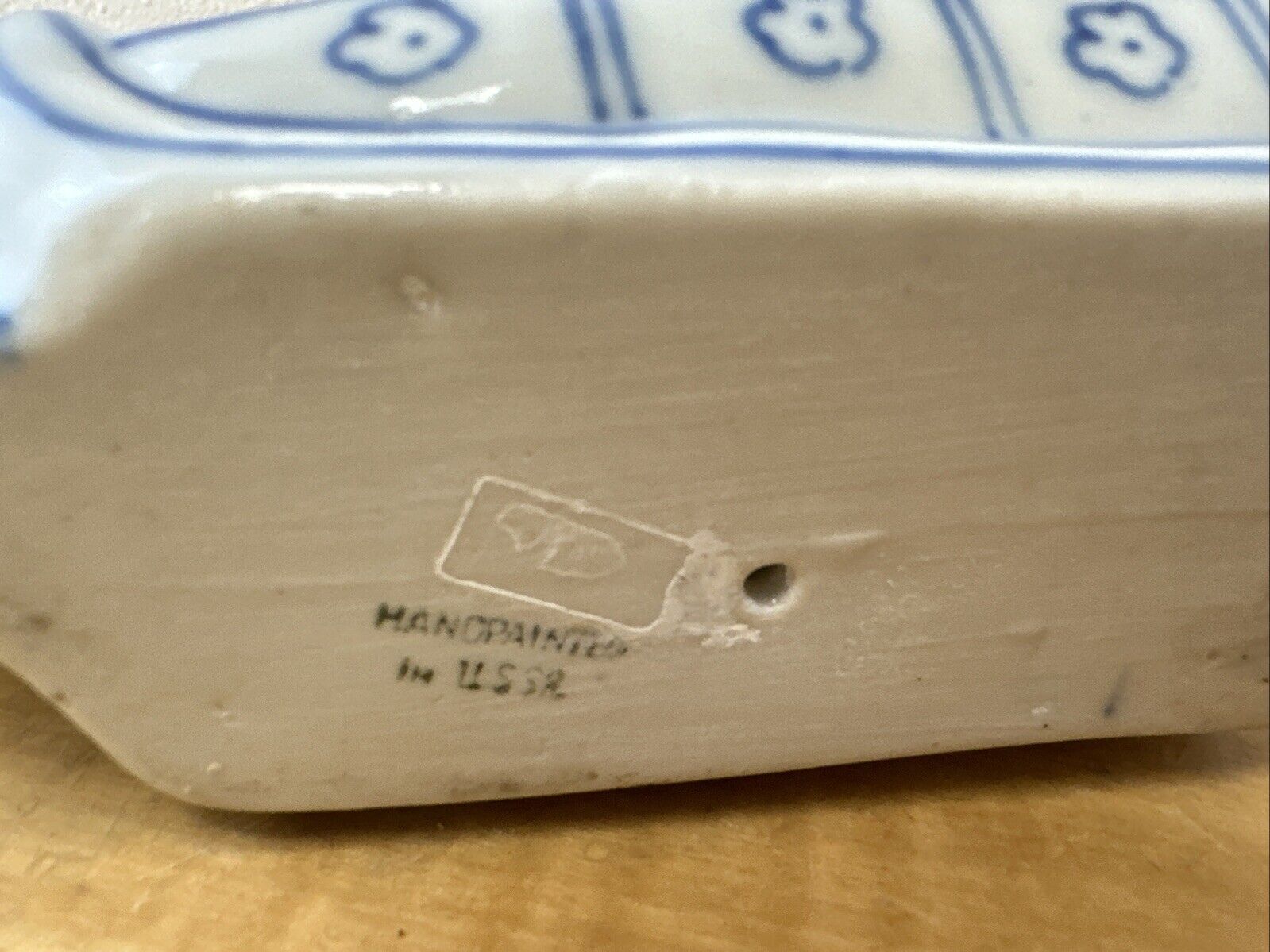 VTG Gzhel USSR Russia Porcelain Figurine TROIKA Sled Horse H/PAINTED Blue/White