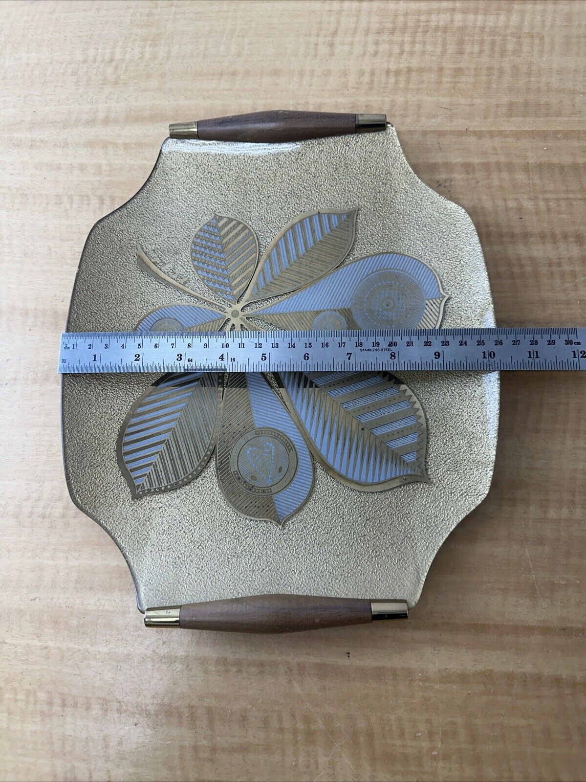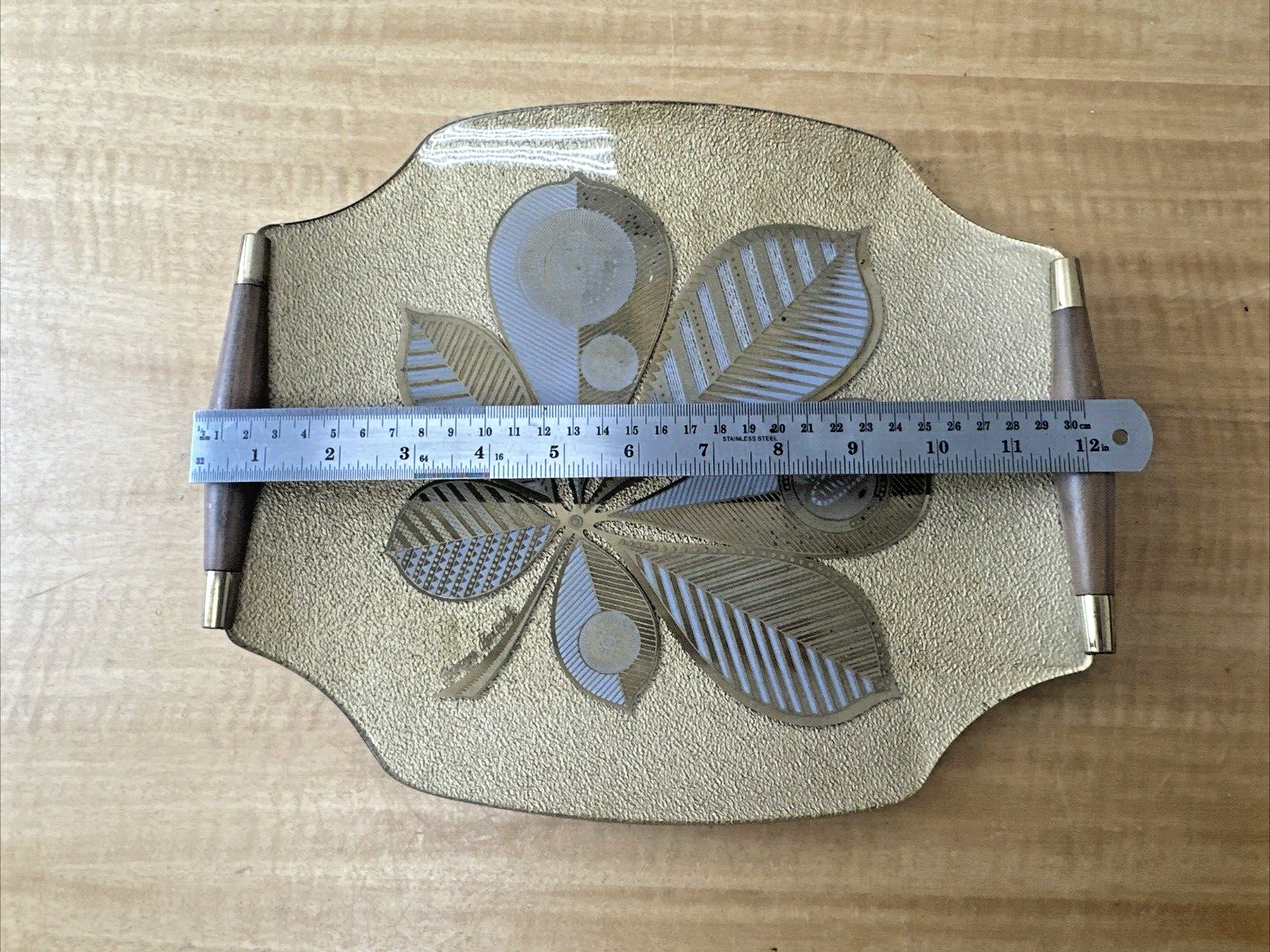 Vtg MCM Georges Briard Glass Serving Tray Chestnut Leaf Gold 12.5"