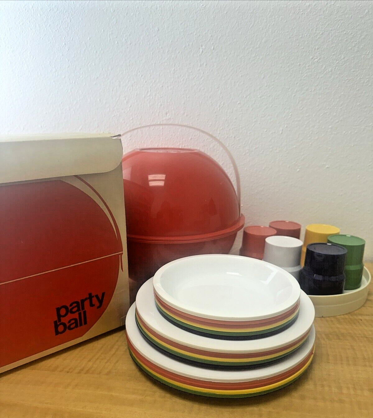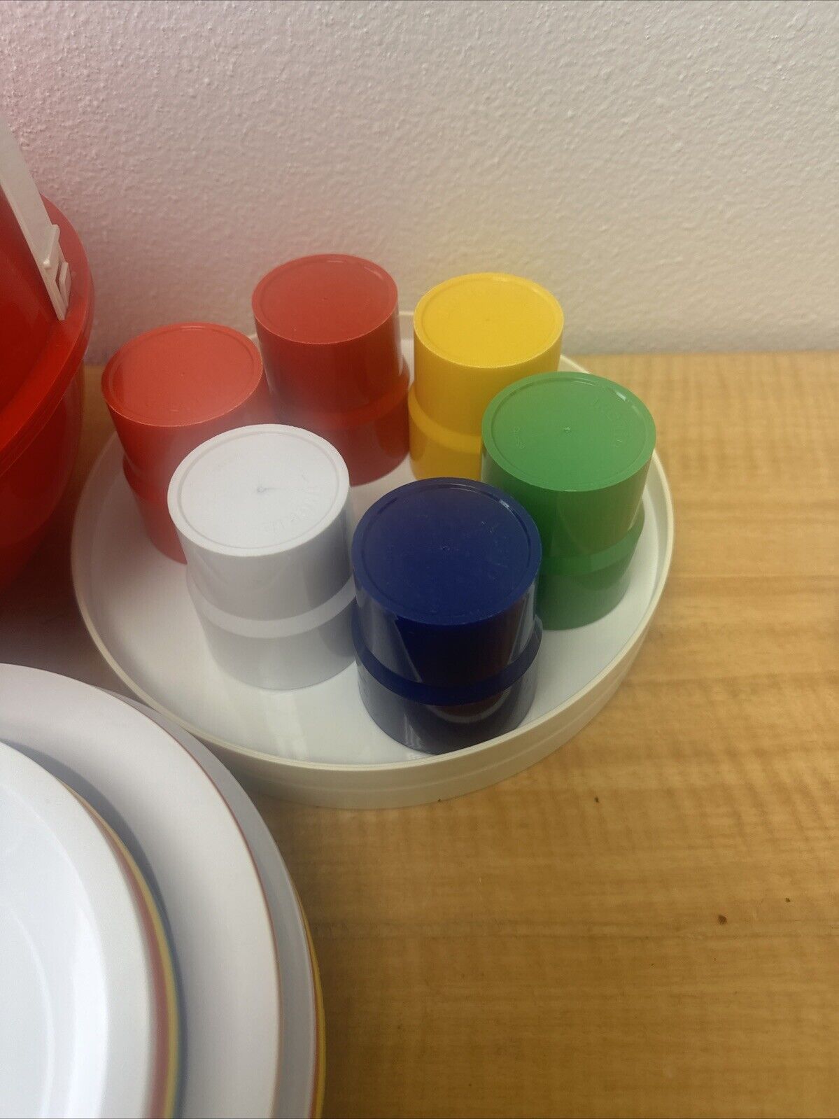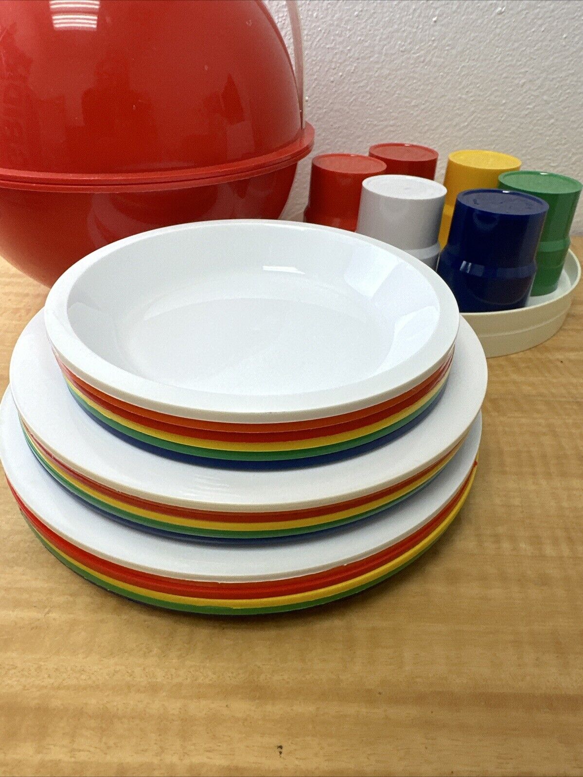 VTG MCM Ingrid Chicago Plastic 28 Piece Party Ball Picnic Set Plates Bowls Cups