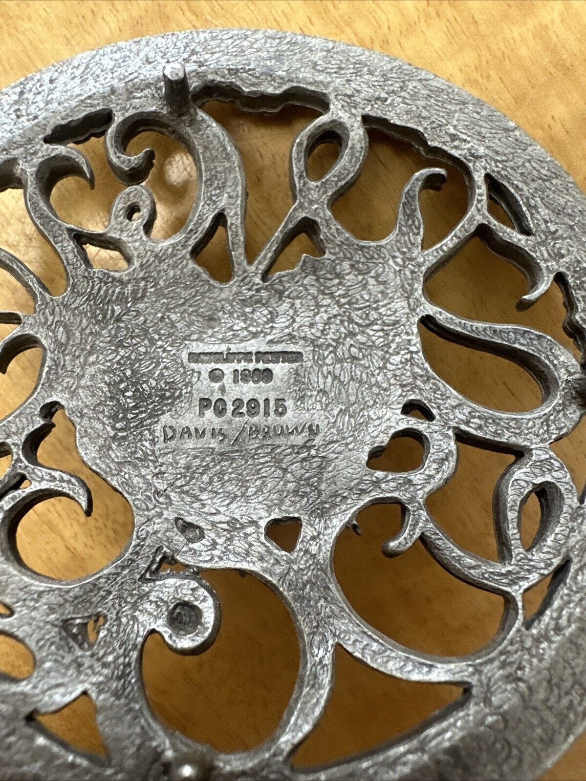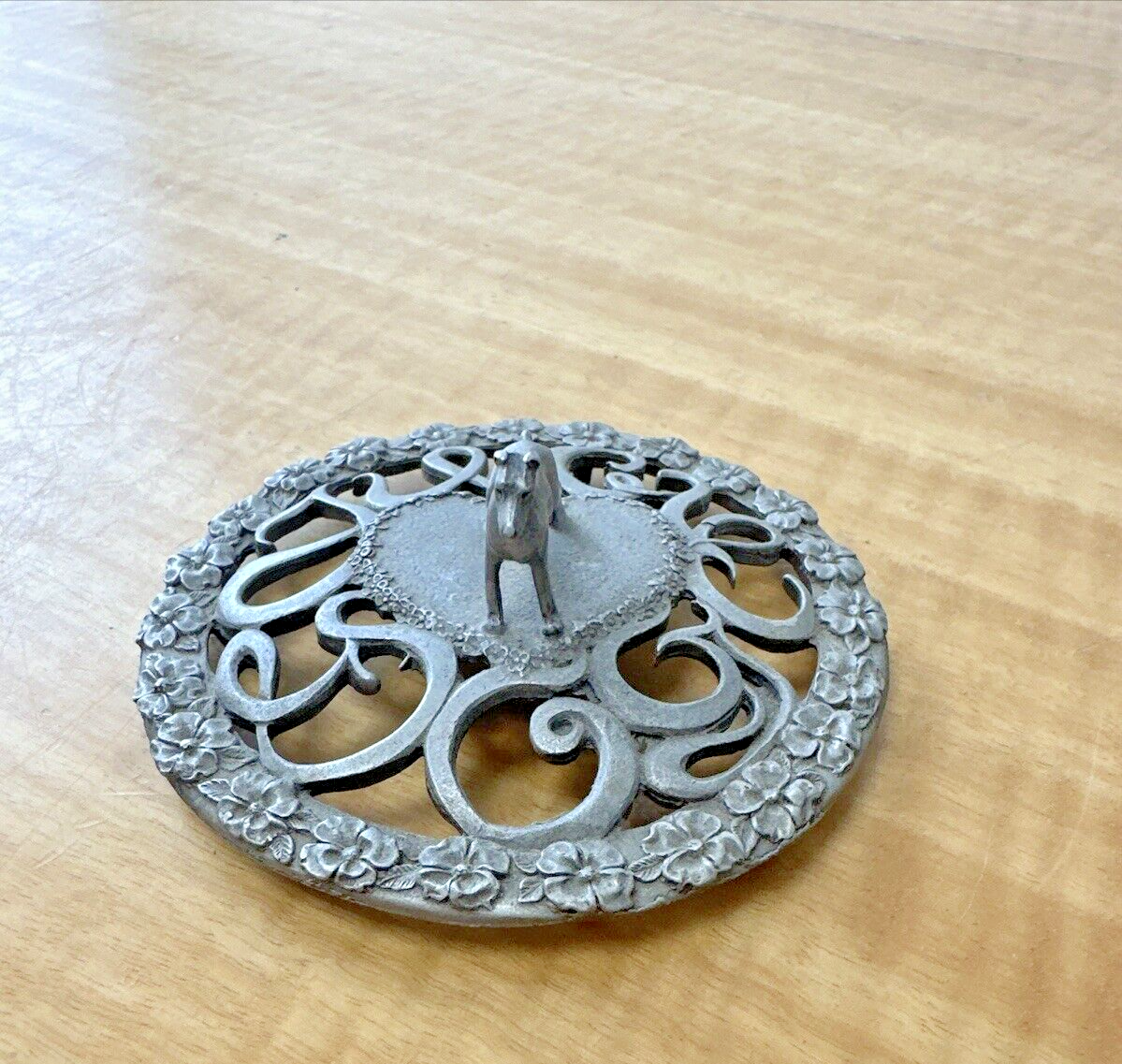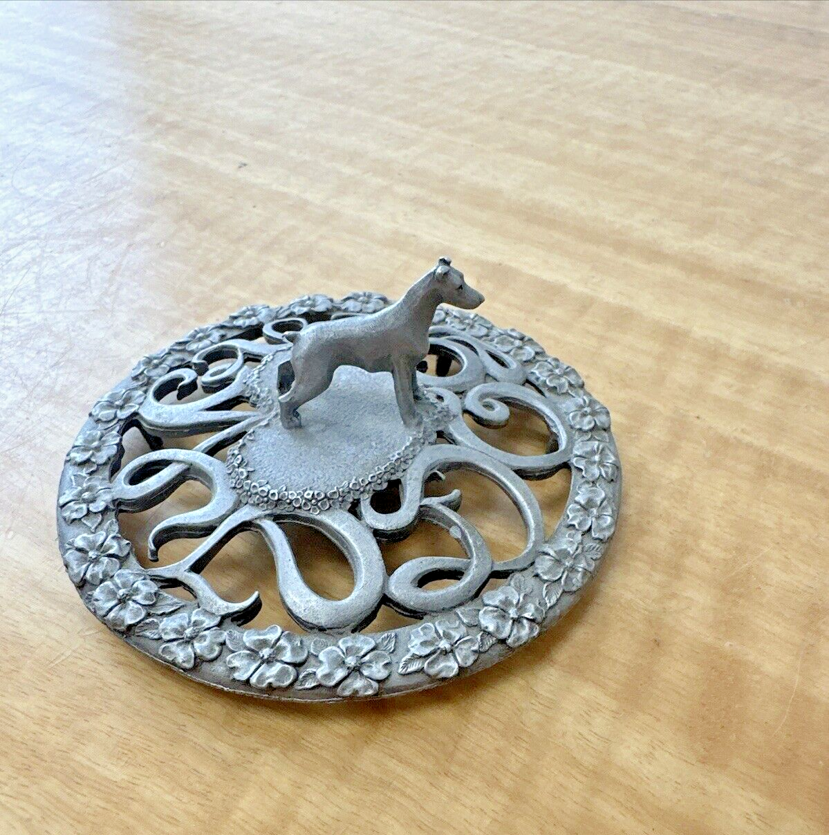 Vtg Pawcliffe Pewter 1989 Davis/Brown Dog Potpourri Dish Topper P02915