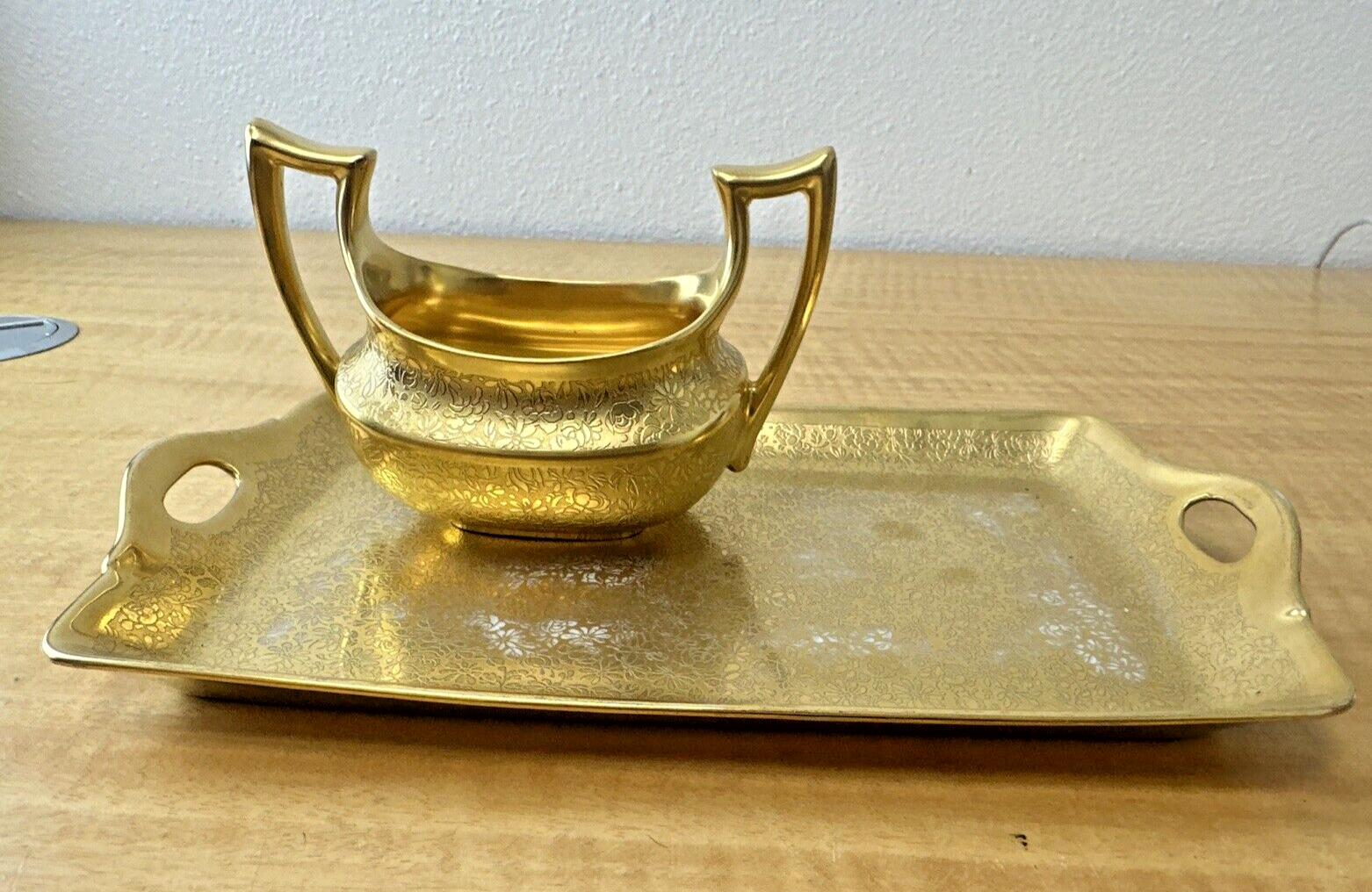 VTG PICKARD CHINA 464 ROSE & DAISY GOLD ENCRUSTED SUGAR BOWL TRAY ONLY