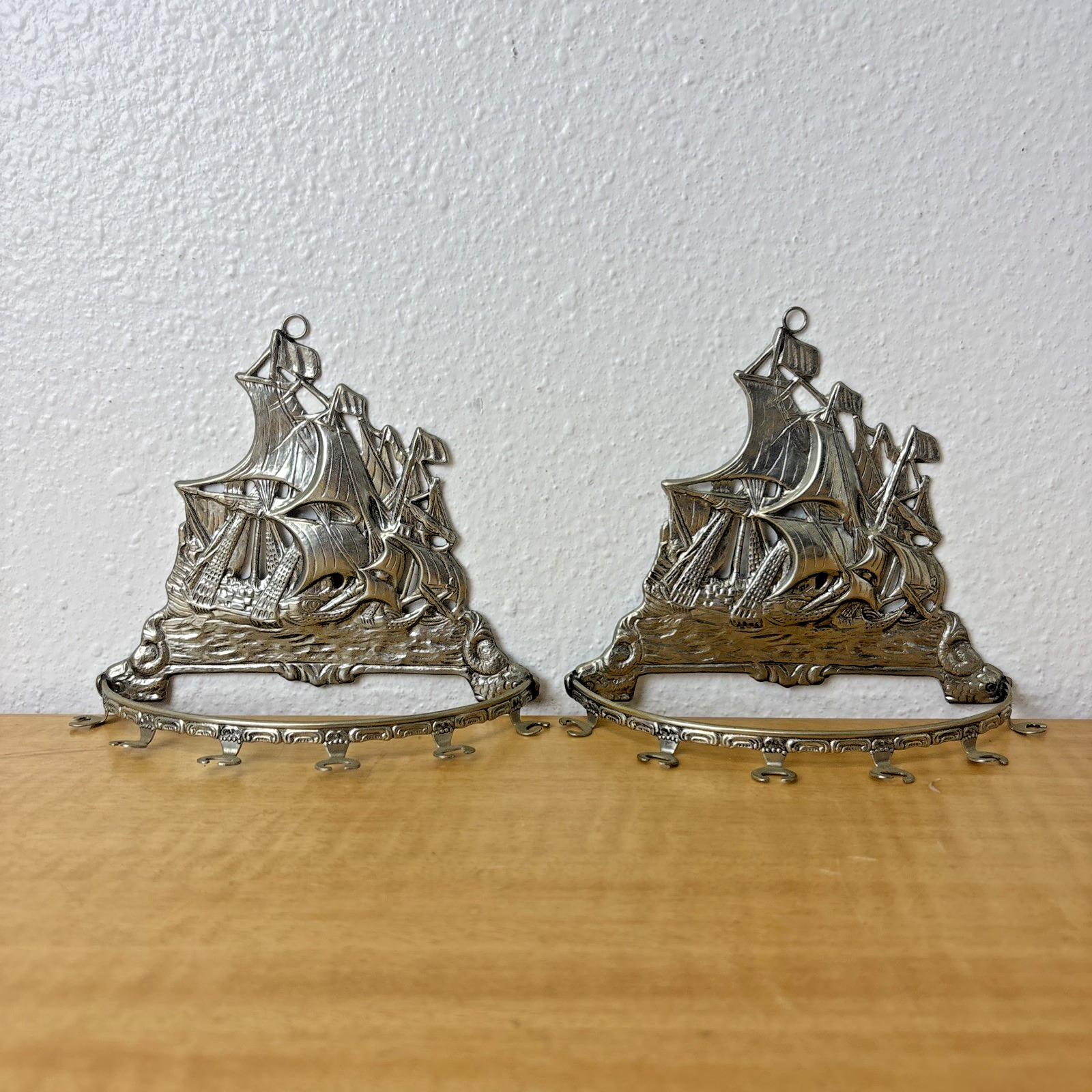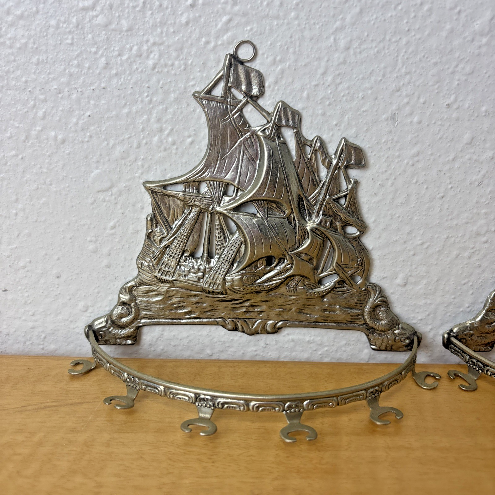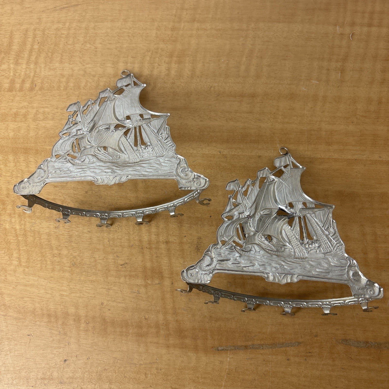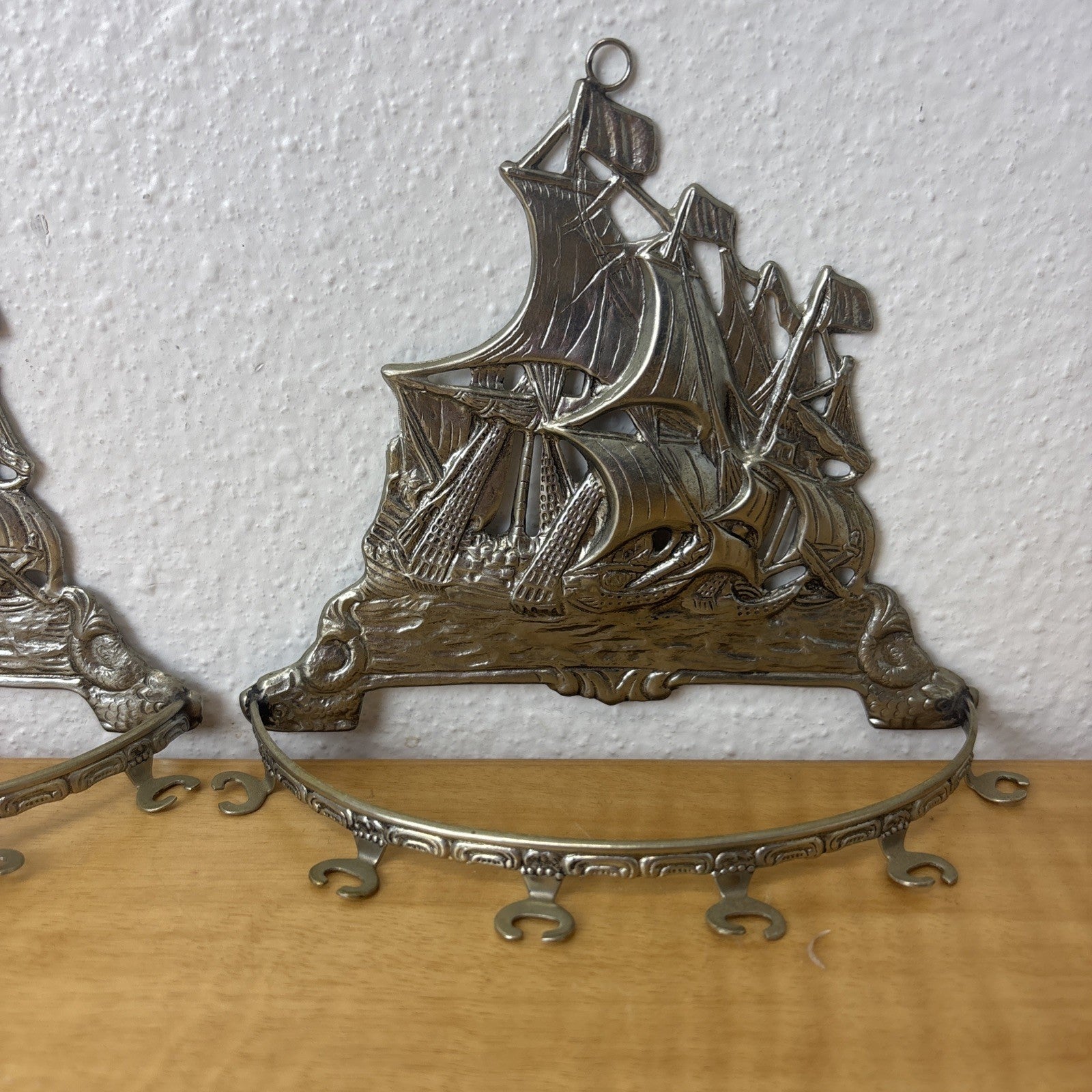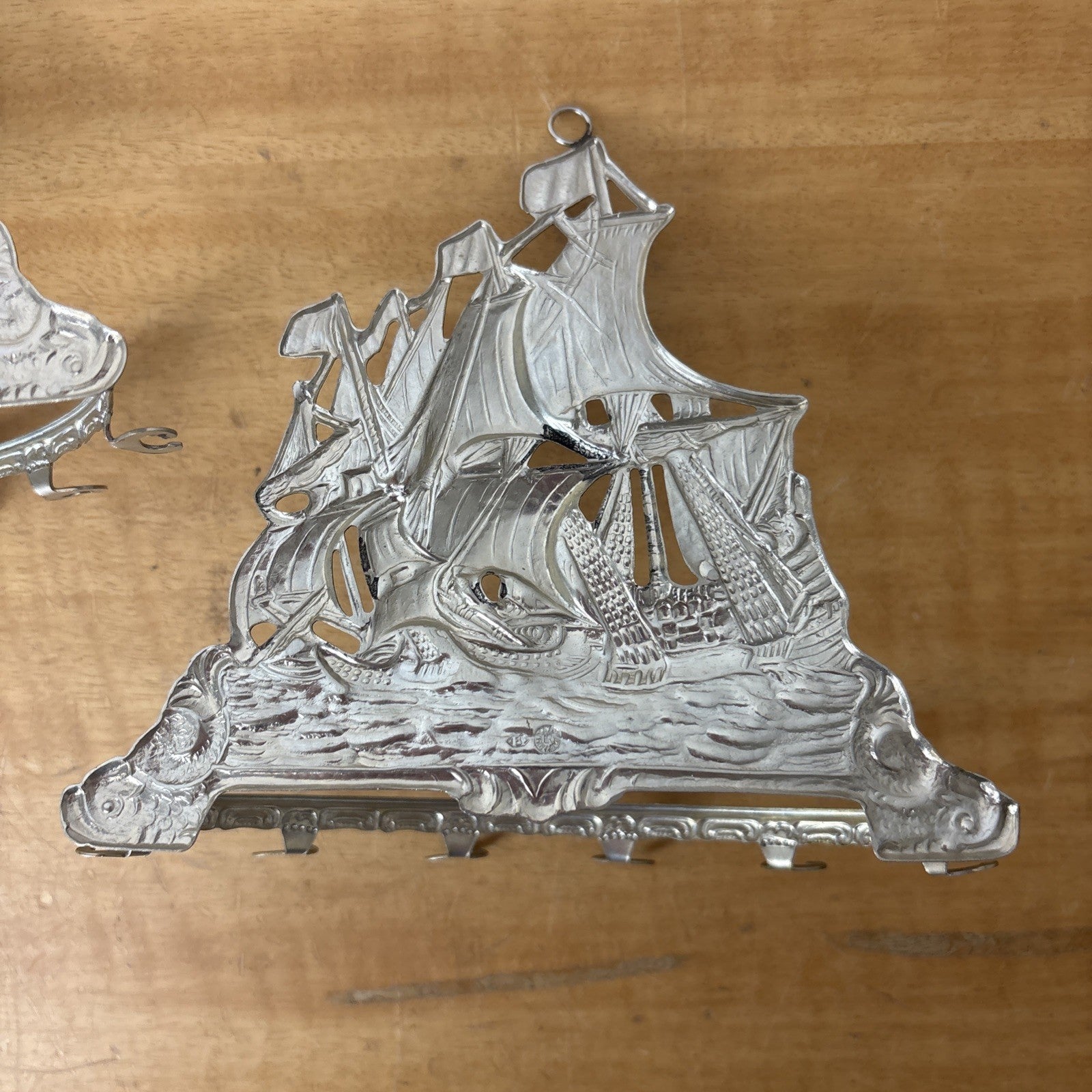VTG Sailing Ship Boat Hanging Spoon Rack Holland Dutch Set of 2