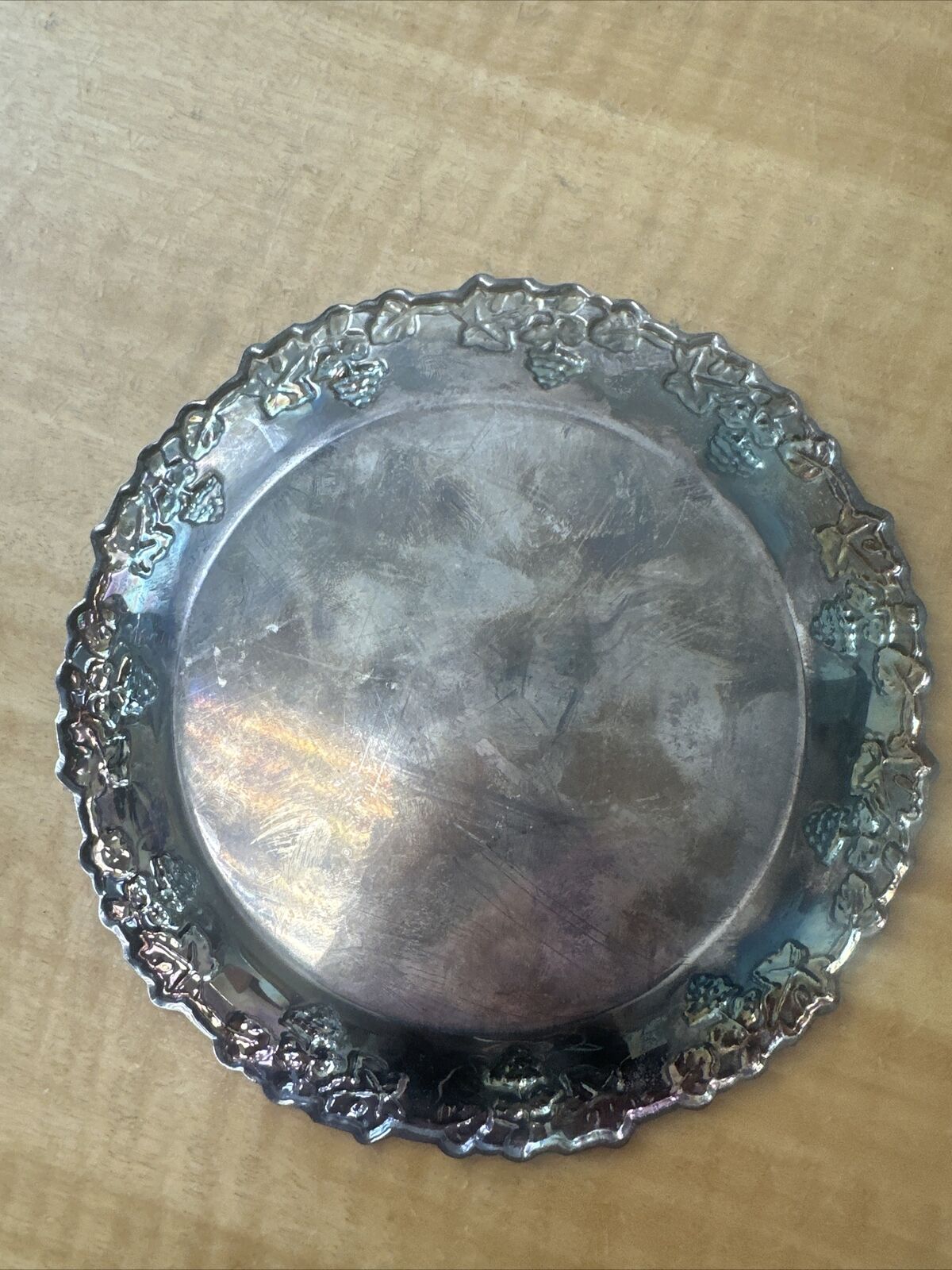 VTG Silver Plated ETCHED Grape LEAF Vine WINE Bottle HOLDER Coaster HONG KONG 1