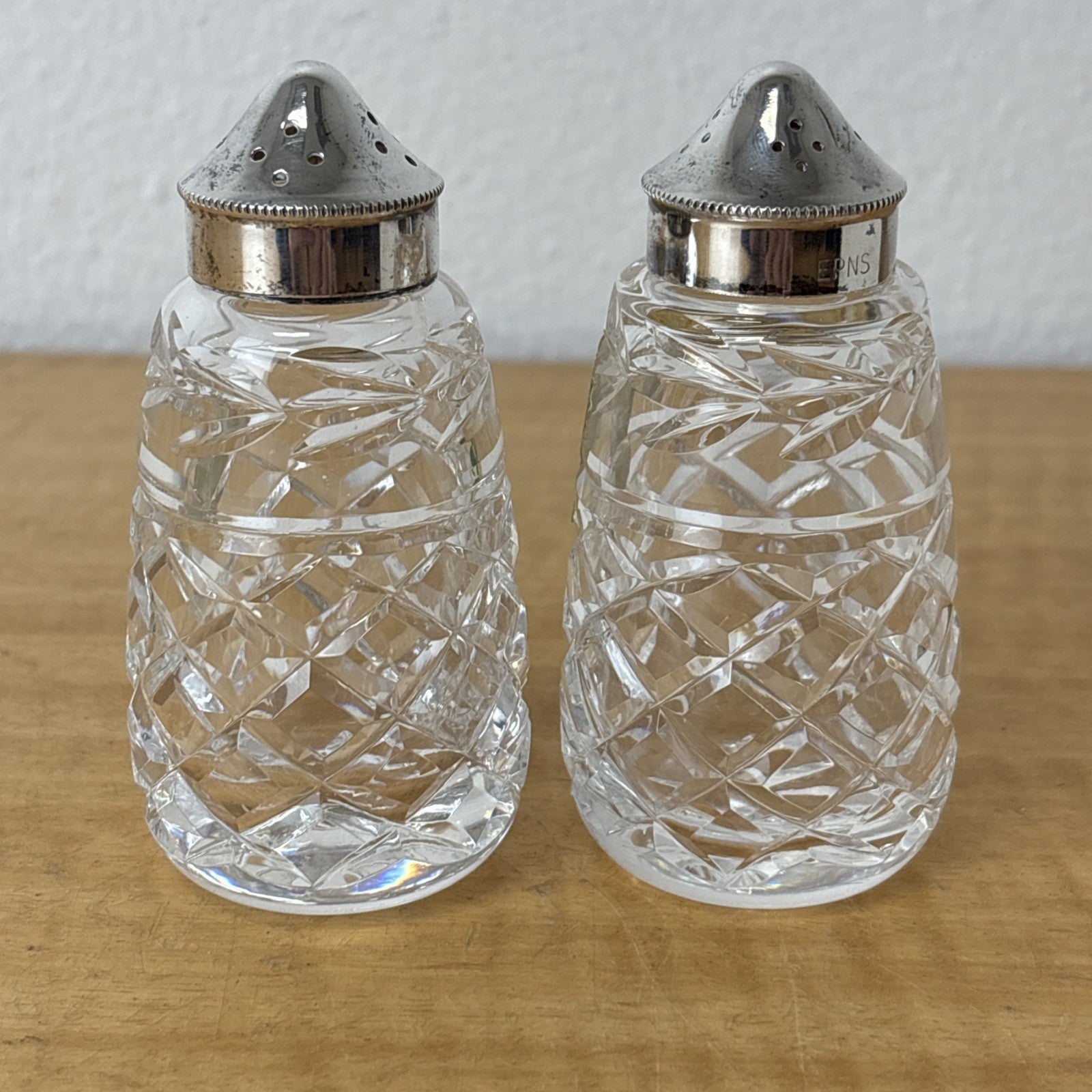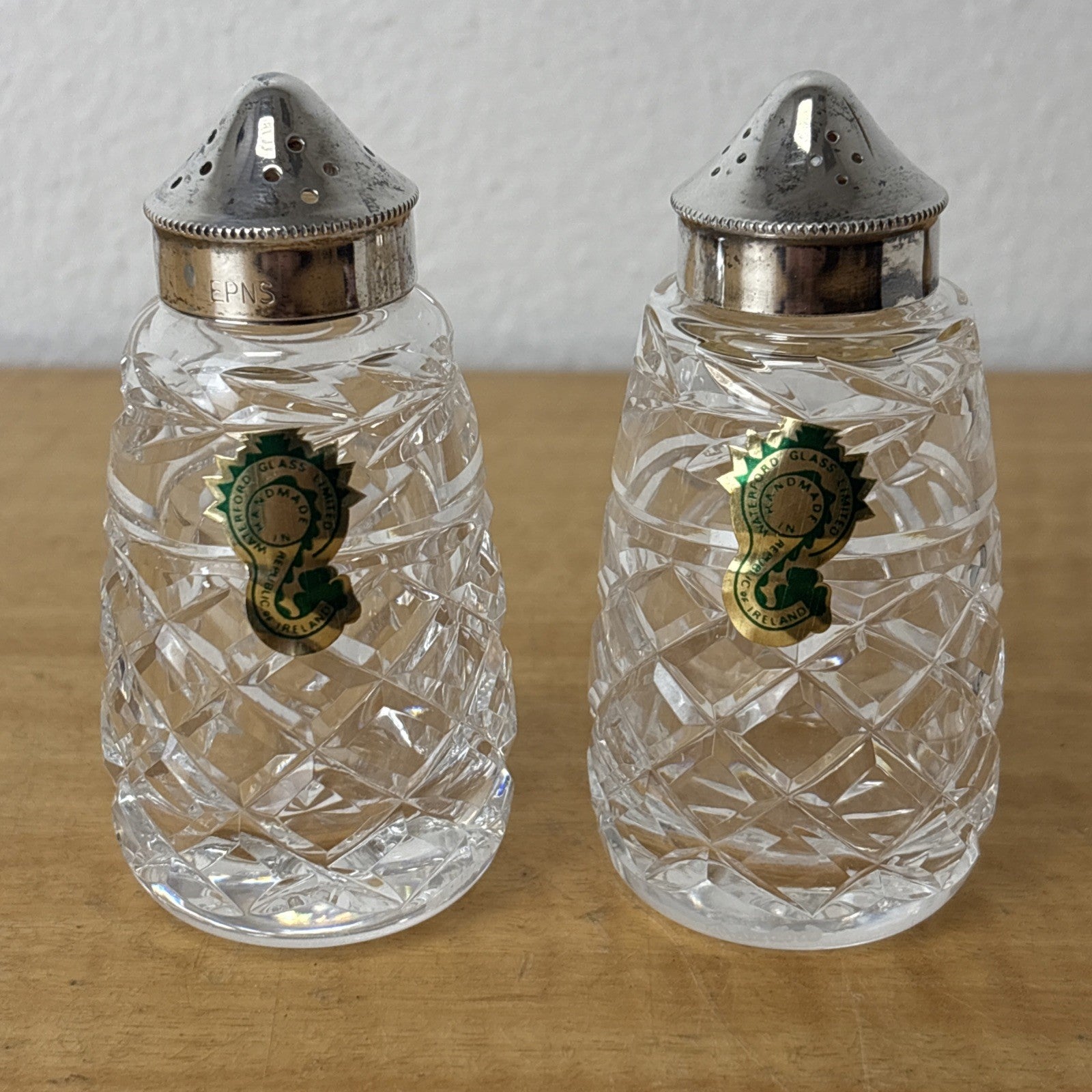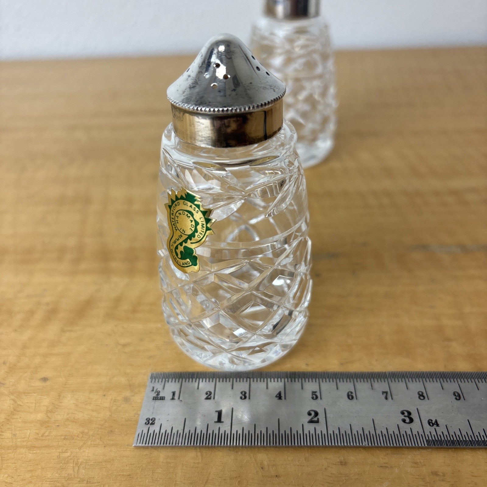 Waterford Crystal Glandore Salt and Pepper Shakers EPNS Silver Tops Set