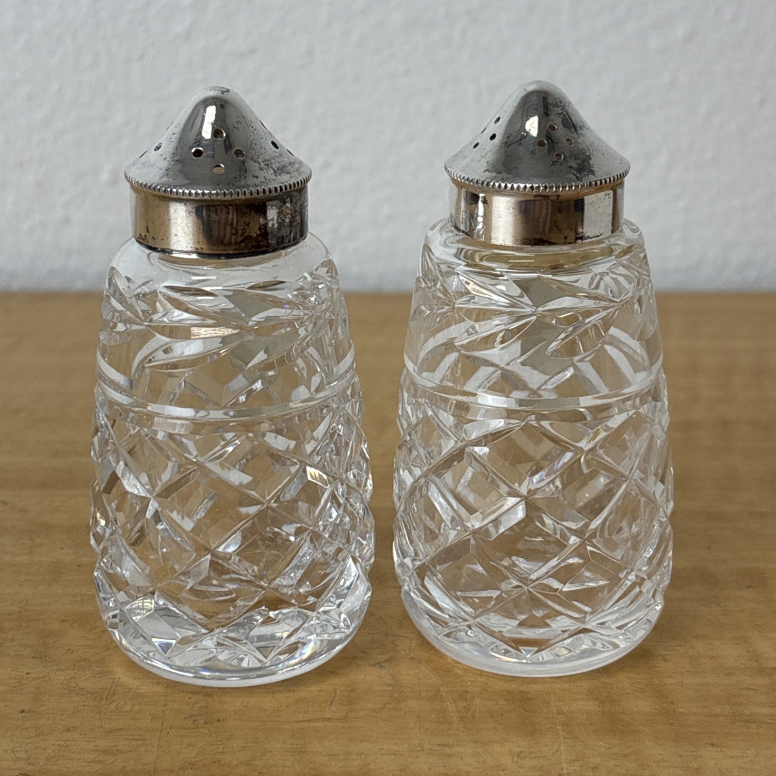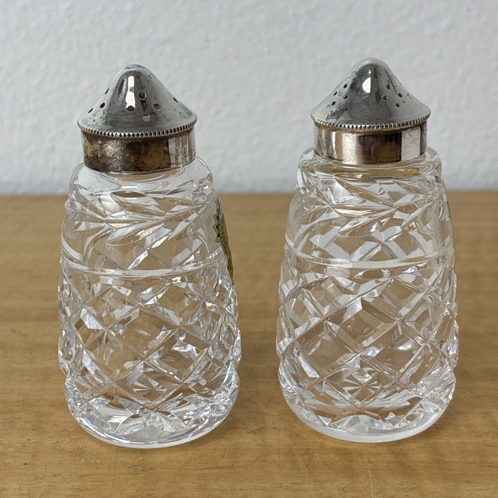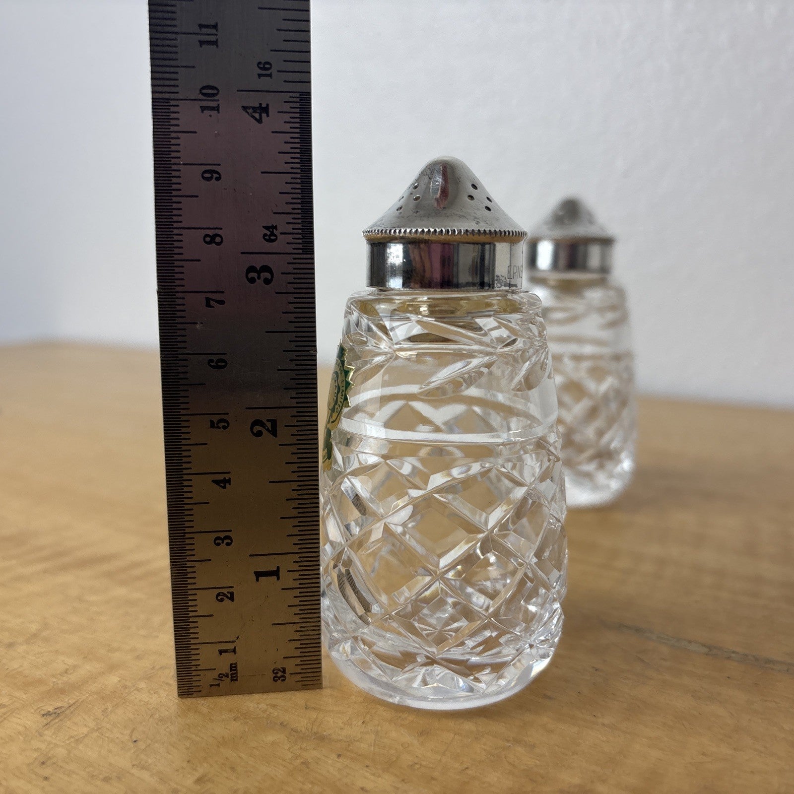 Waterford Crystal Glandore Salt and Pepper Shakers EPNS Silver Tops Set