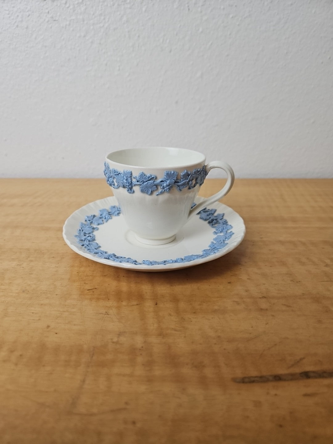 Wedgwood Embossed Queens ware Cup and Saucer Barlaston of Etruria