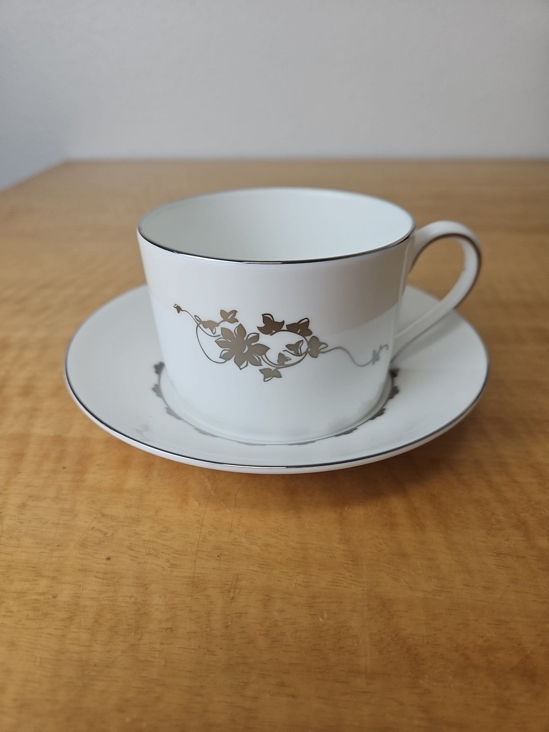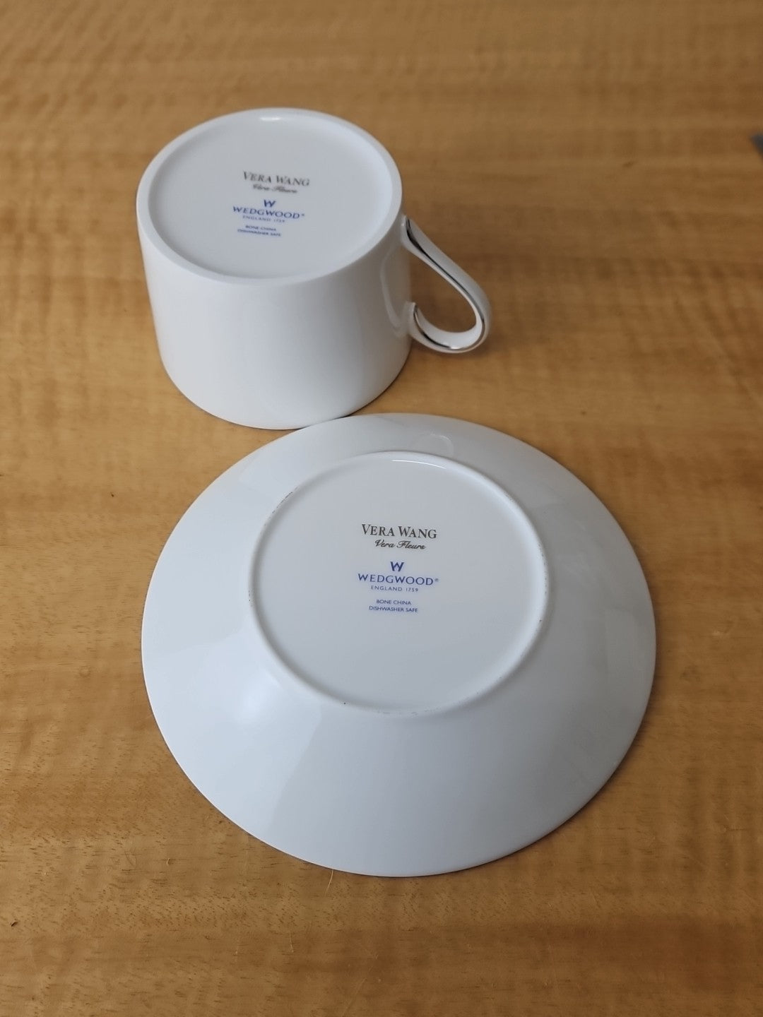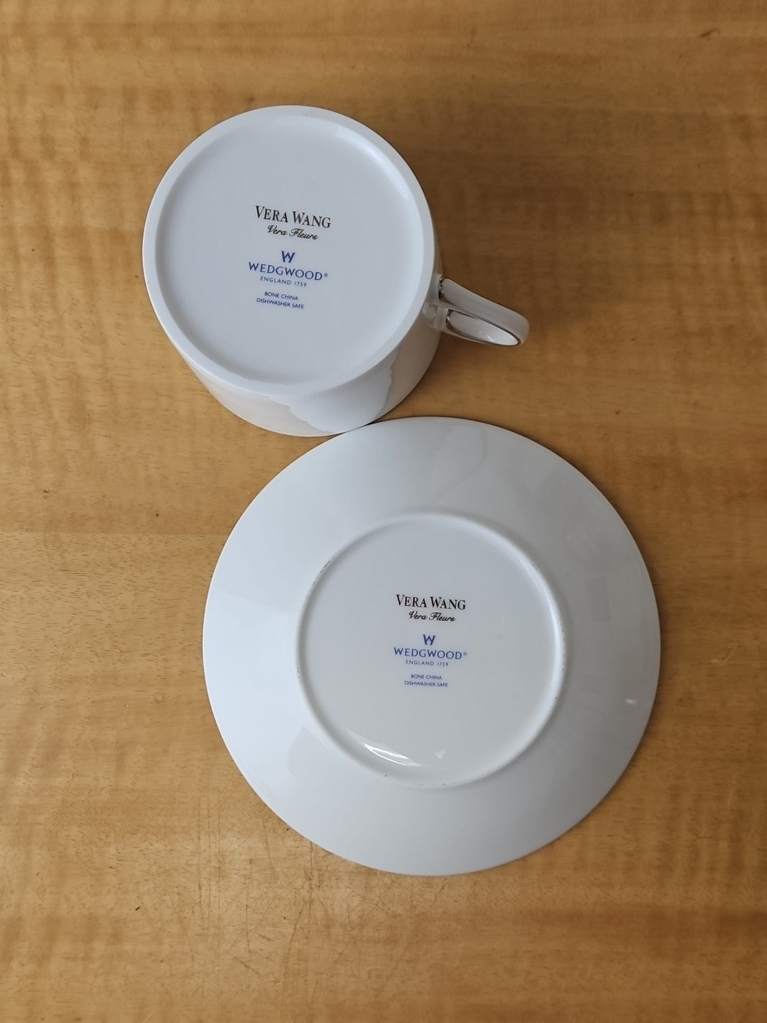 Wedgwood Vera Wang VERA FLEURS Platinum Bone China CUP AND SAUCER (10 avail