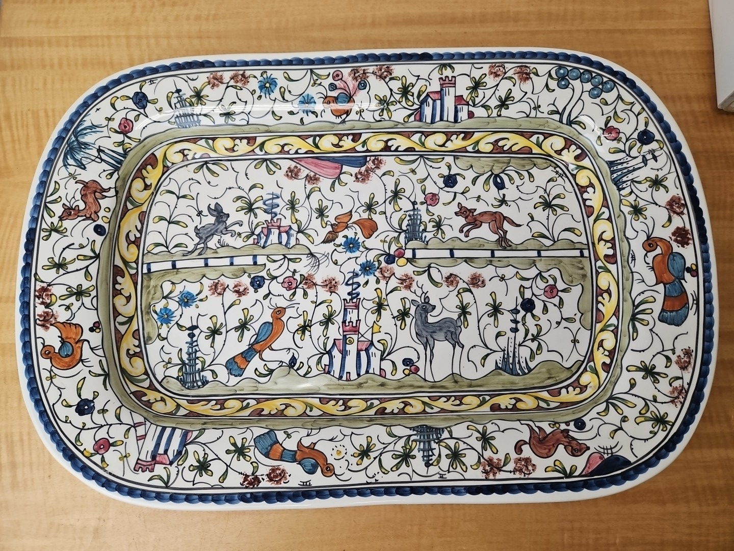 Williams Sonoma Deep Turkey Platter Nazari Portugal Hand Painted 23-1/8 x 15-1/2