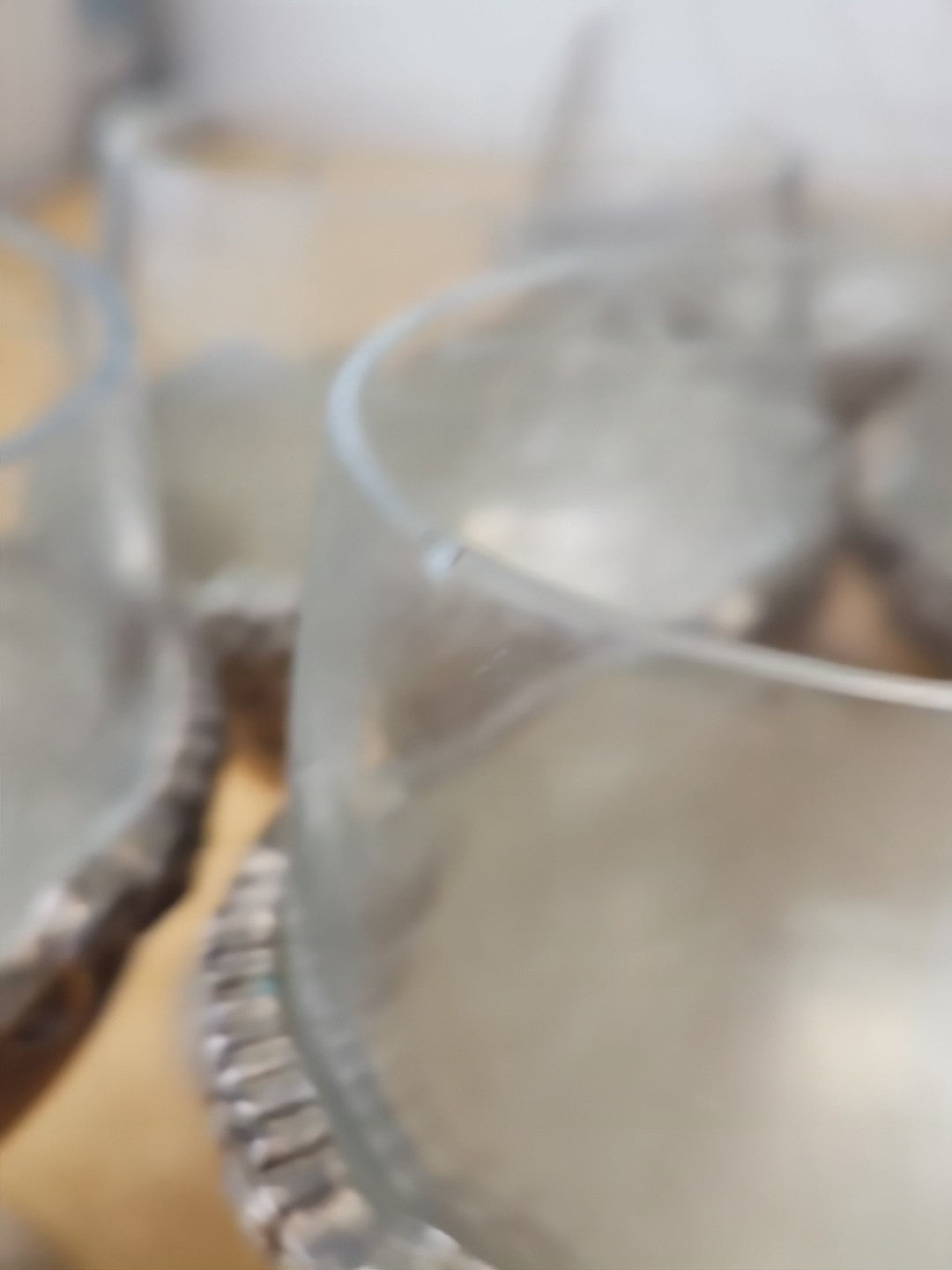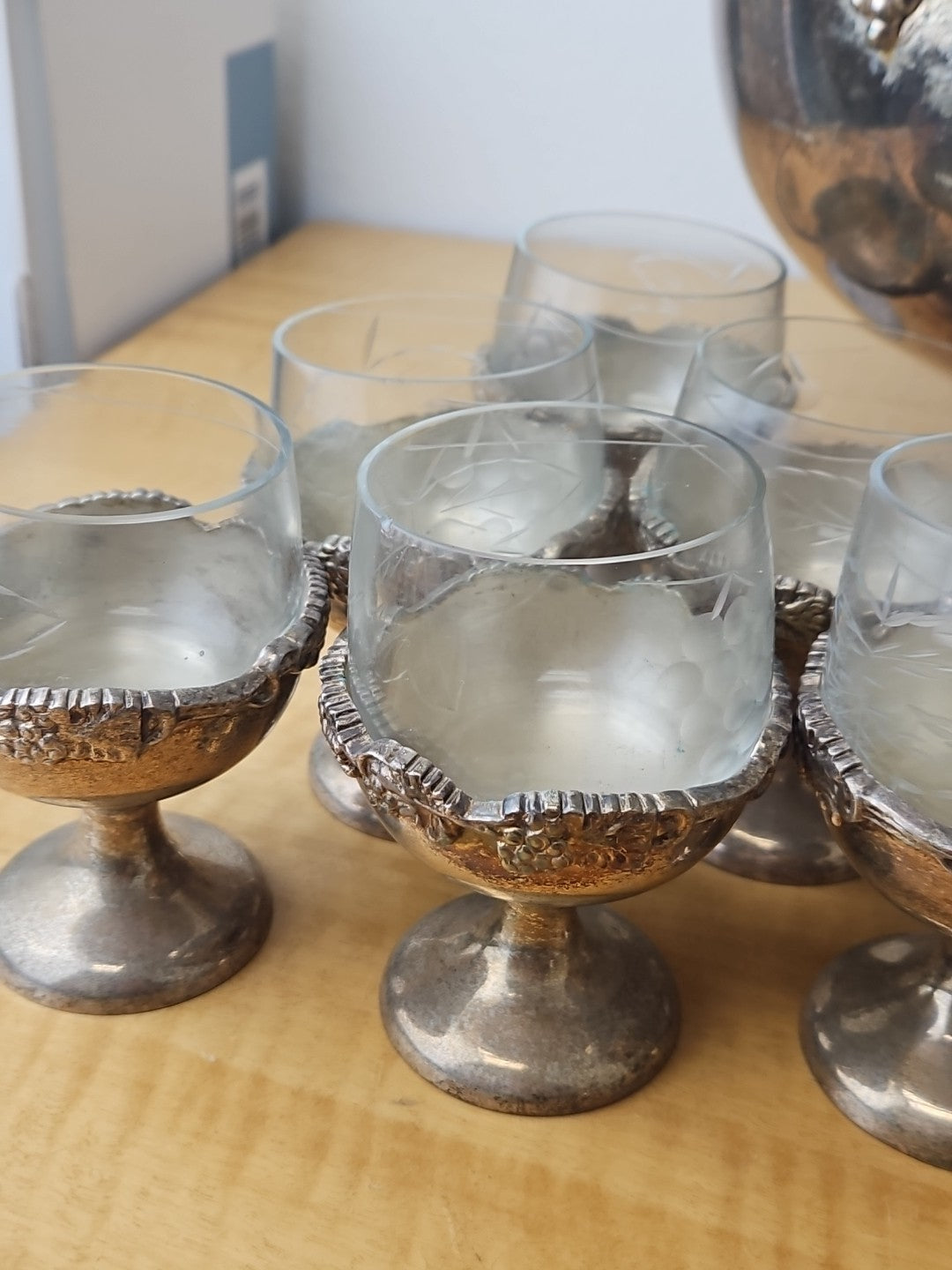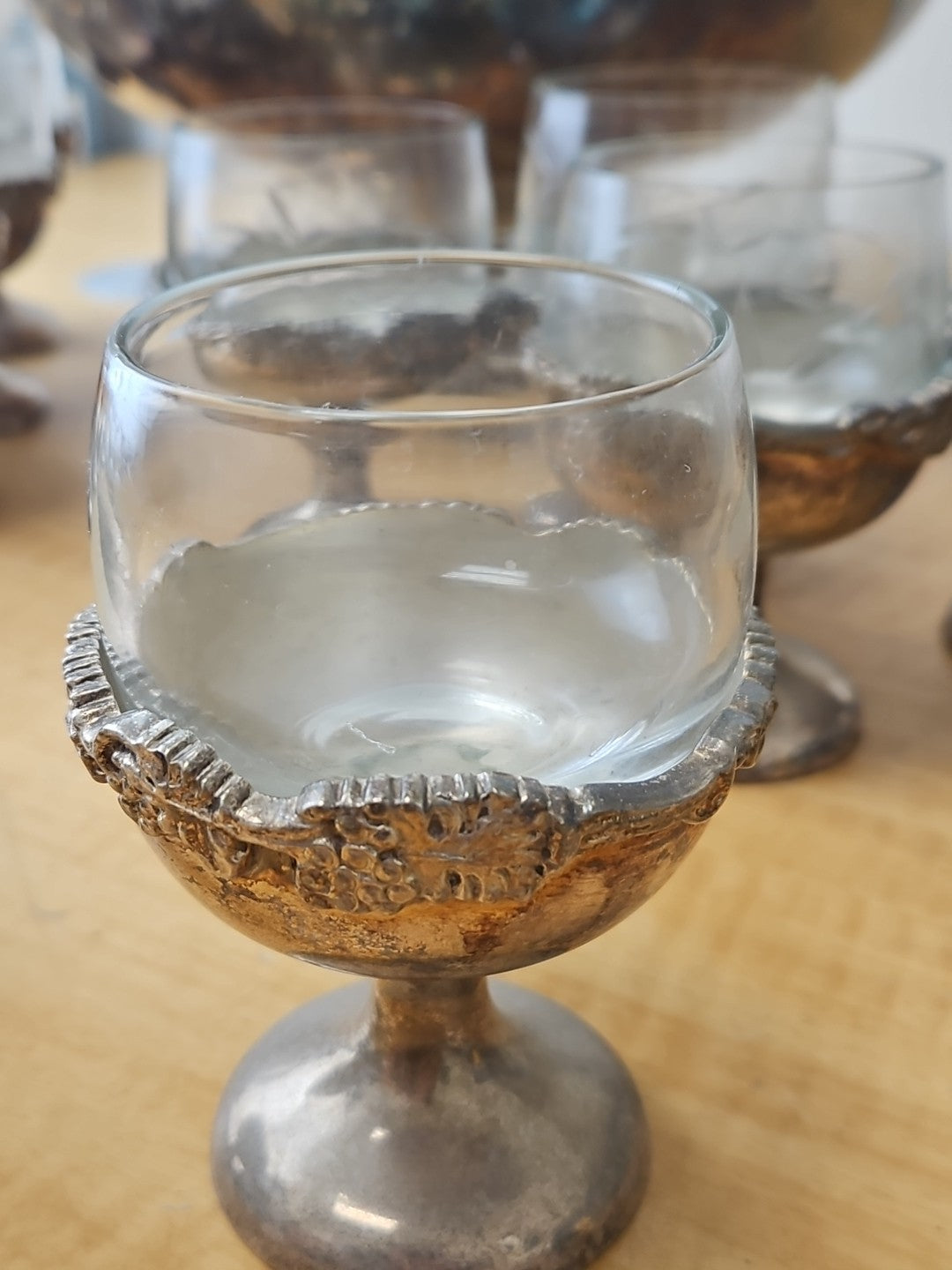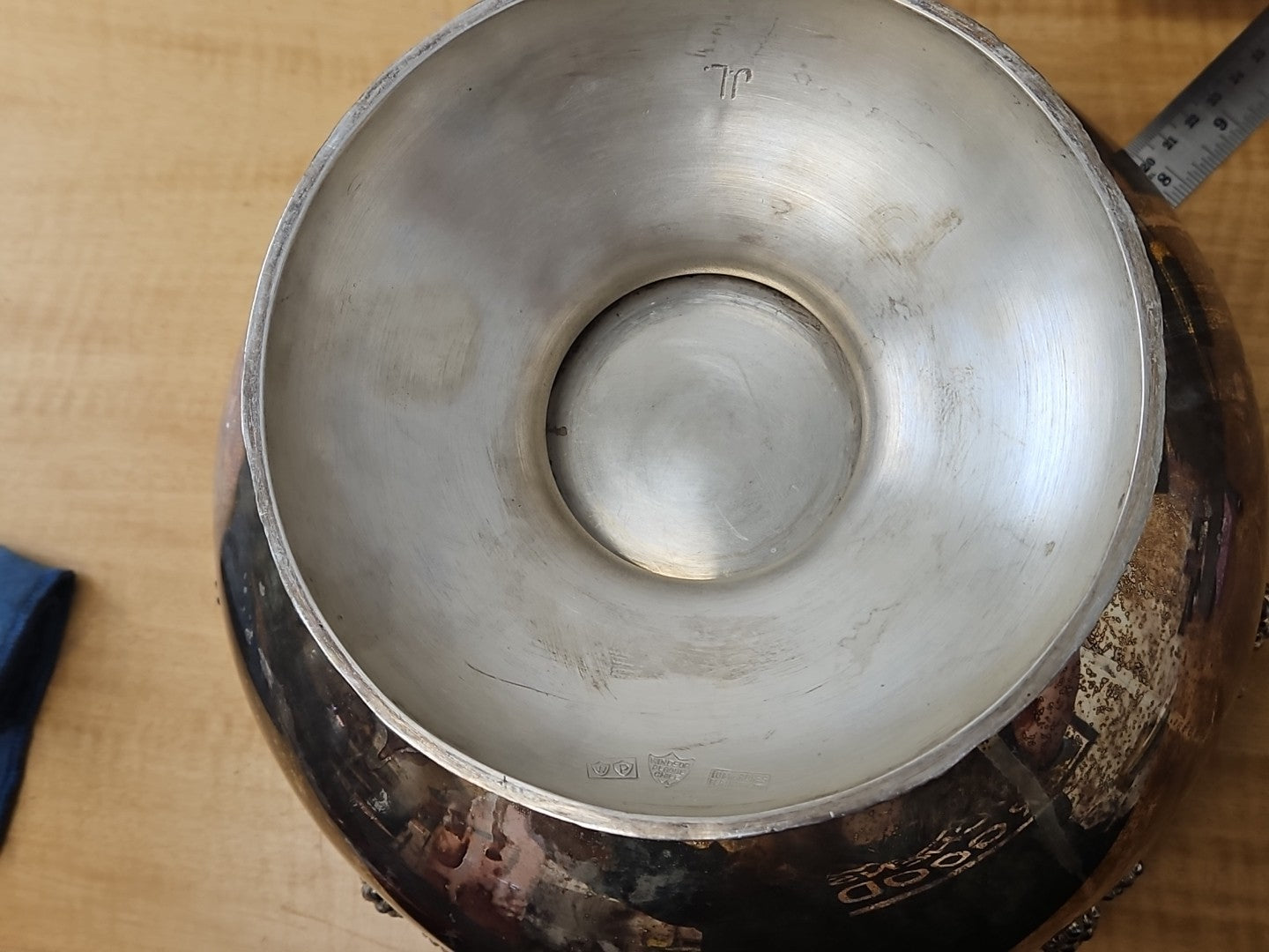 Condition Description: needs polishing, 1 cup not original, 1 cup has a tiny chip in the rim.