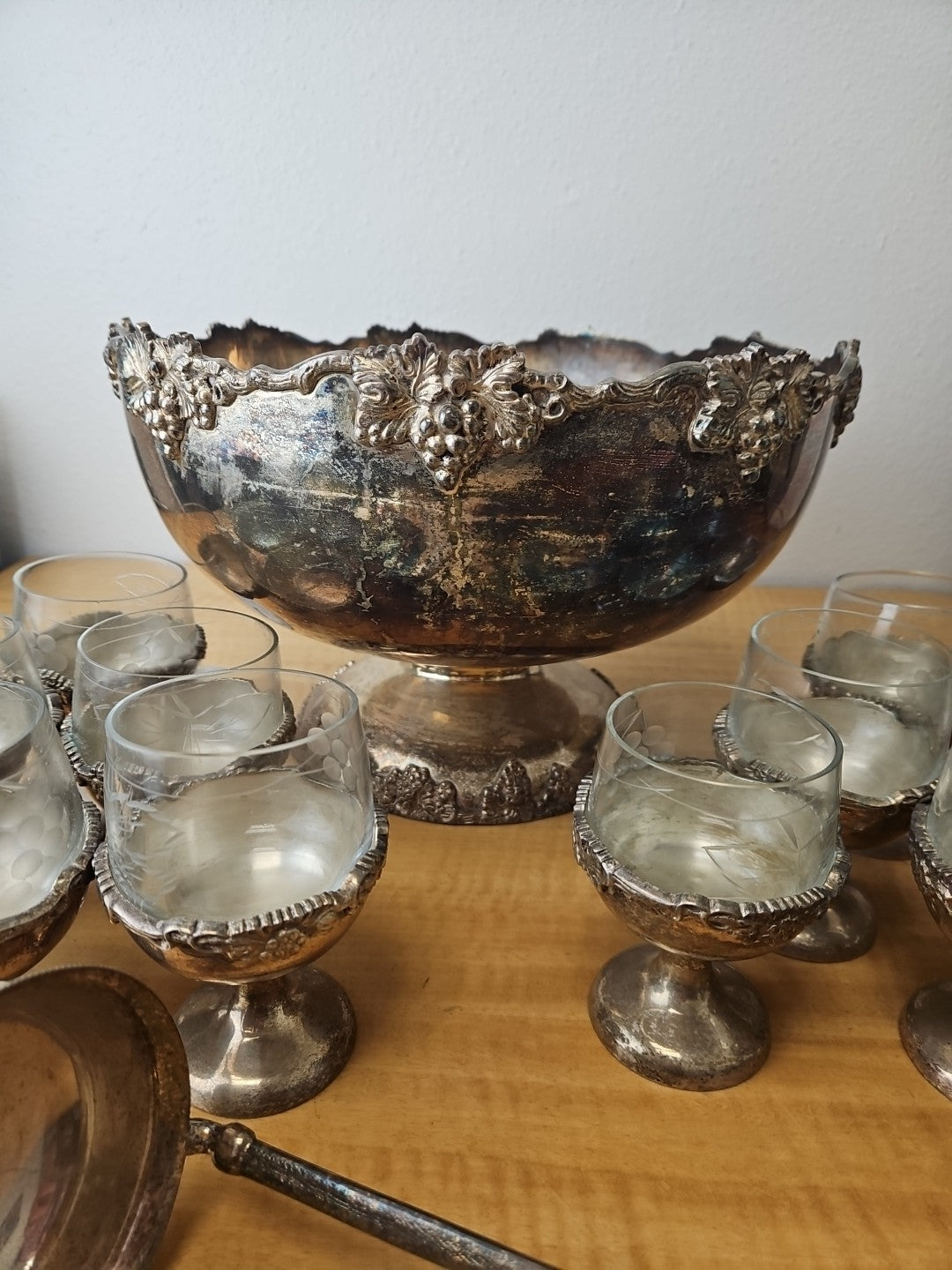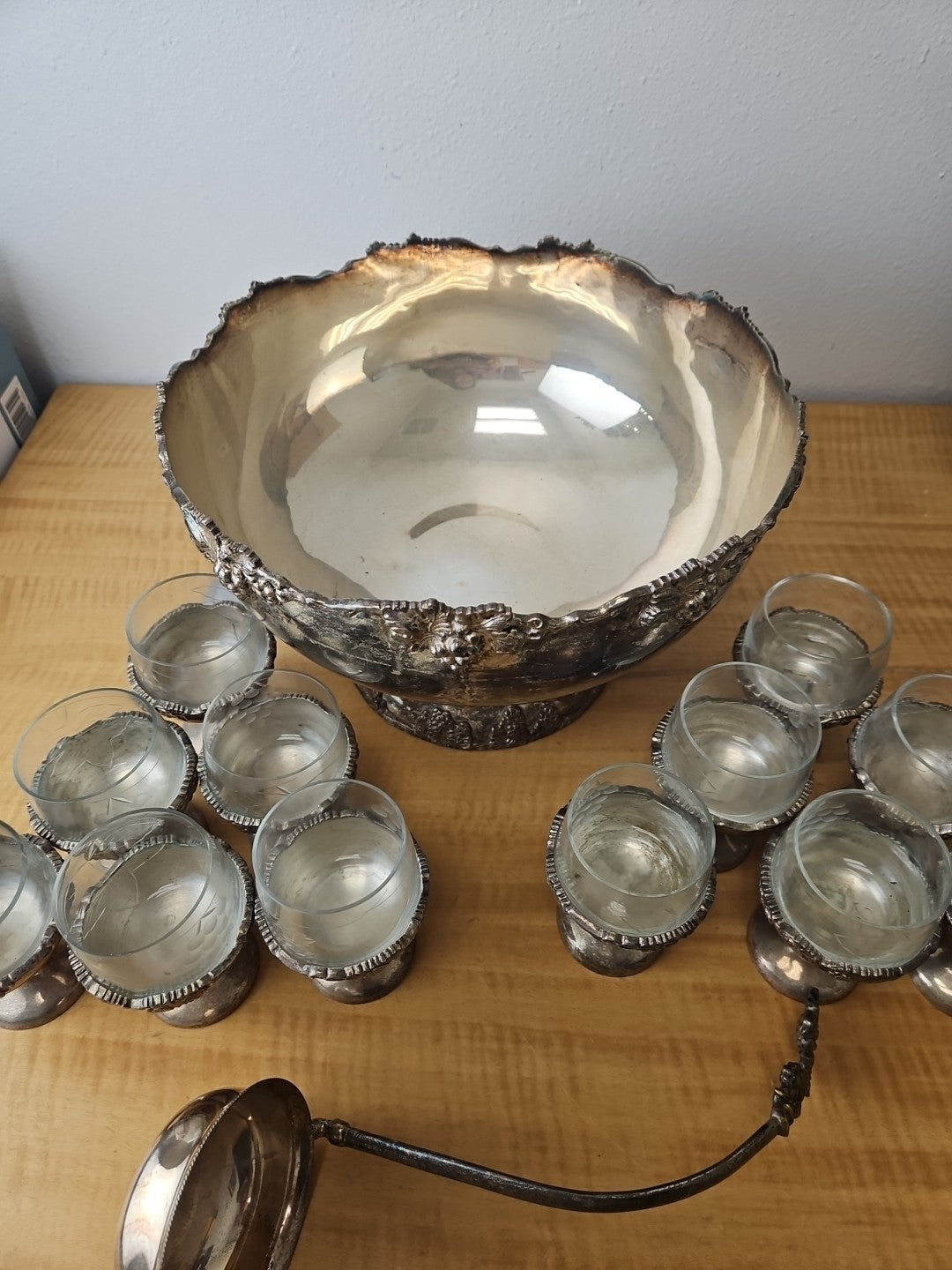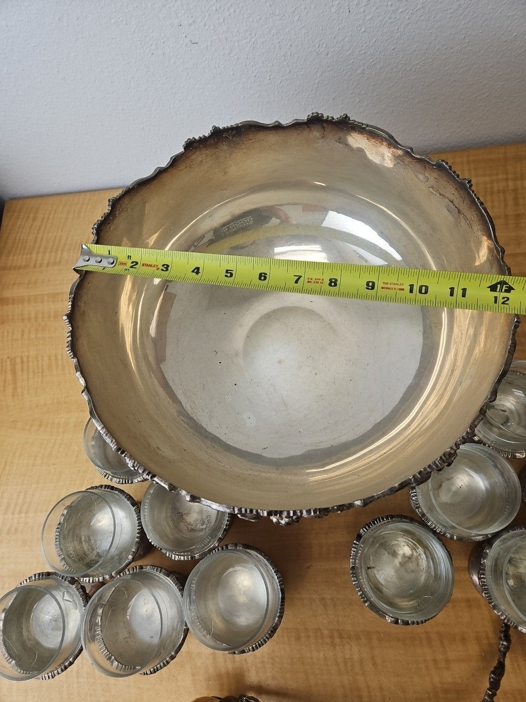 Windsor Plaque Chile Silver Plated Punch Bowl set with 12 Cups and ladle