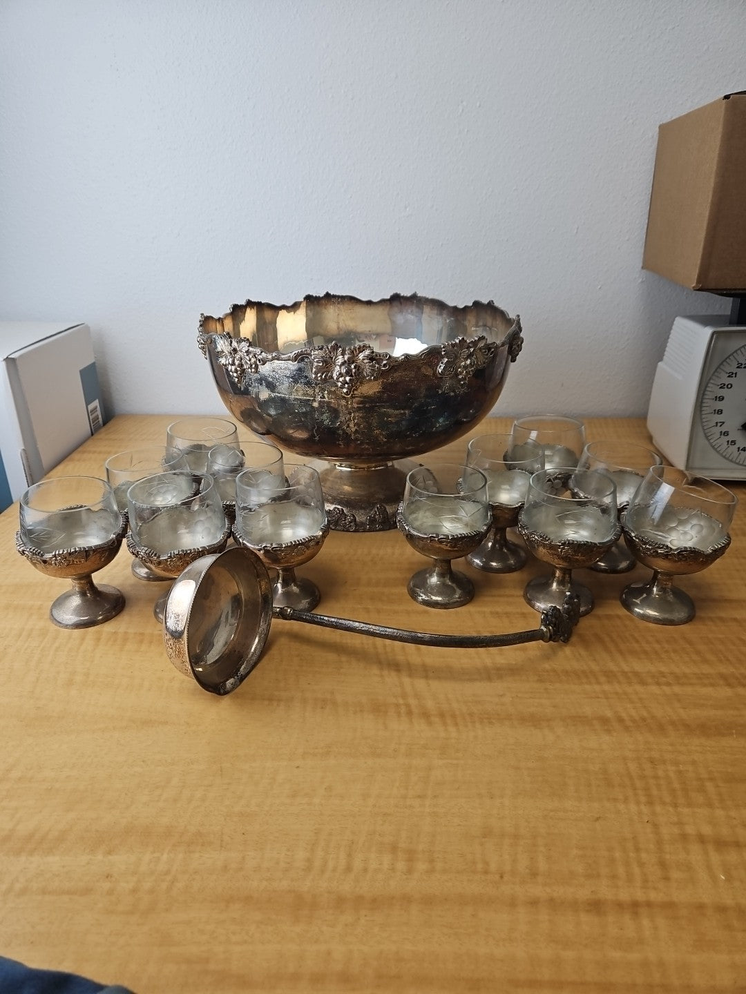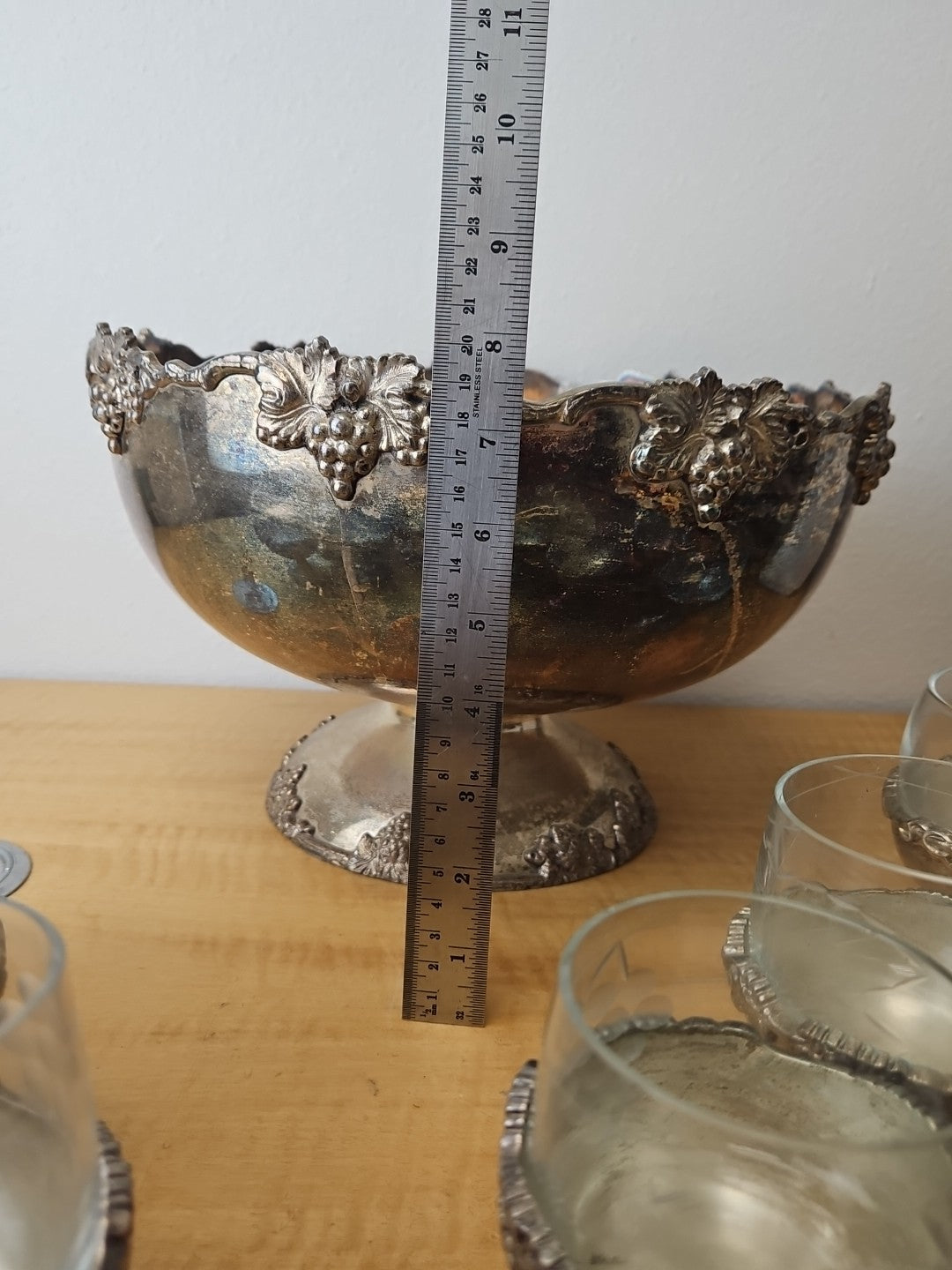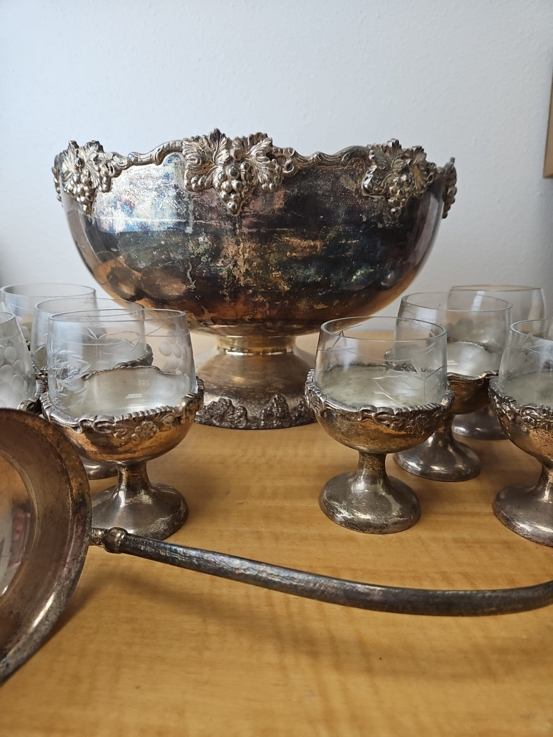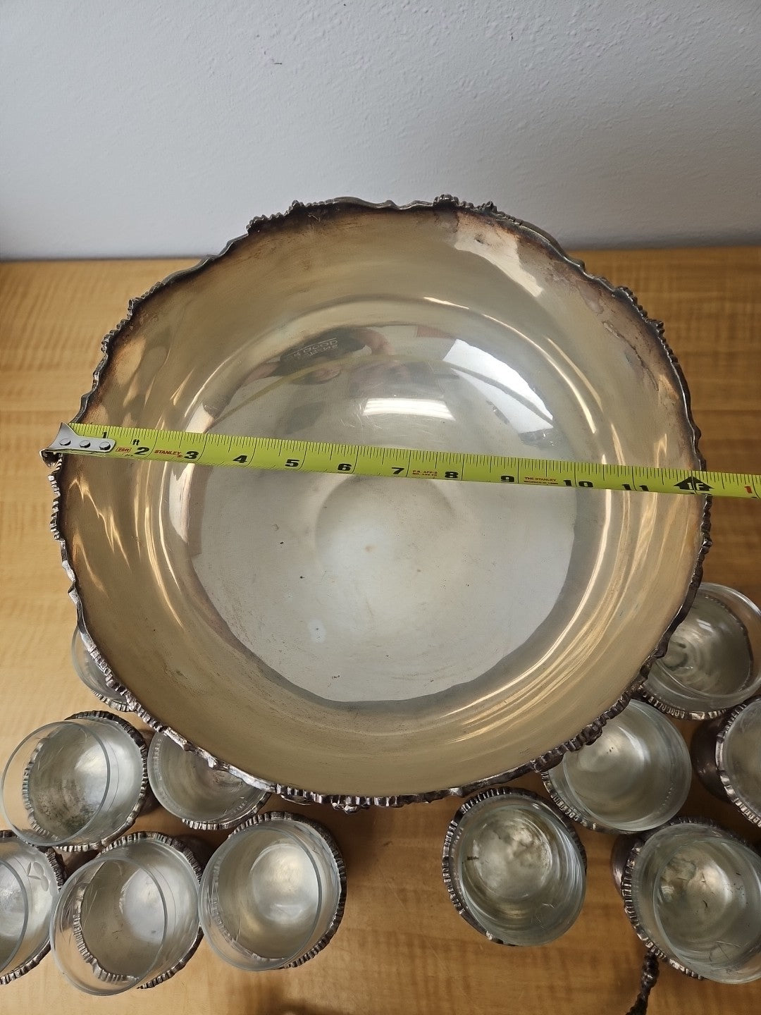 Windsor Plaque Chile Silver Plated Punch Bowl set with 12 Cups and ladle