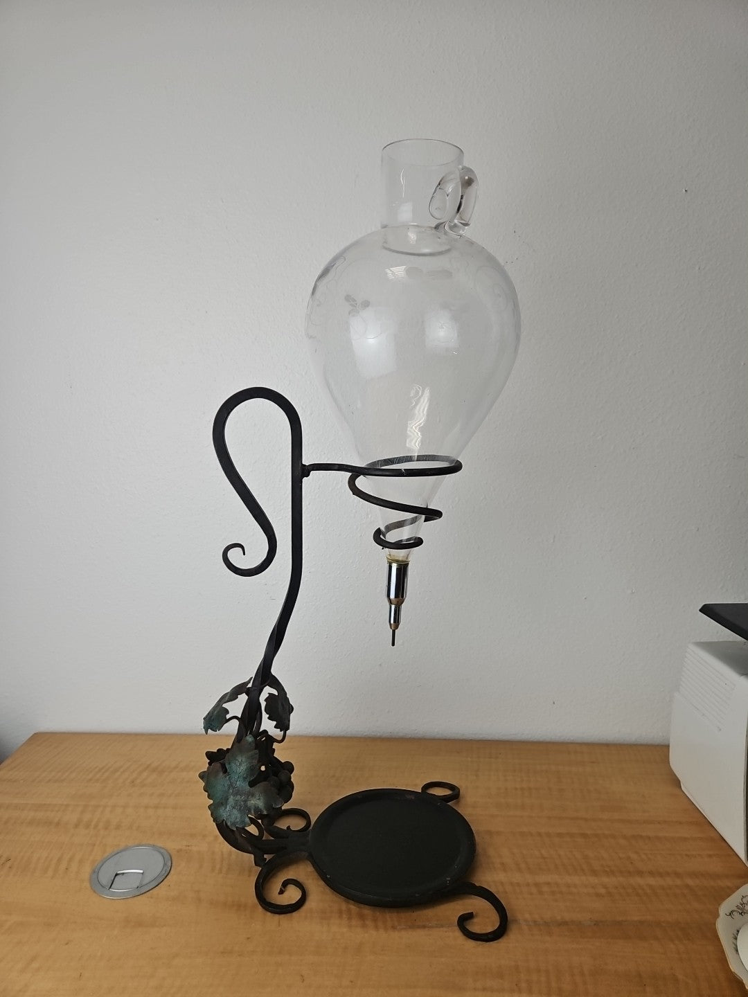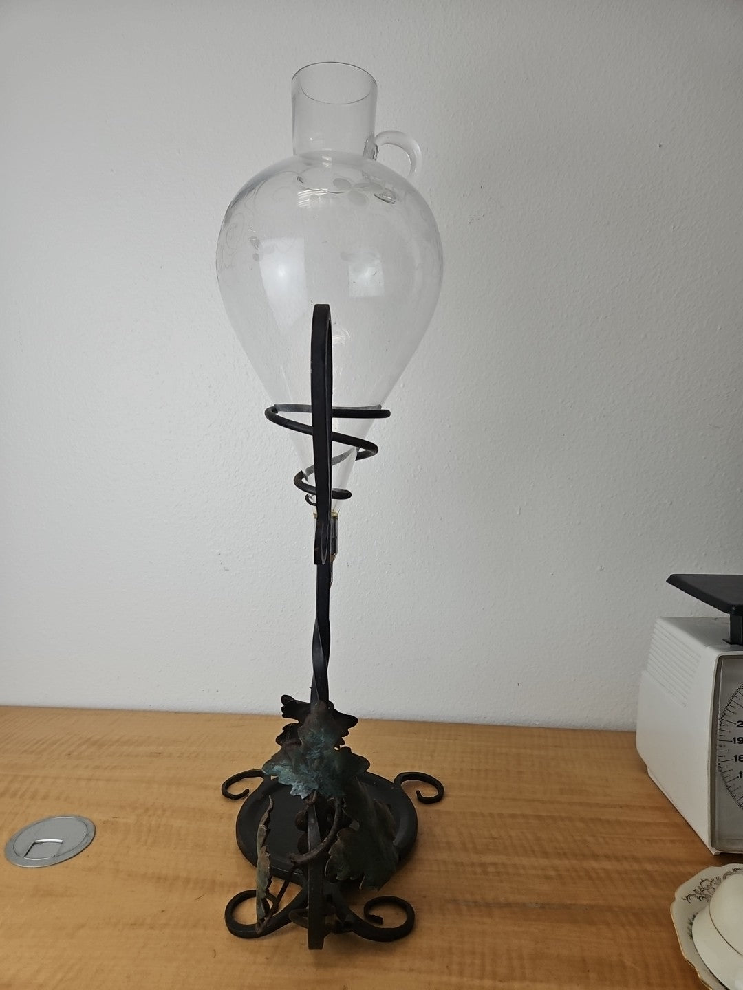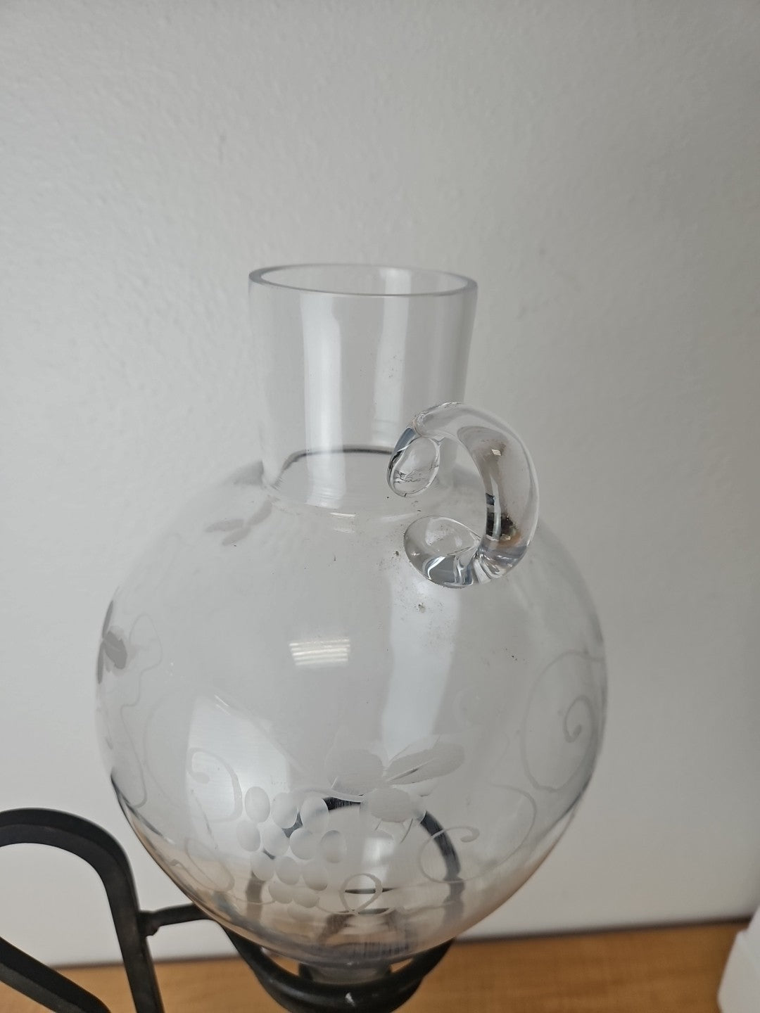 Wine Aerator Decanter Dispenser Glass Wrought Iron etched Austria 24 3/4 in