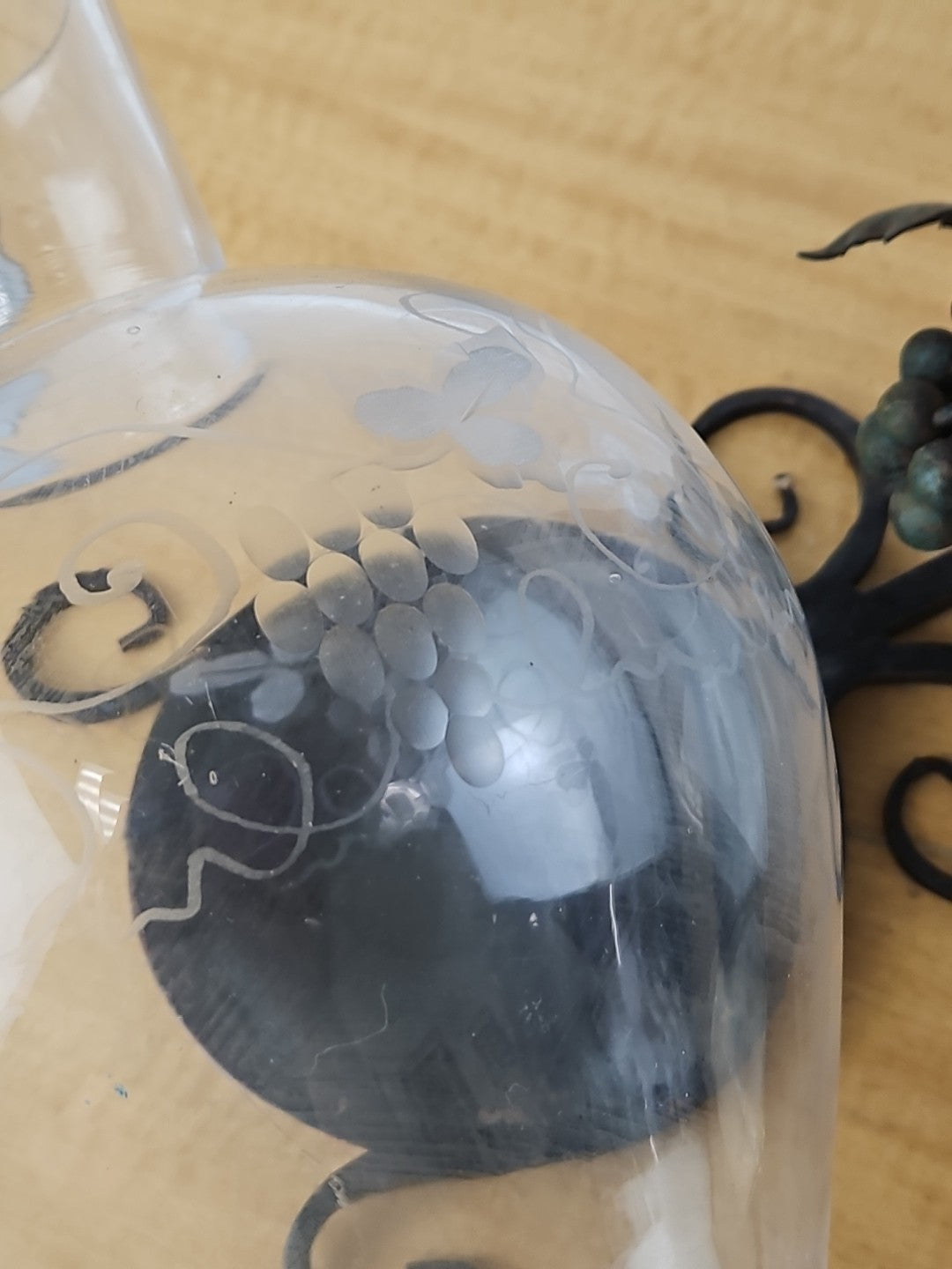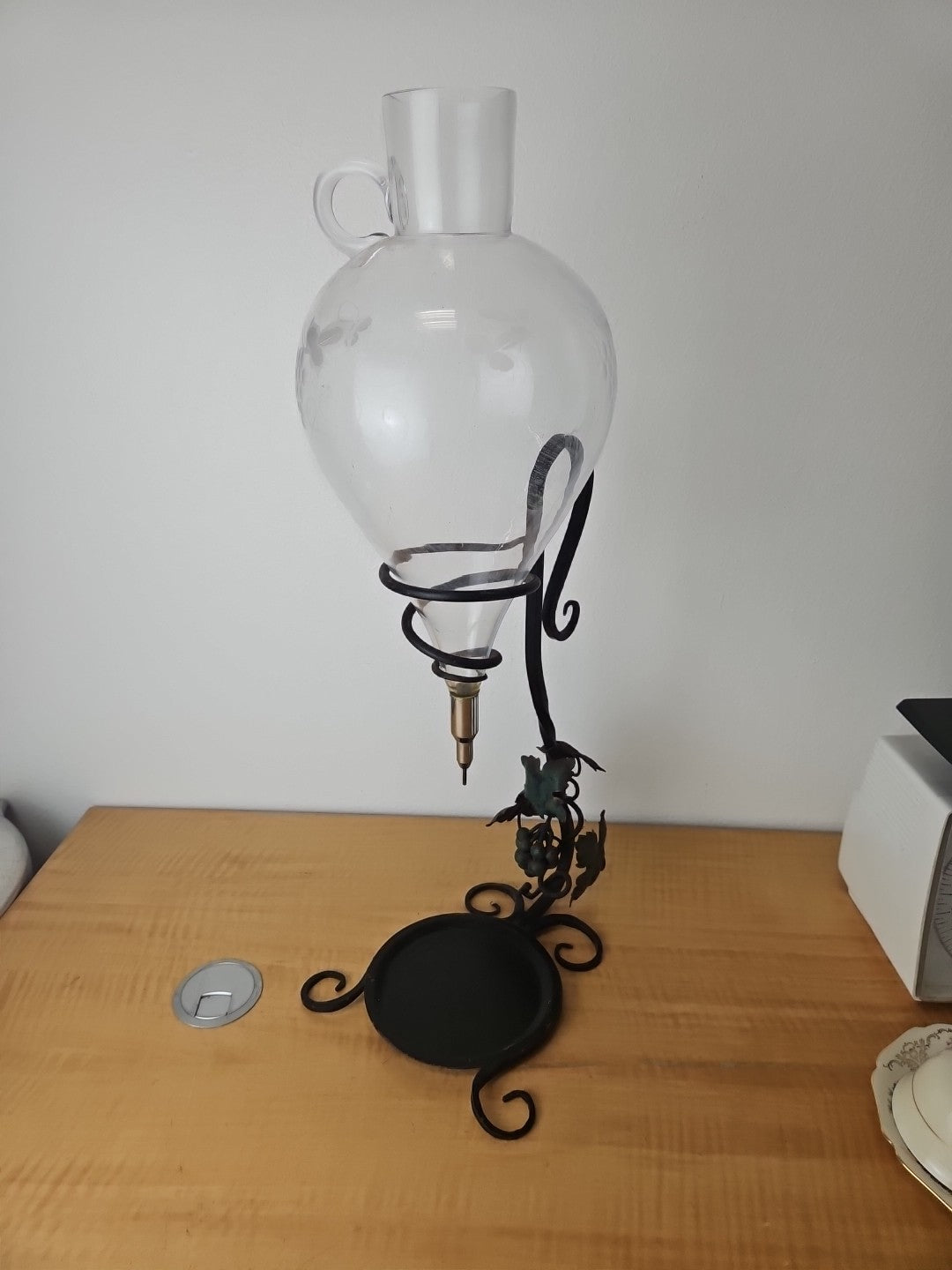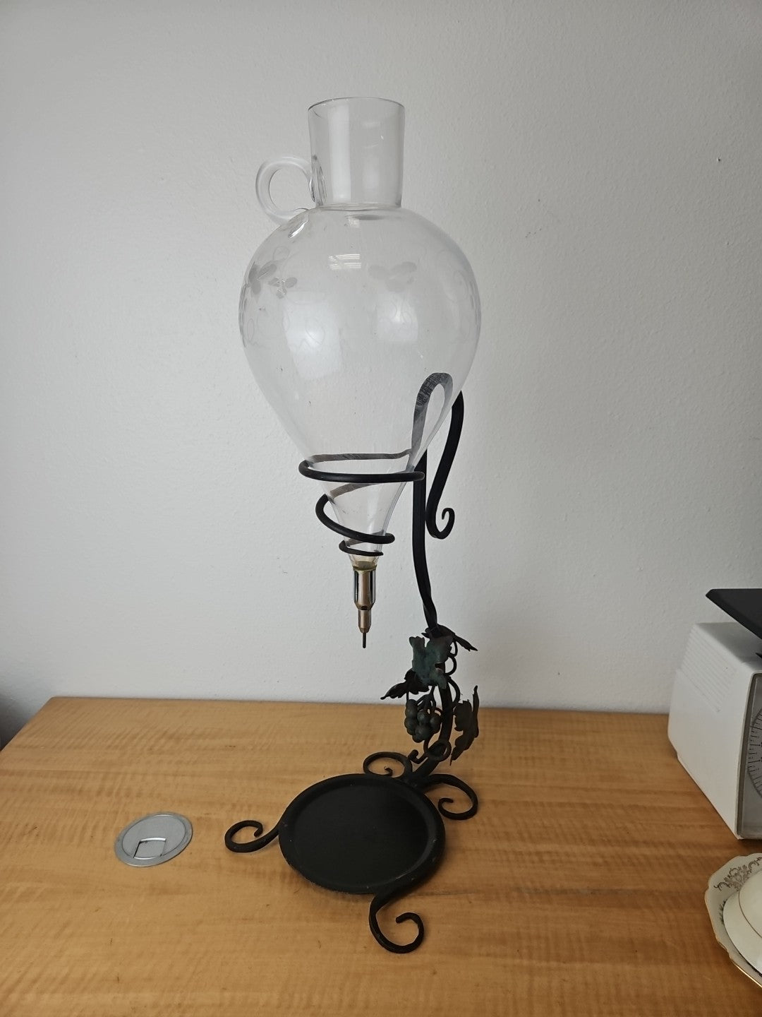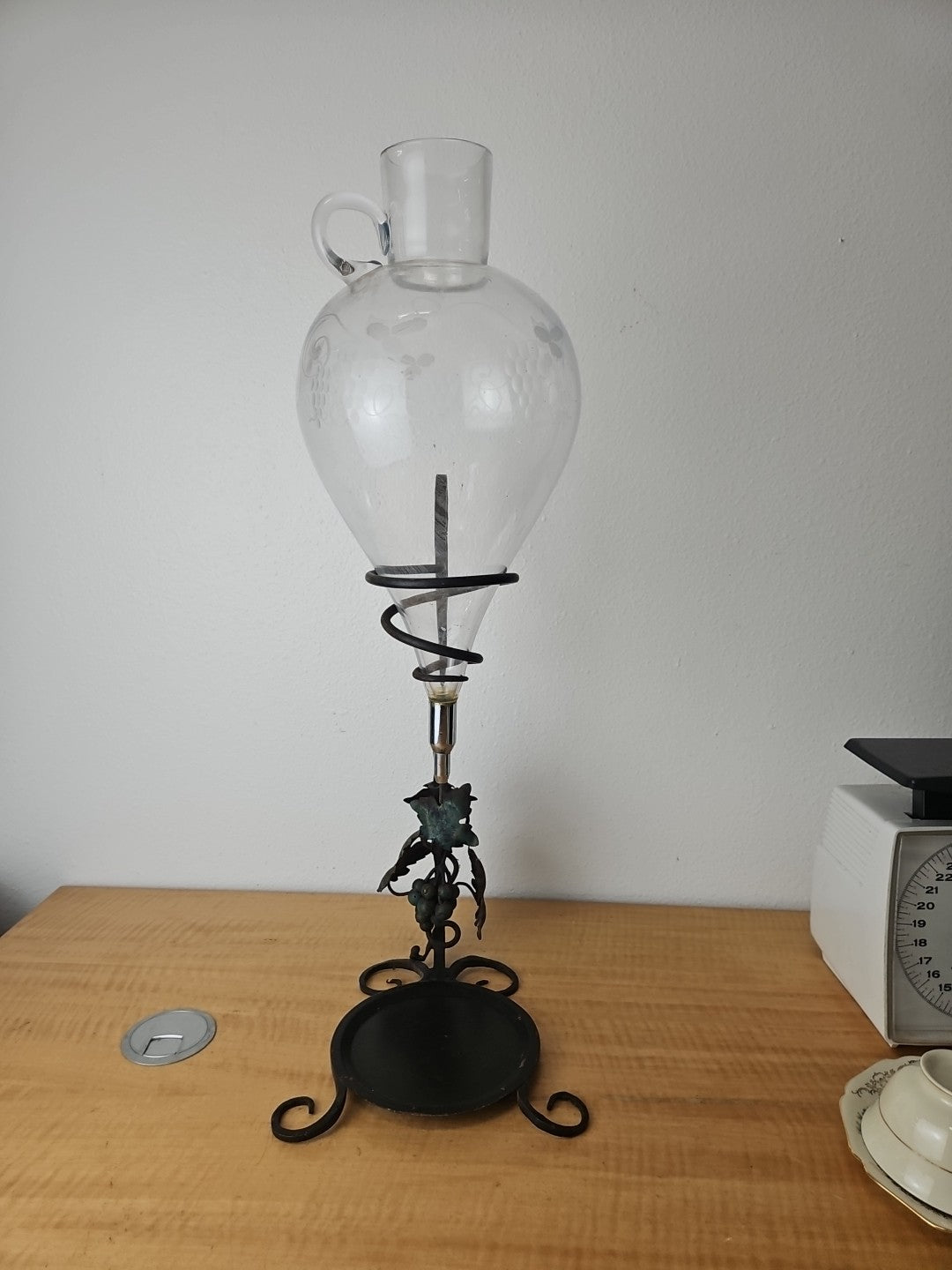Wine Aerator Decanter Dispenser Glass Wrought Iron etched Austria 24 3/4 in