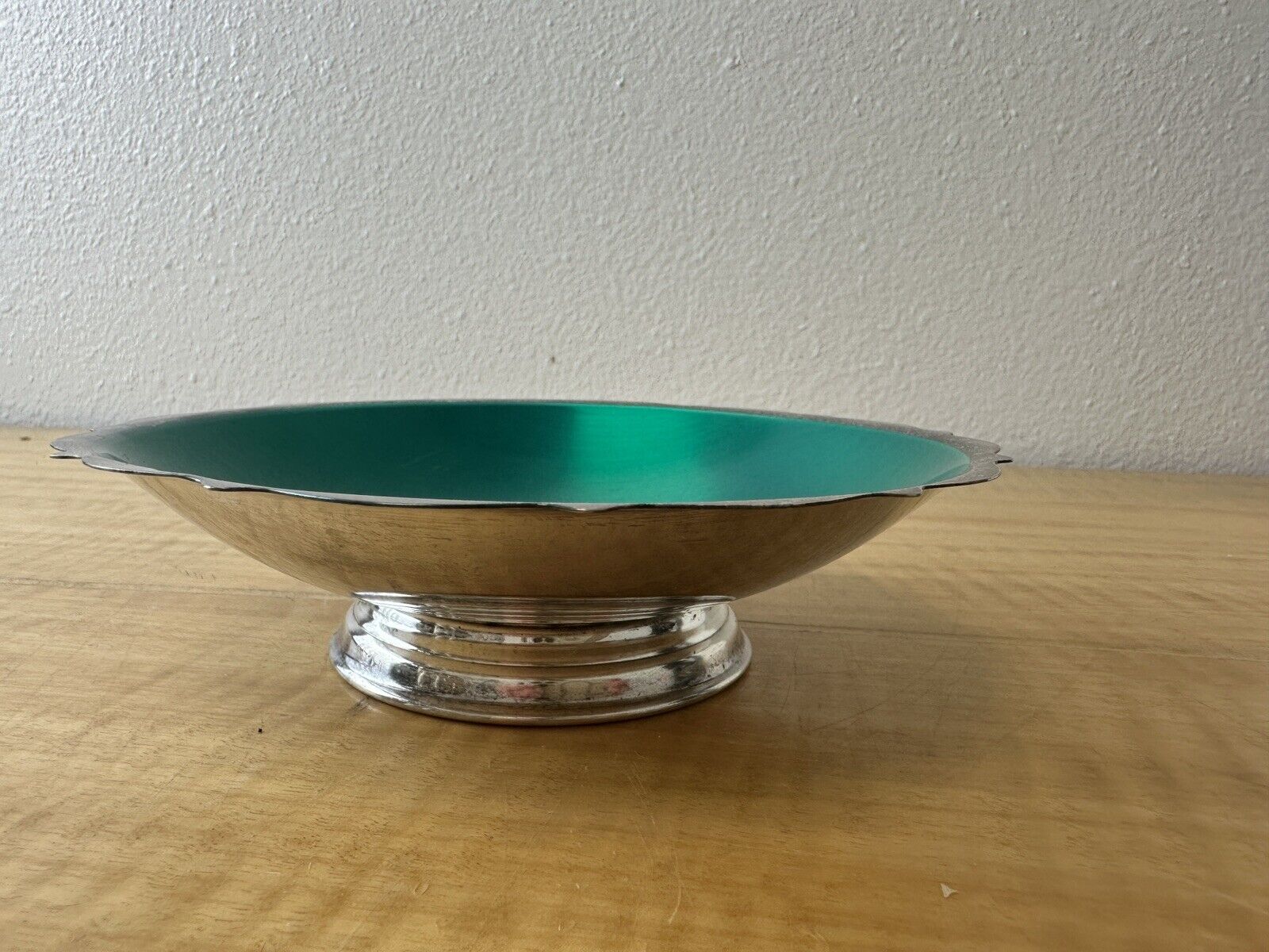 Wm. A. Rogers MID-CENTURY silver plate green enamel compote CANDY DISH BOWL