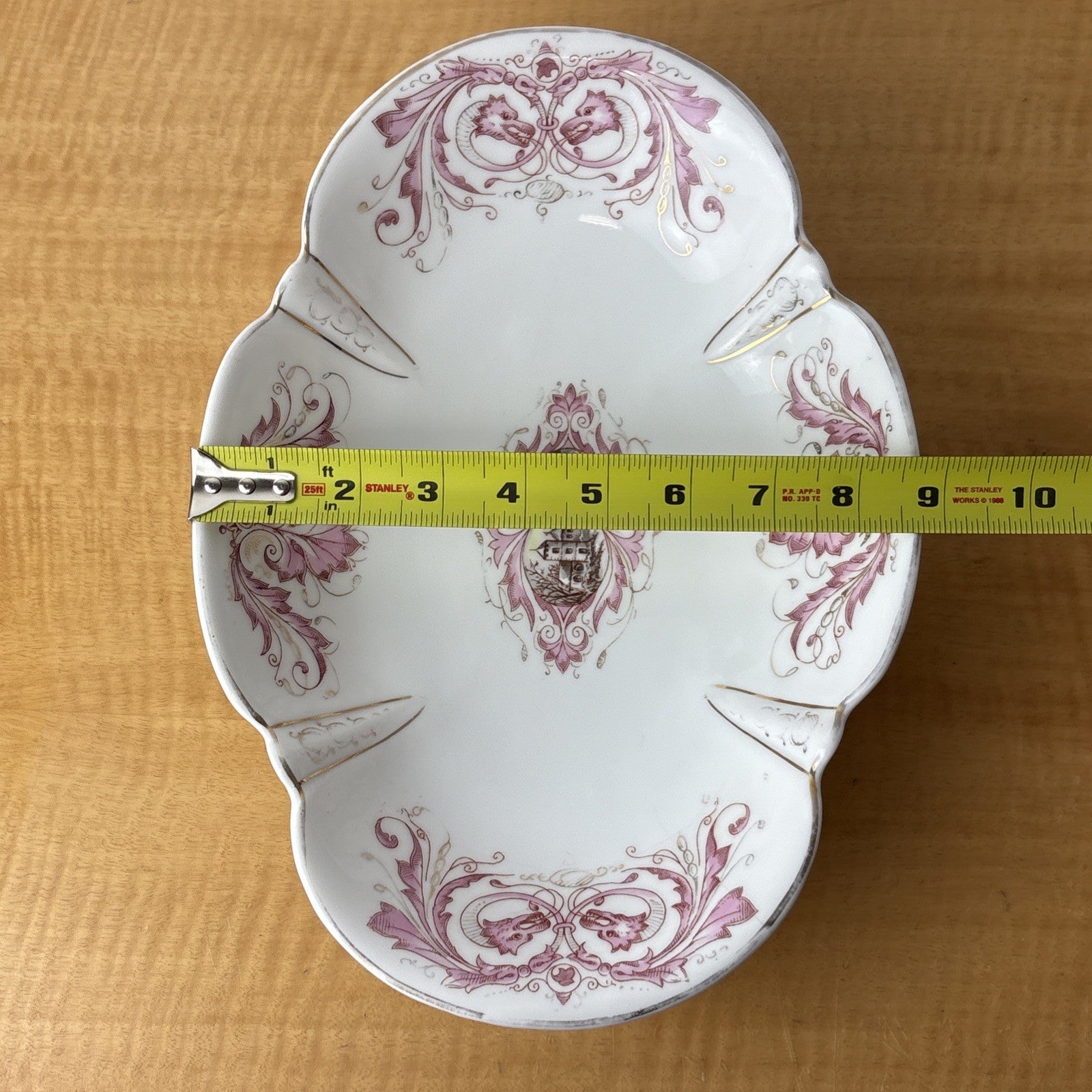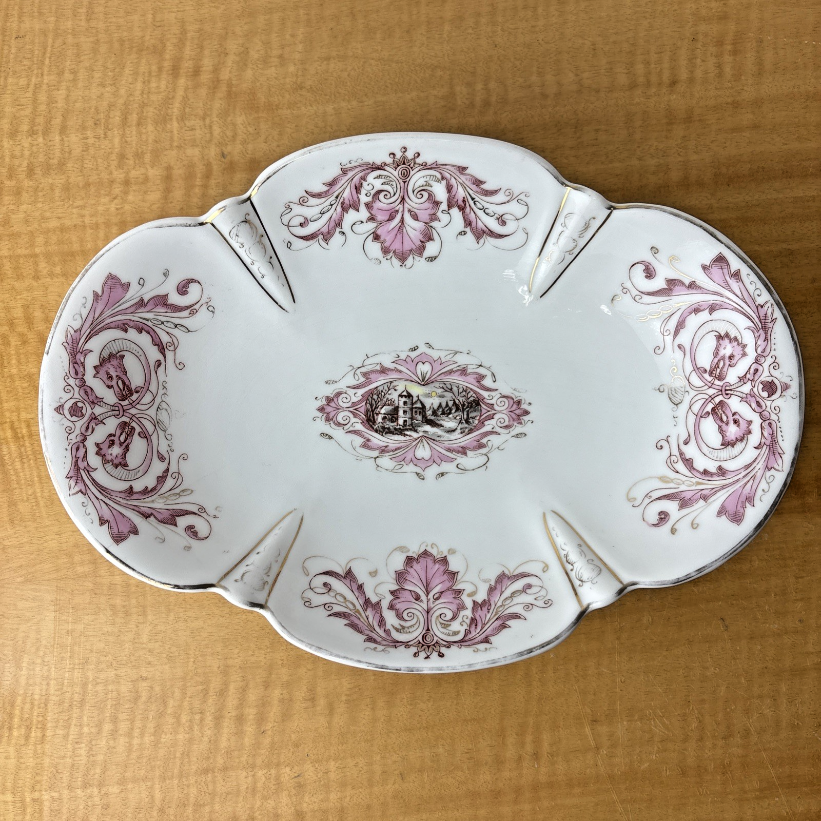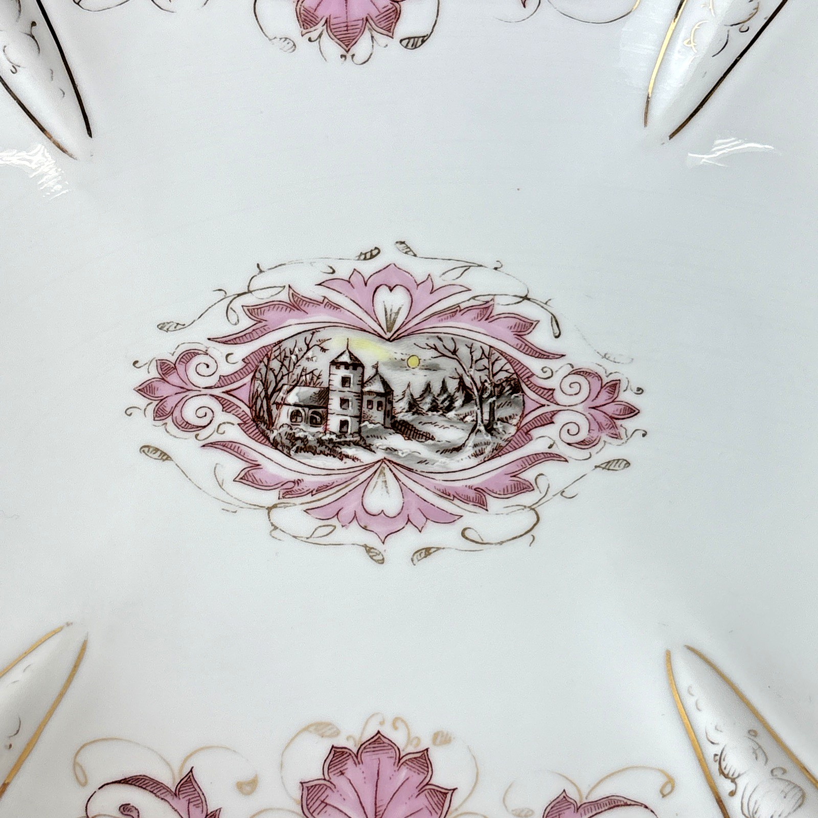 Zeh Scherzer Hand Painted Winter Castle Dragons Vegetable Dish Circa 1882-1921