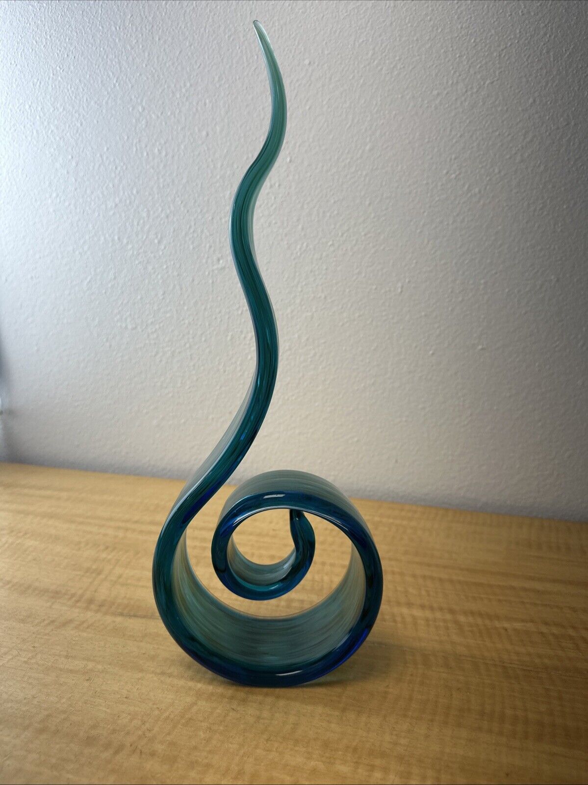 Vintage Murano Style Green and Blue Swirl Art Glass with Unique Pattern