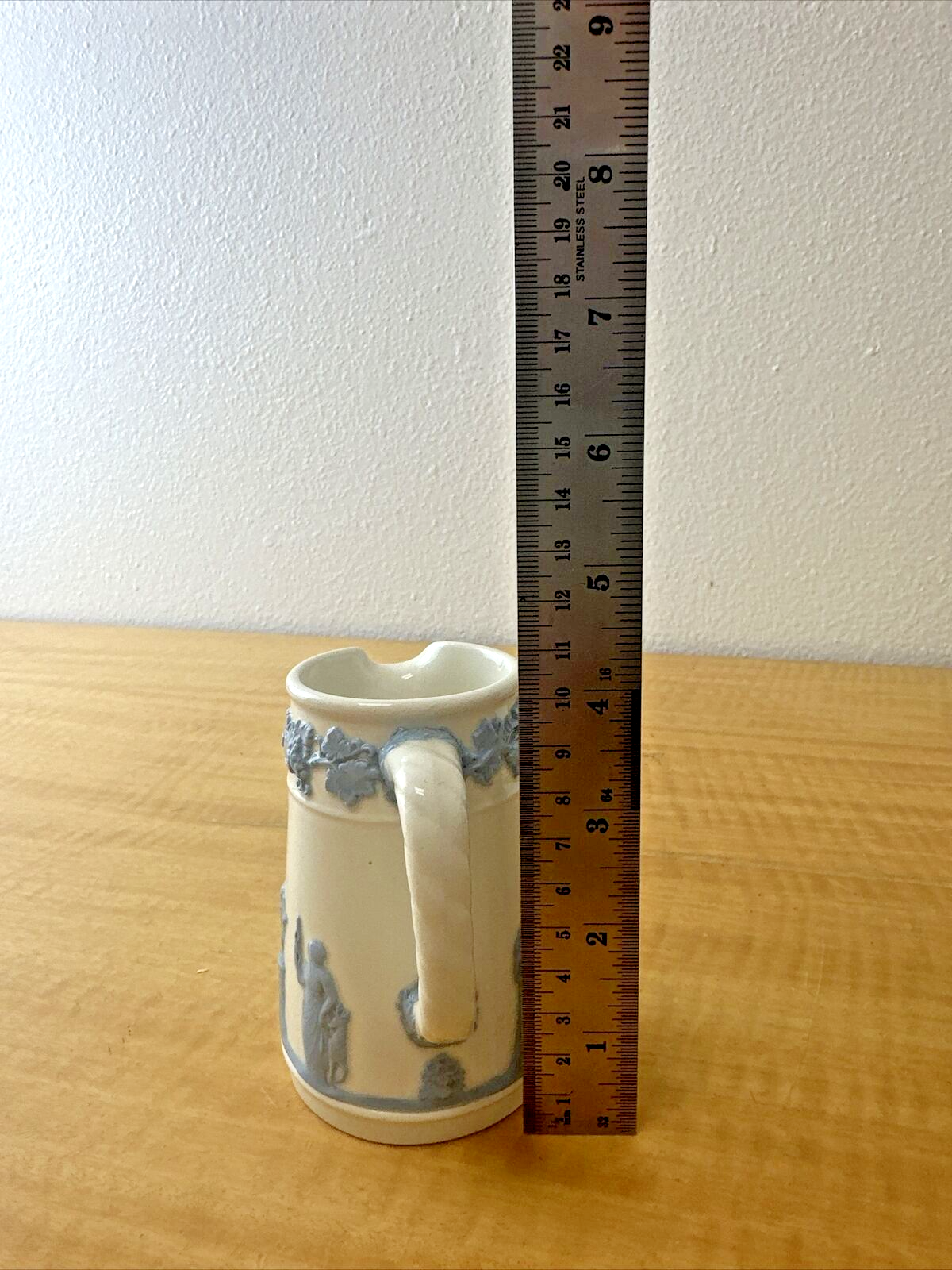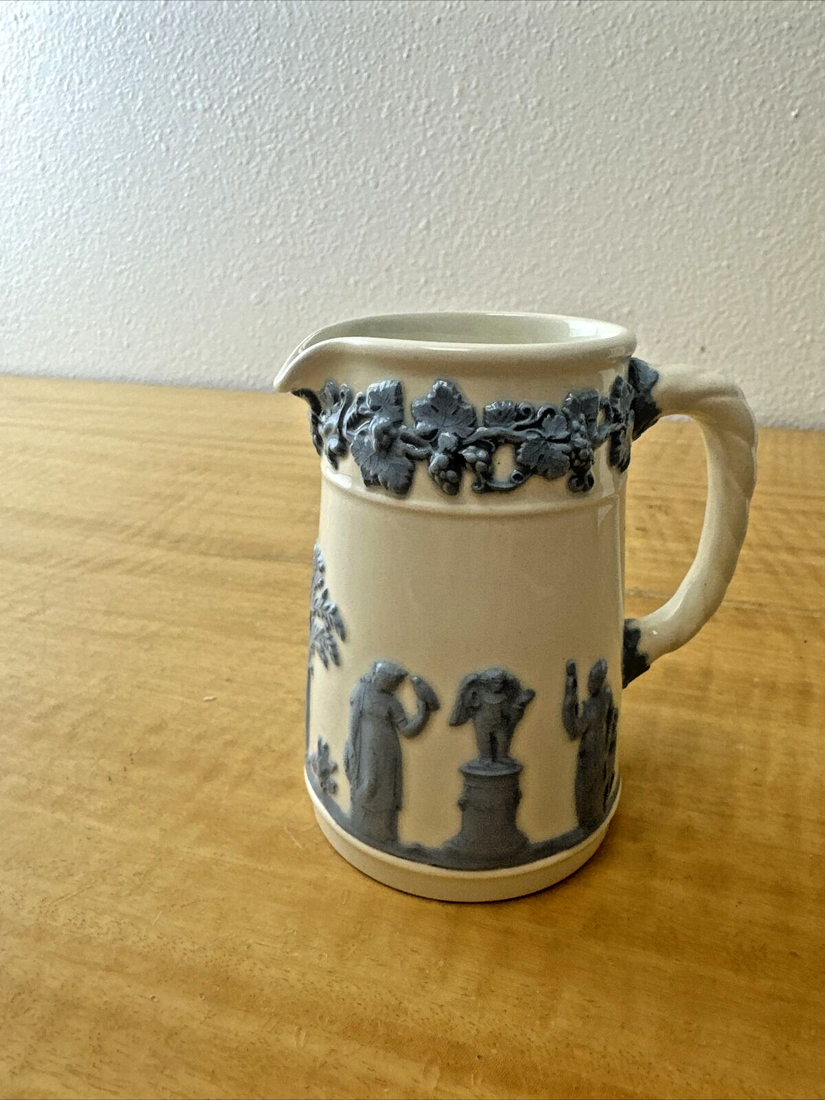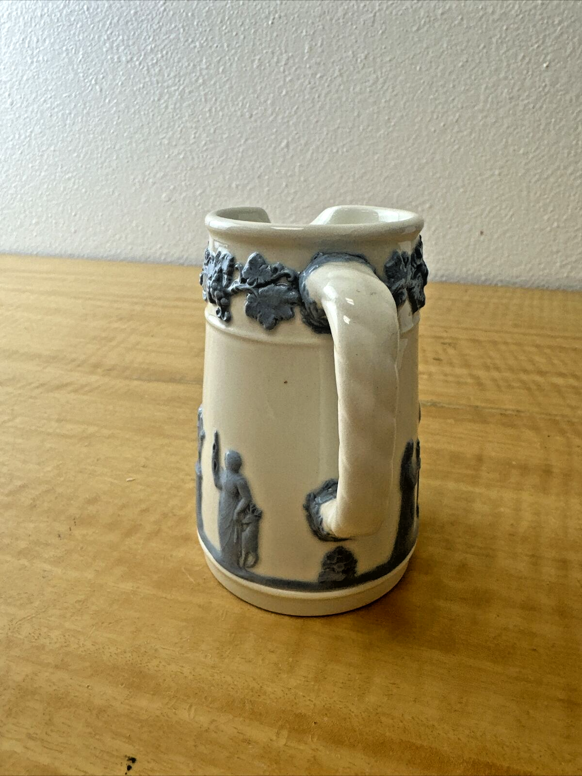 Wedgwood Miniature Queen's Ware Blue on White Embossed Pitcher