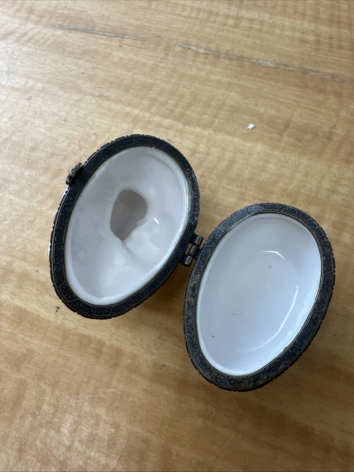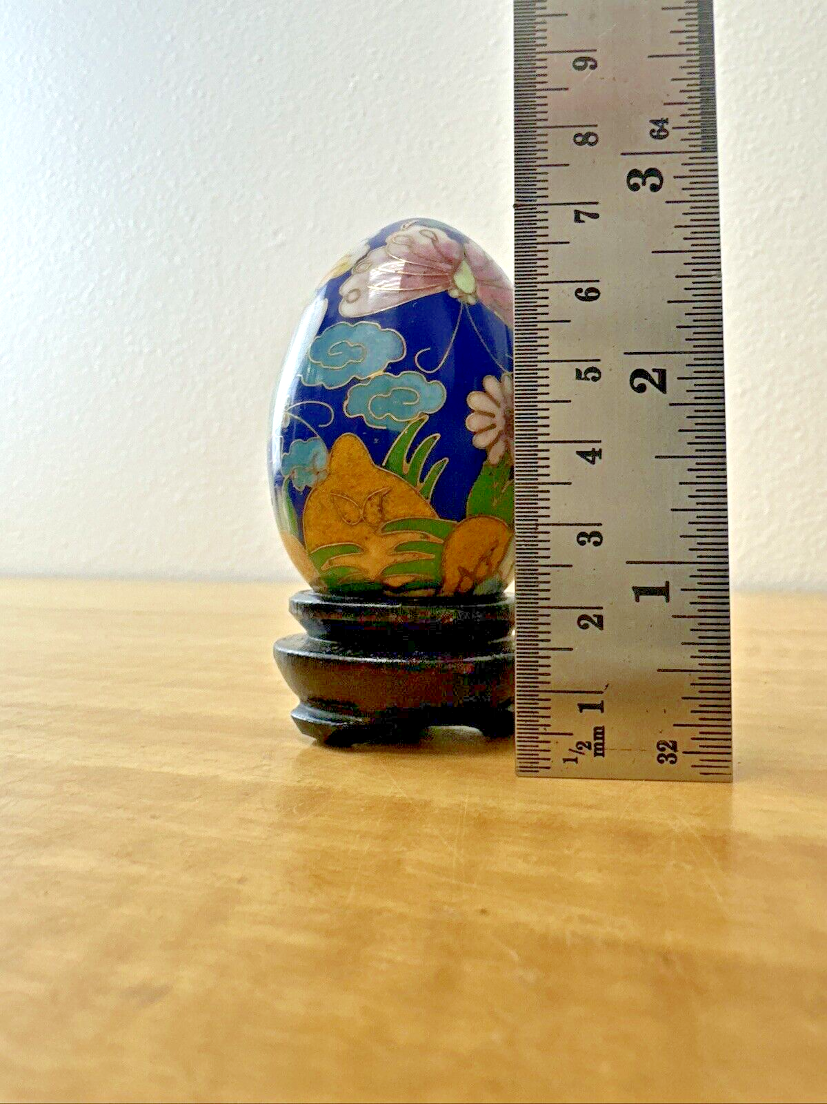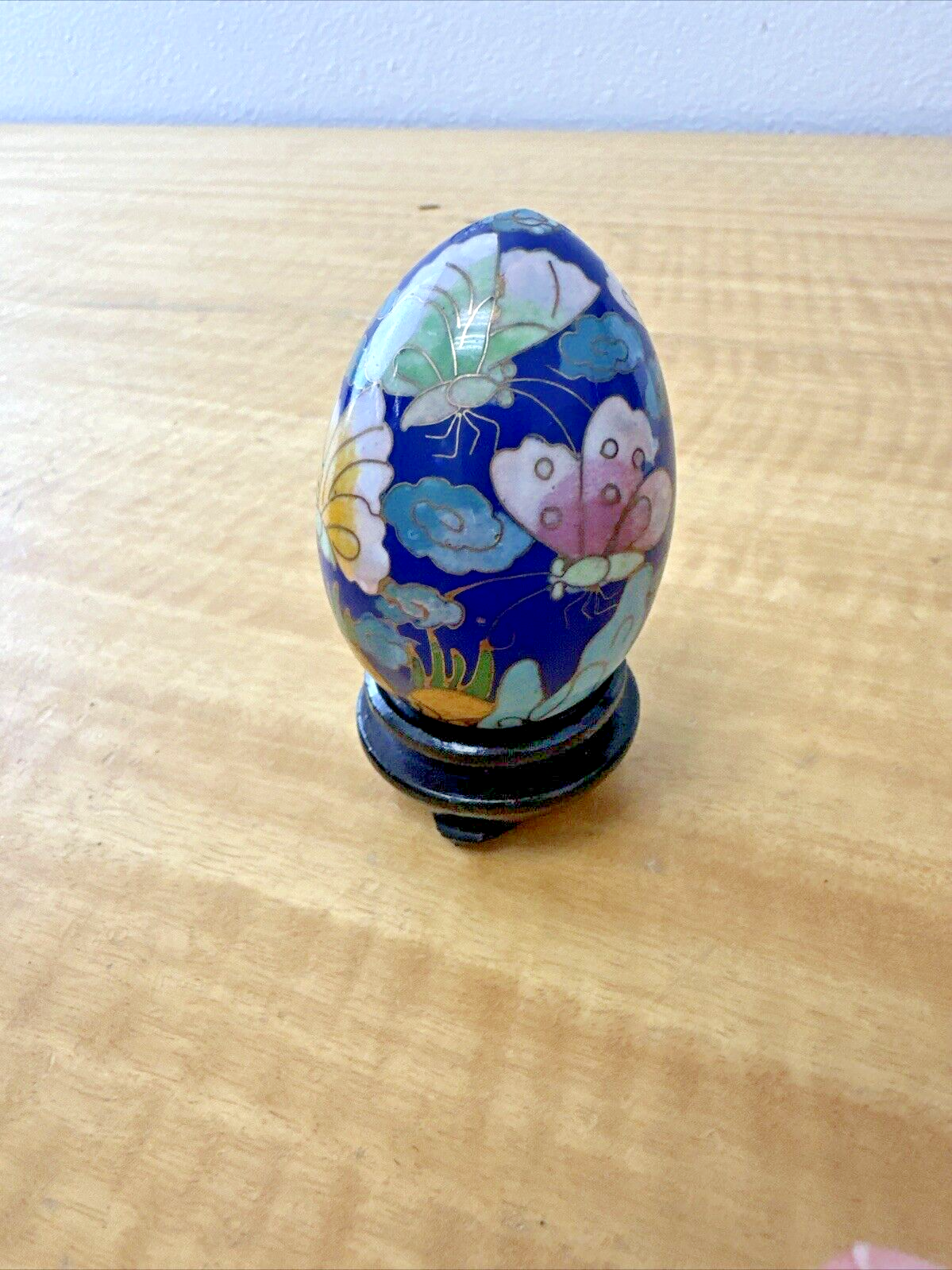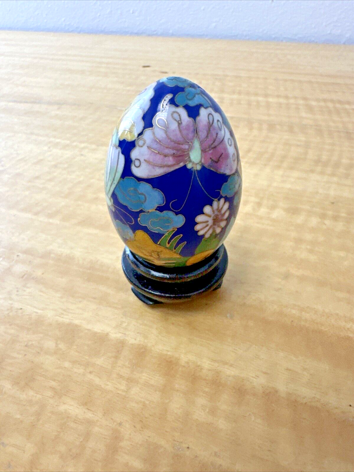 Small Cloisonne Enamel Egg with Wooden Stand, 3”Tall, Butterfly Pattern