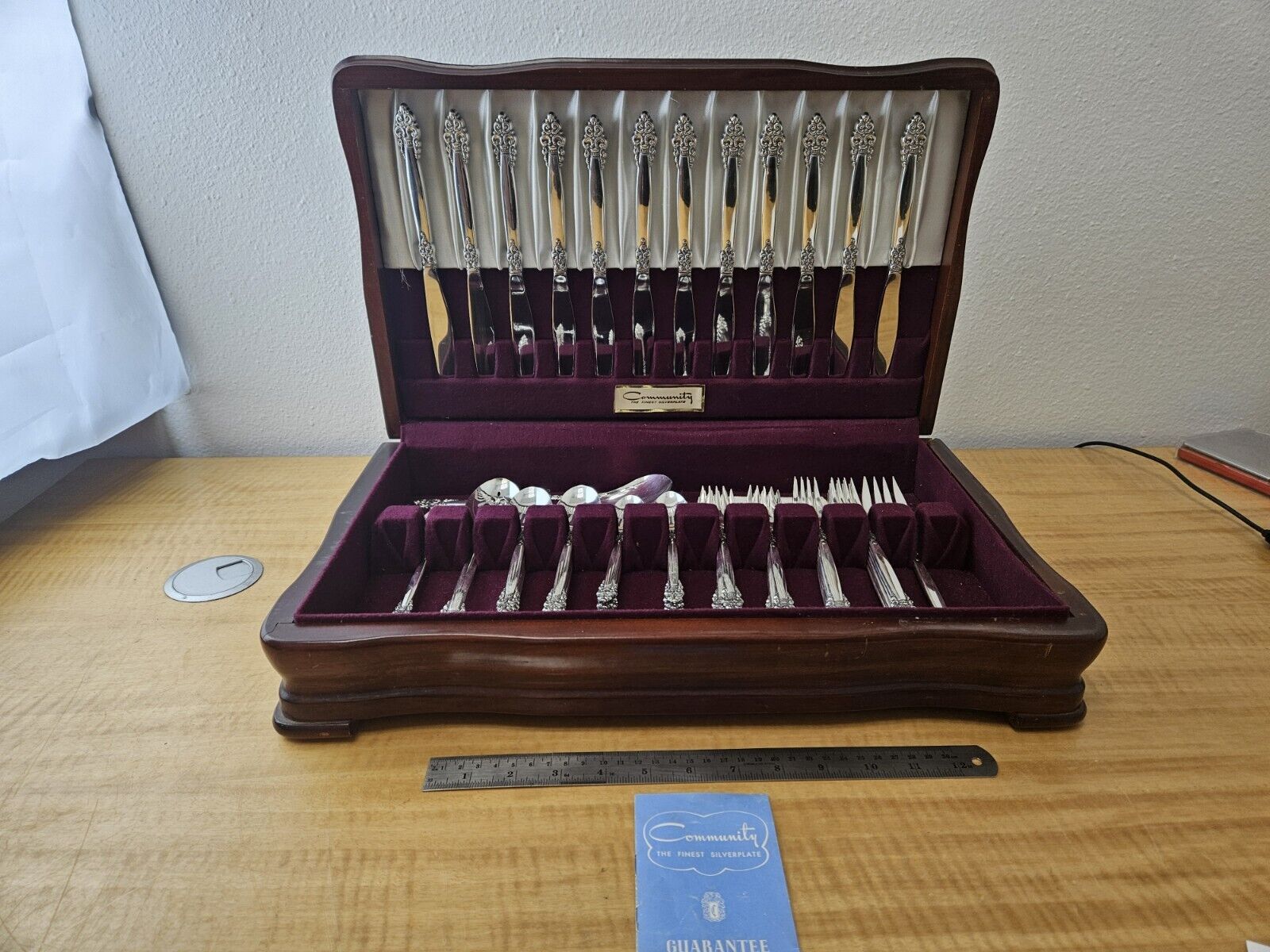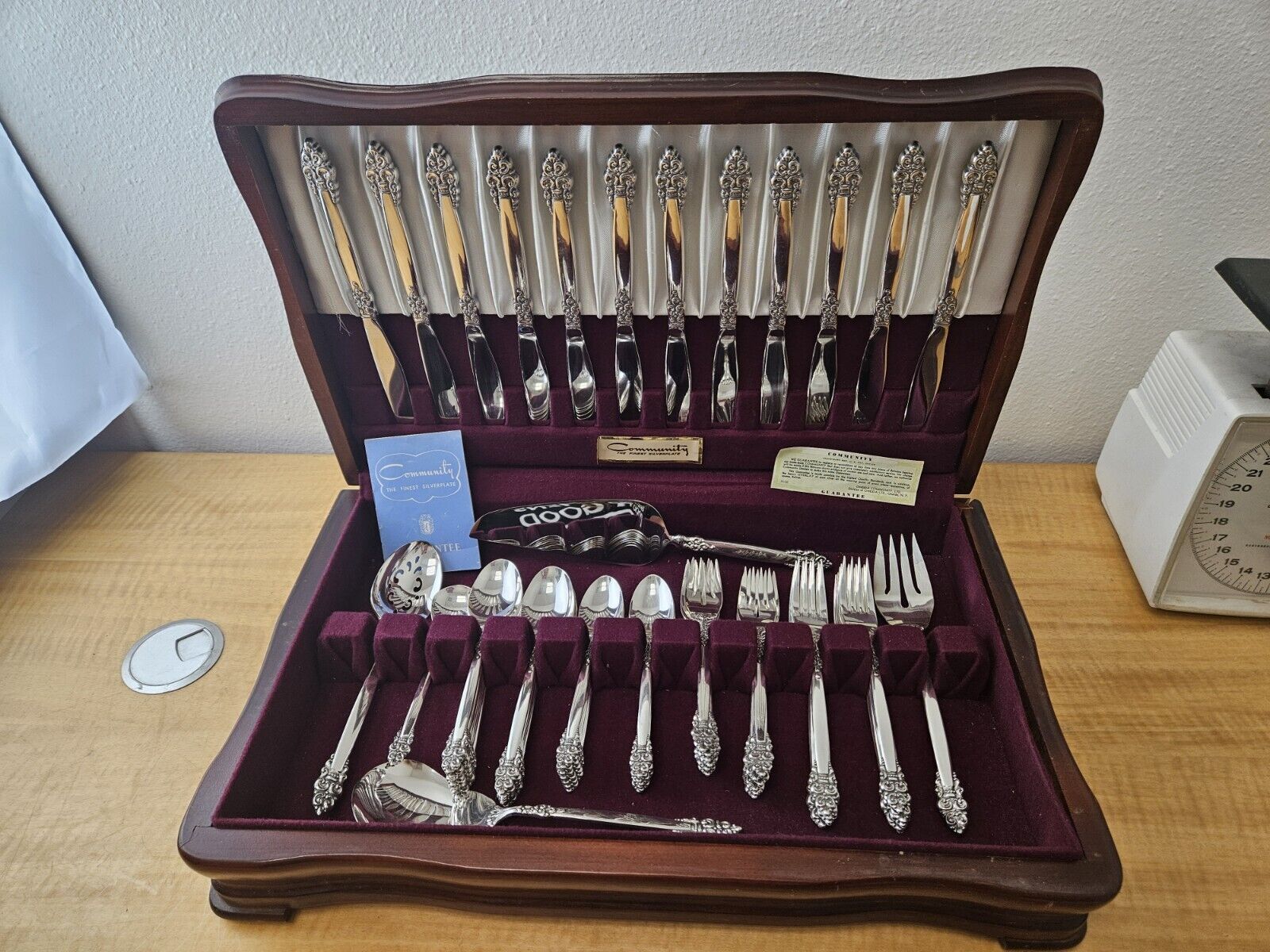Oneida Community Silverplate Flatware 65 Pc in wood chest