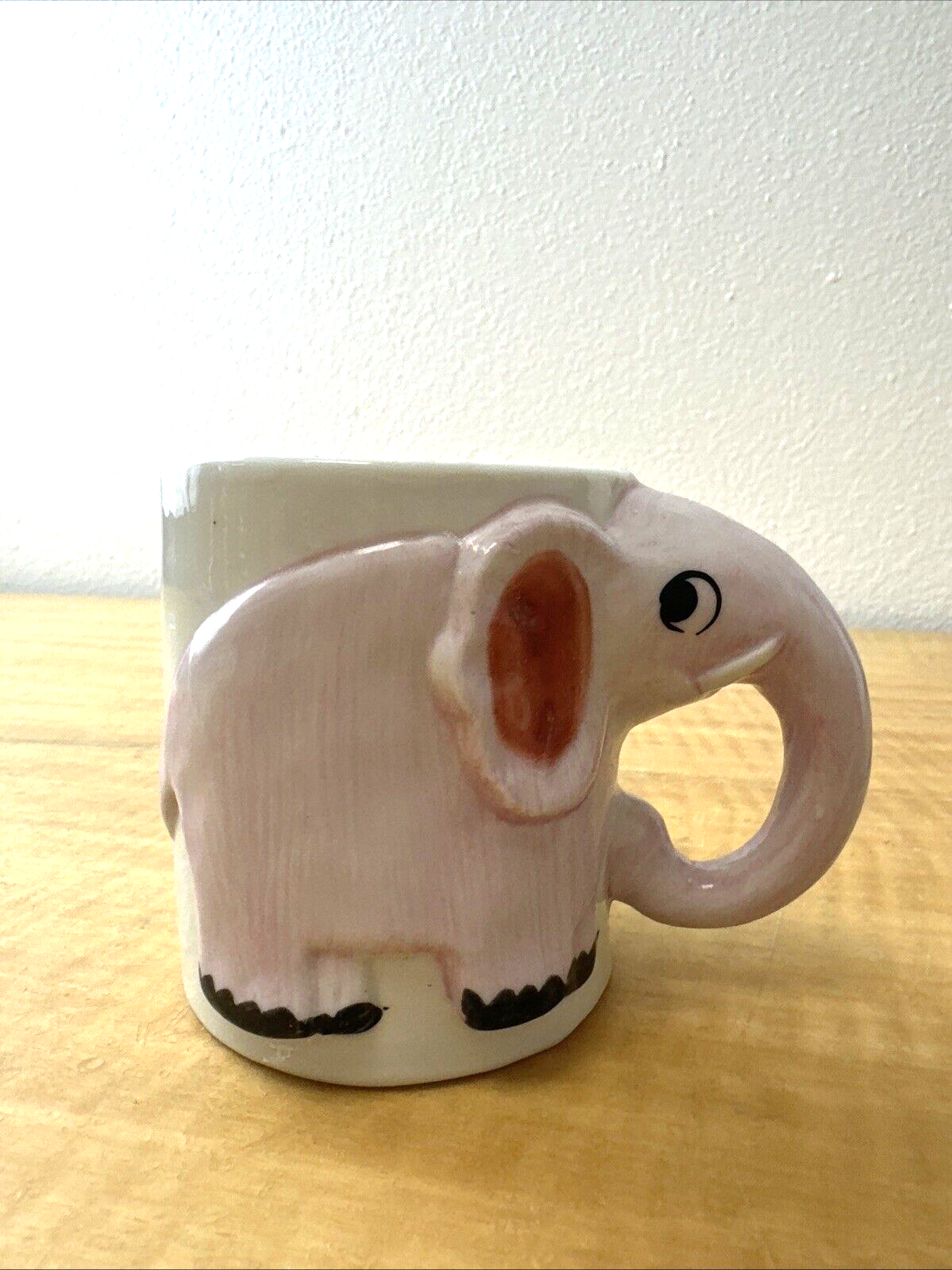 Prestige 3-D Pink Elephant Ceramic Mug/Cup Trunk Handle Kids Size Made in Taiwan
