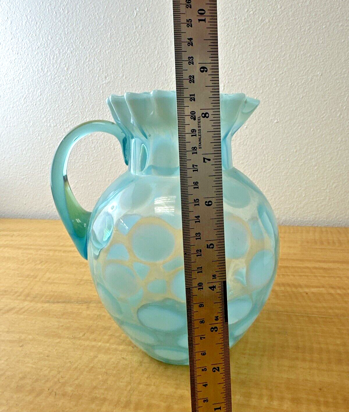 Large Vintage Fenton - Blue Opalescent Glass Coin Spot Water Pitcher