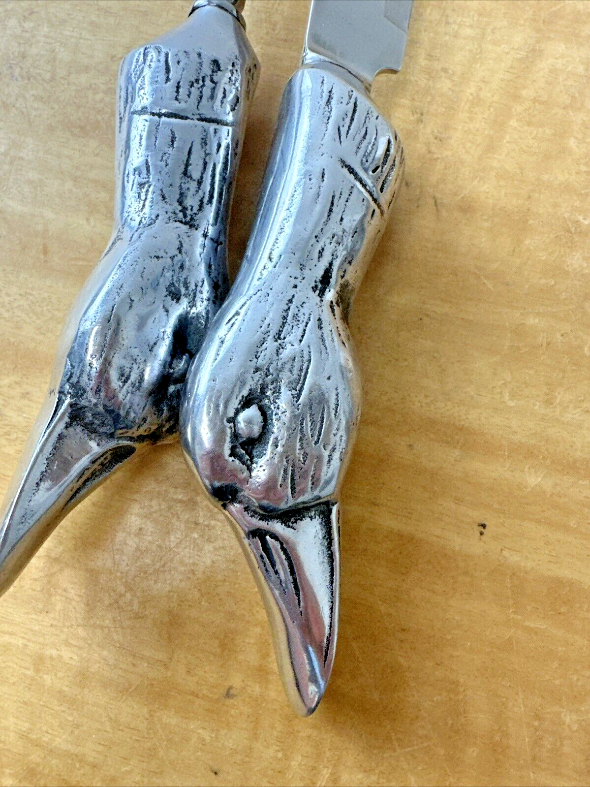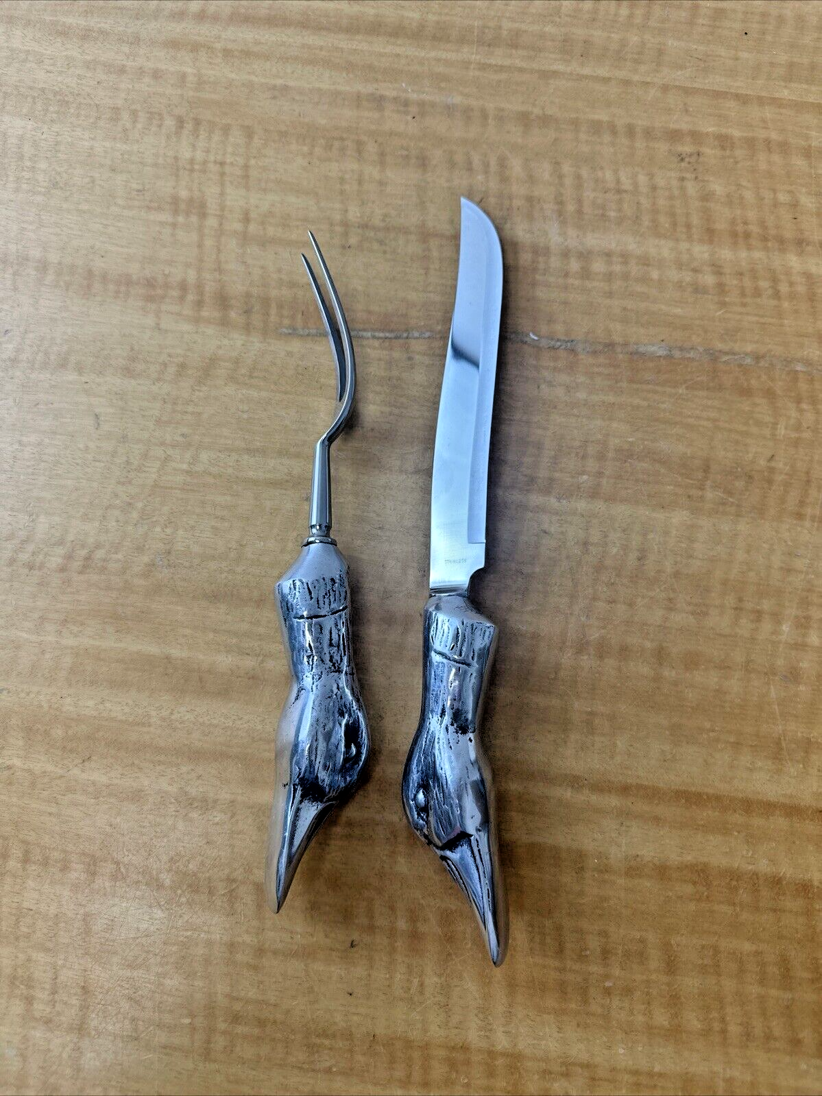 Vintage 2 Piece Carving Set Knife & Fork RWP Wilton Pewter Duck Head Handles